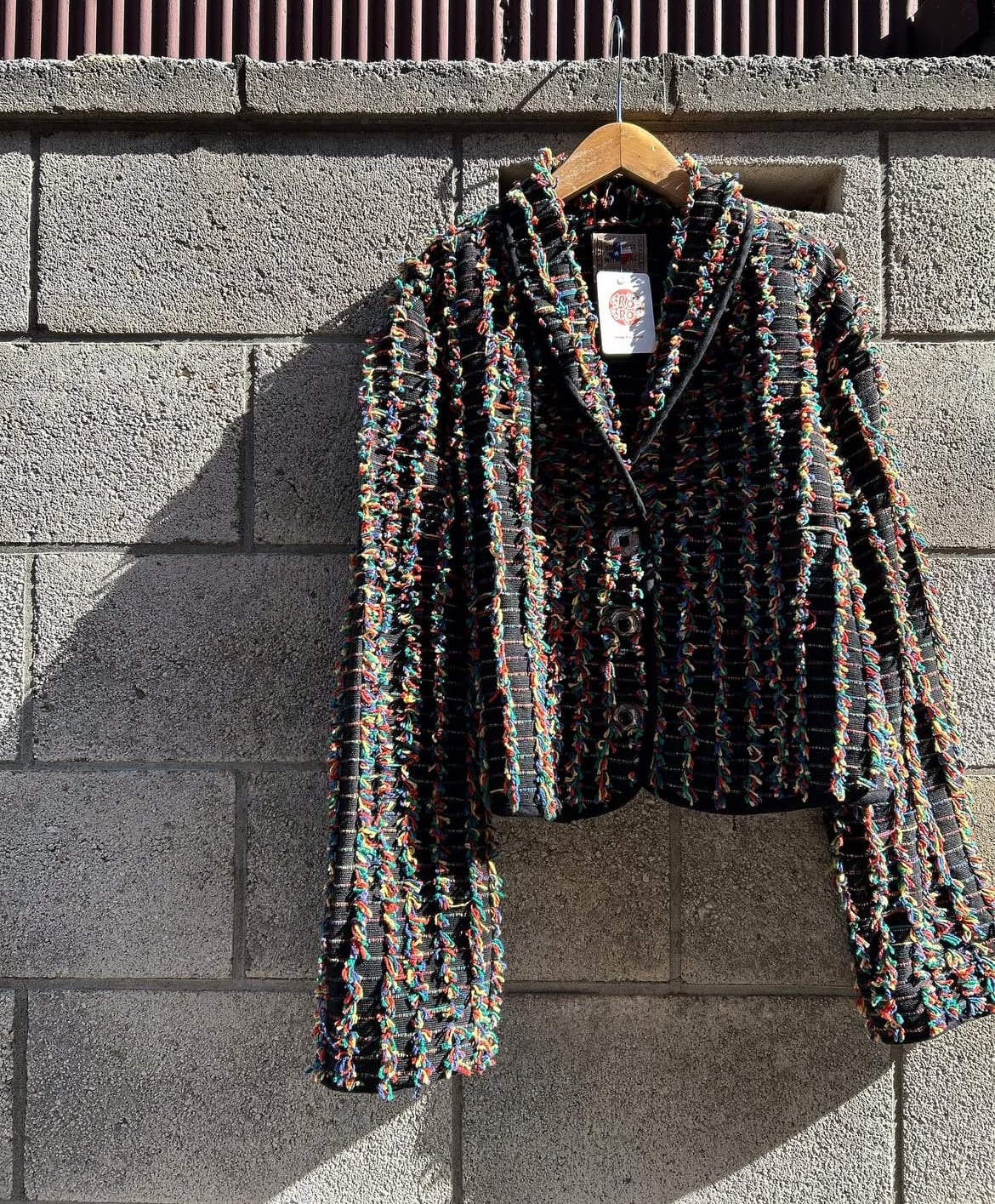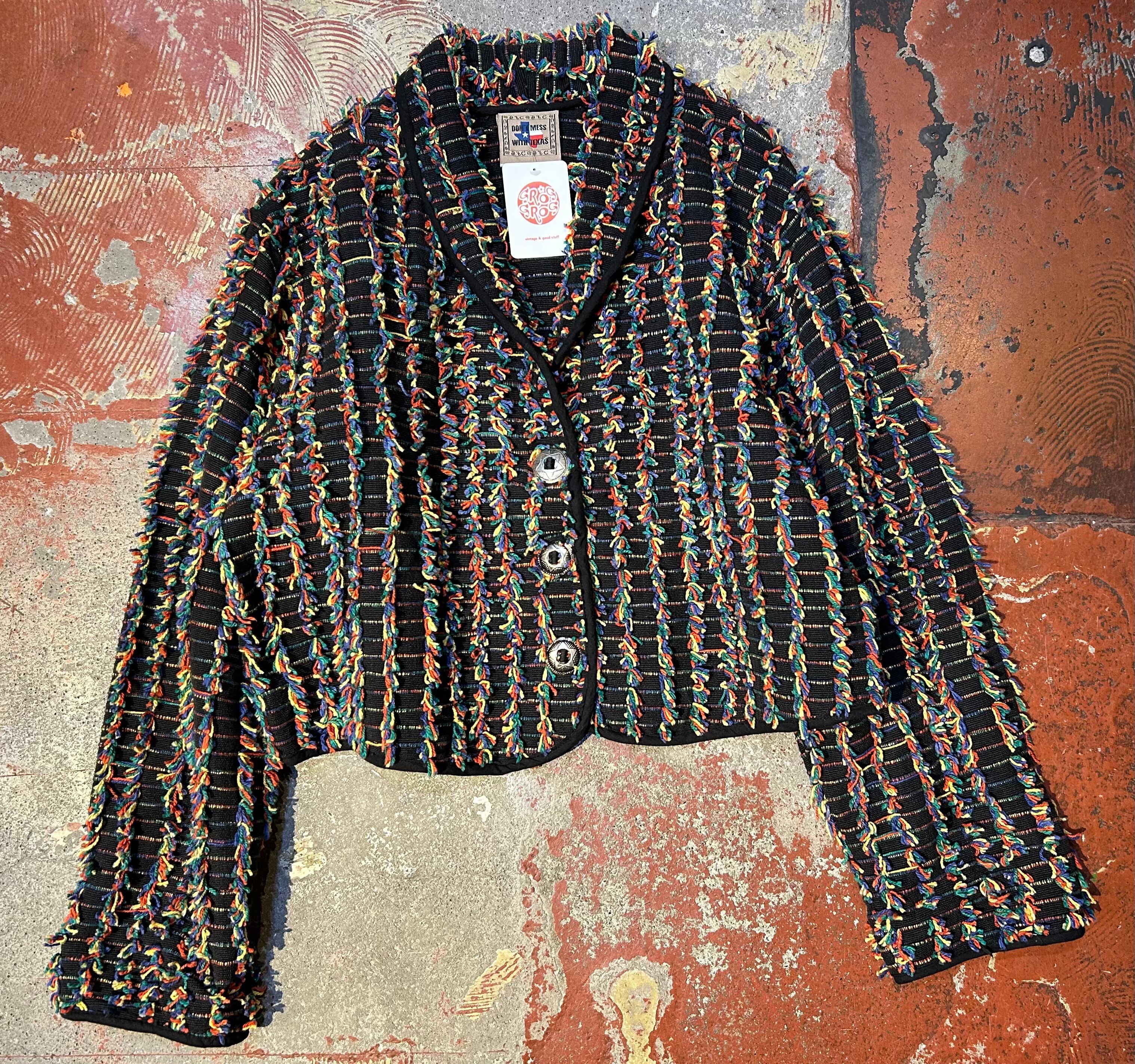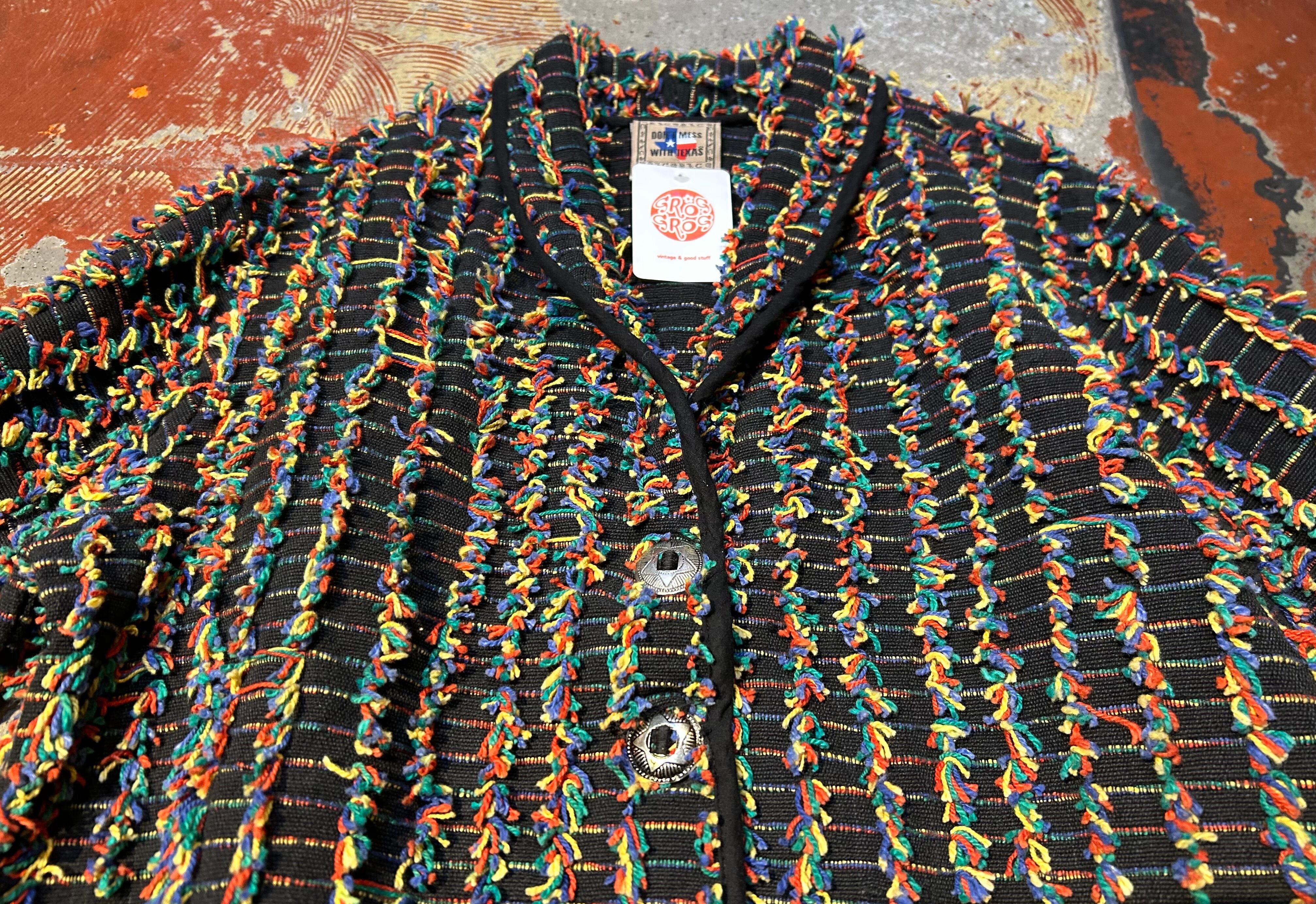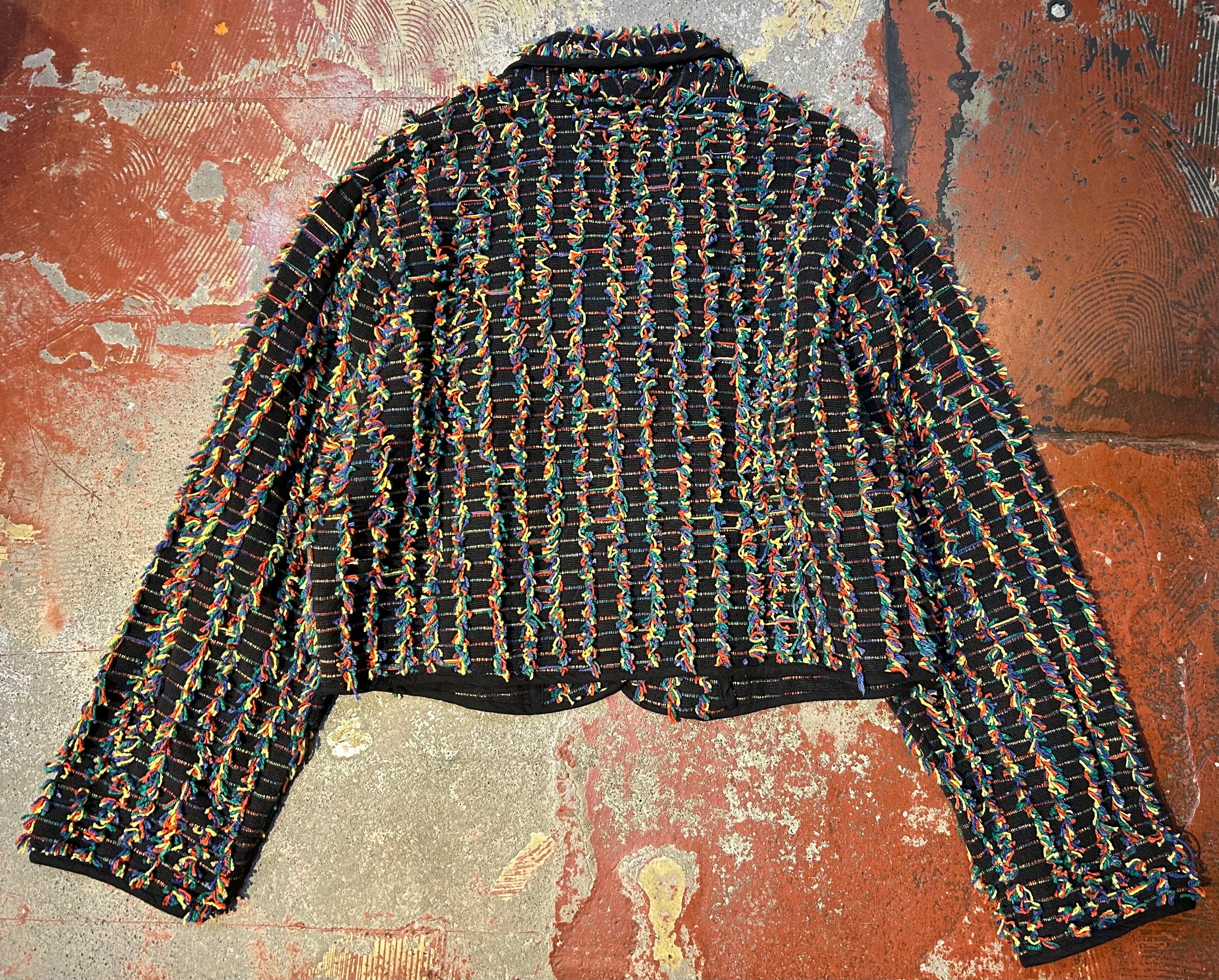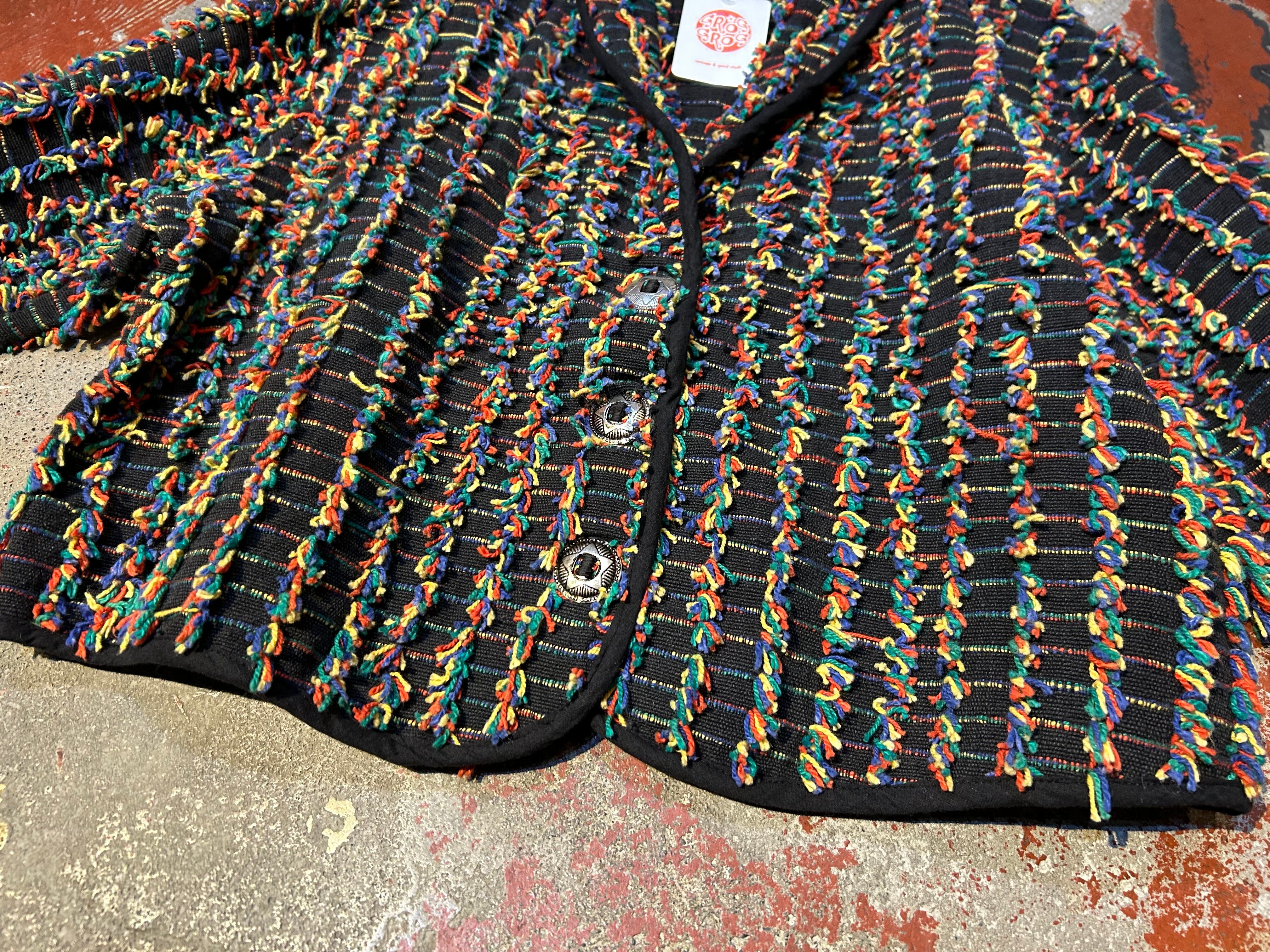 黒ボディにカラフルな糸が可愛いもけもけジャケット。