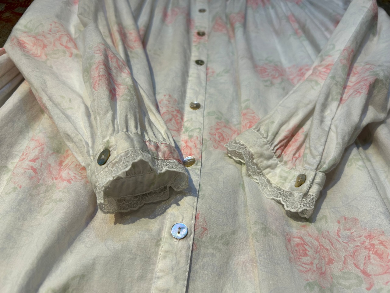 胸元と袖口はお花レースがあしらわれ、透け感も素敵です。