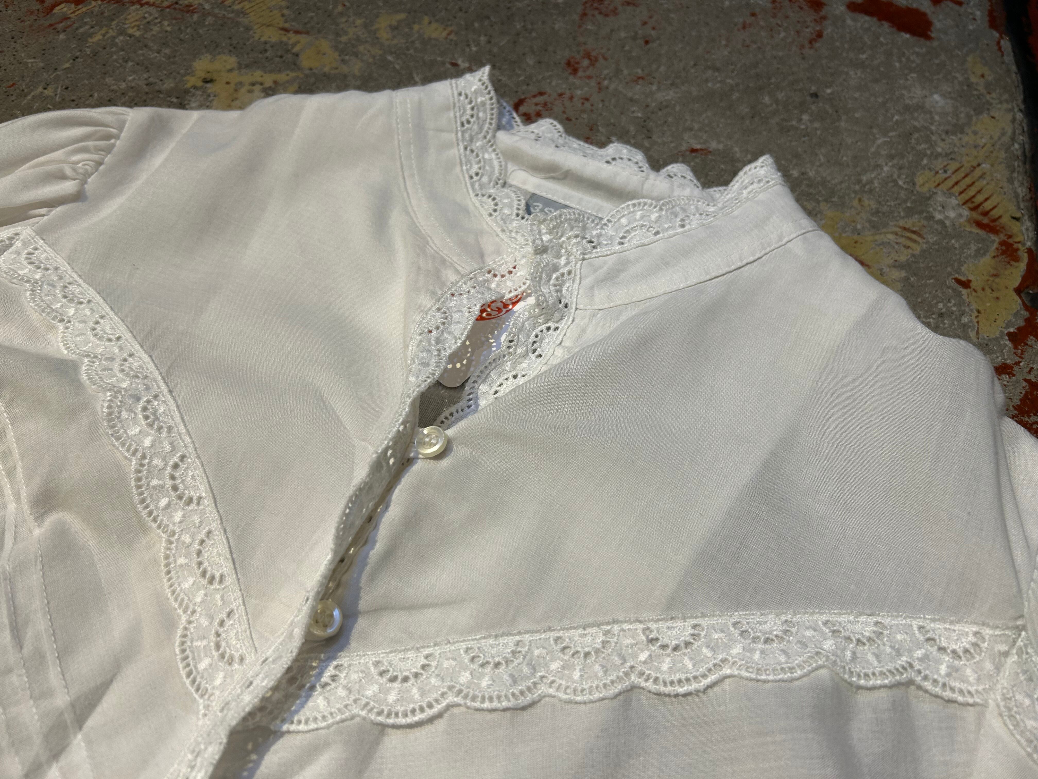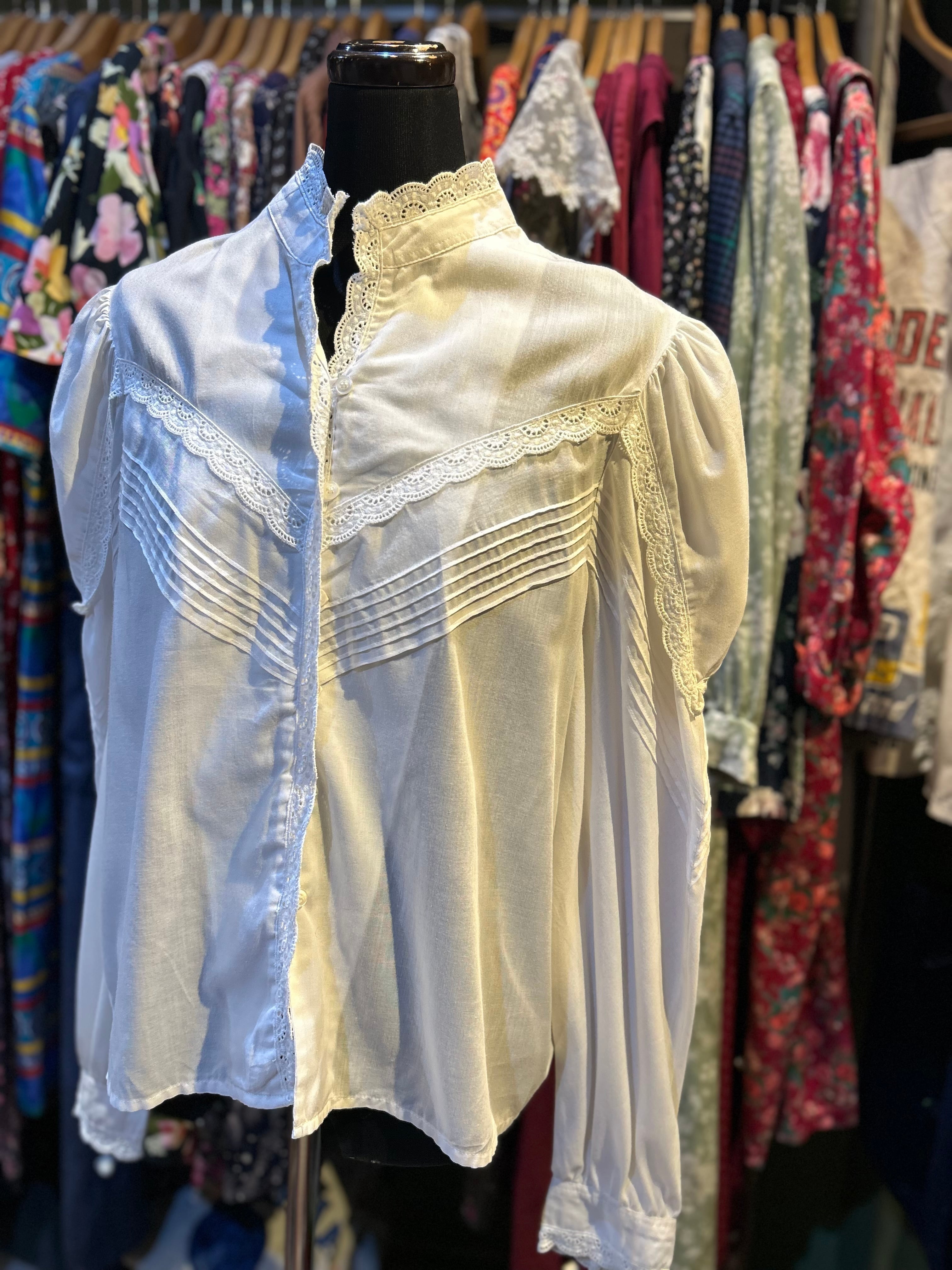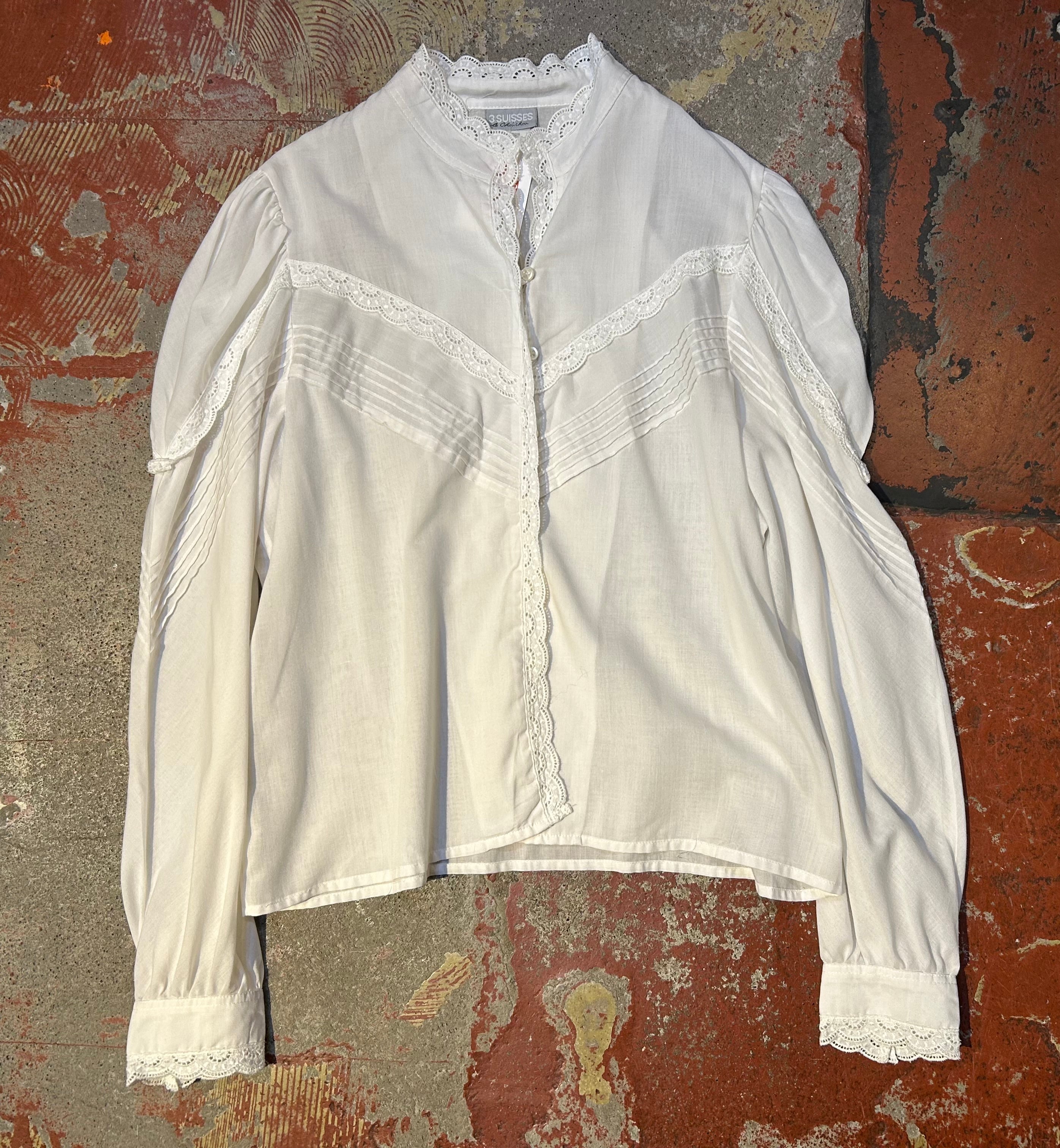 パフスリーブ、フロント首元もスッキリとしたデザインが存分に活かされてとても綺麗なブラウスです。