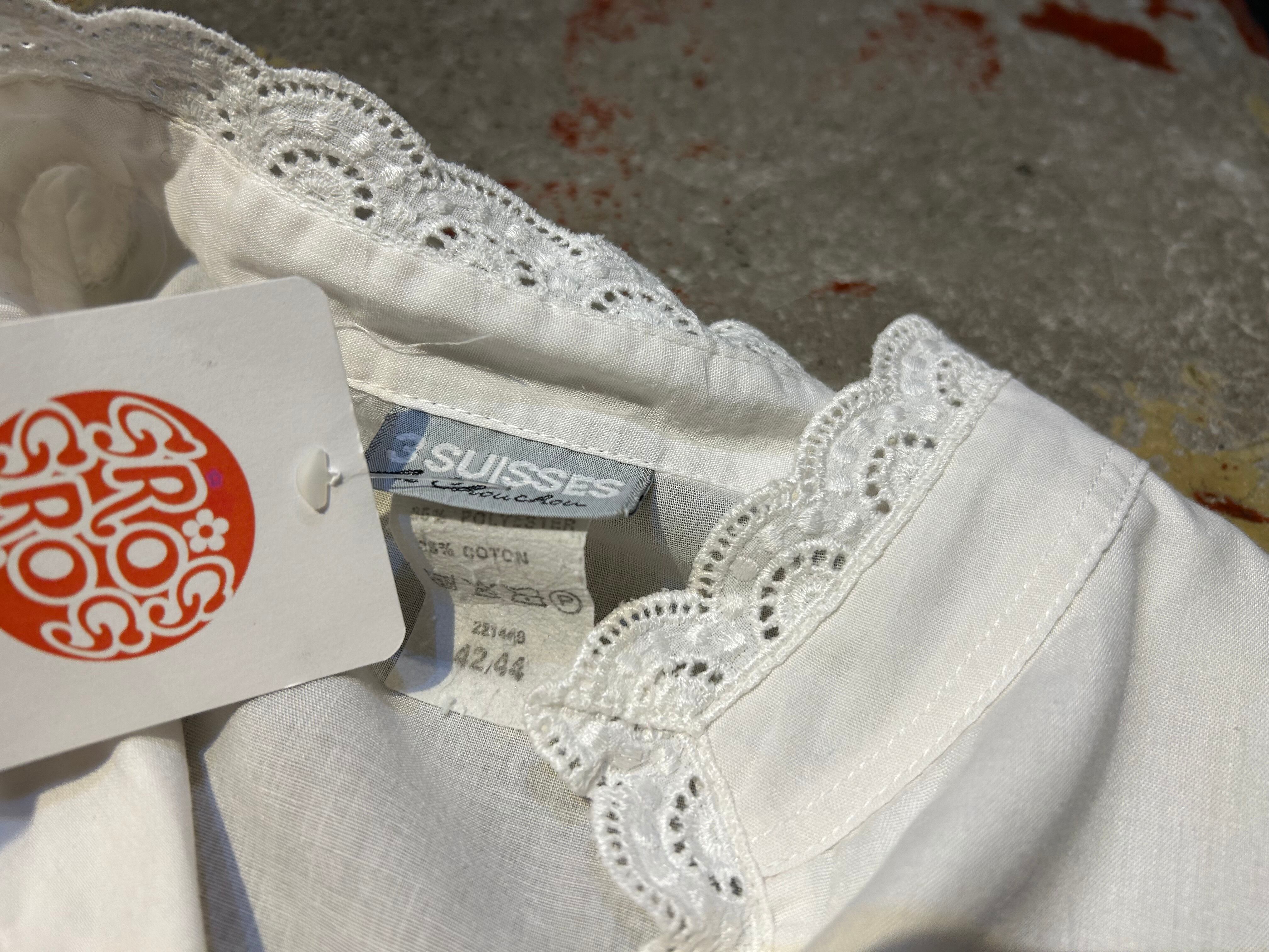 ホワイトボディにタックやレースのデザインが秀逸で素敵な1着。