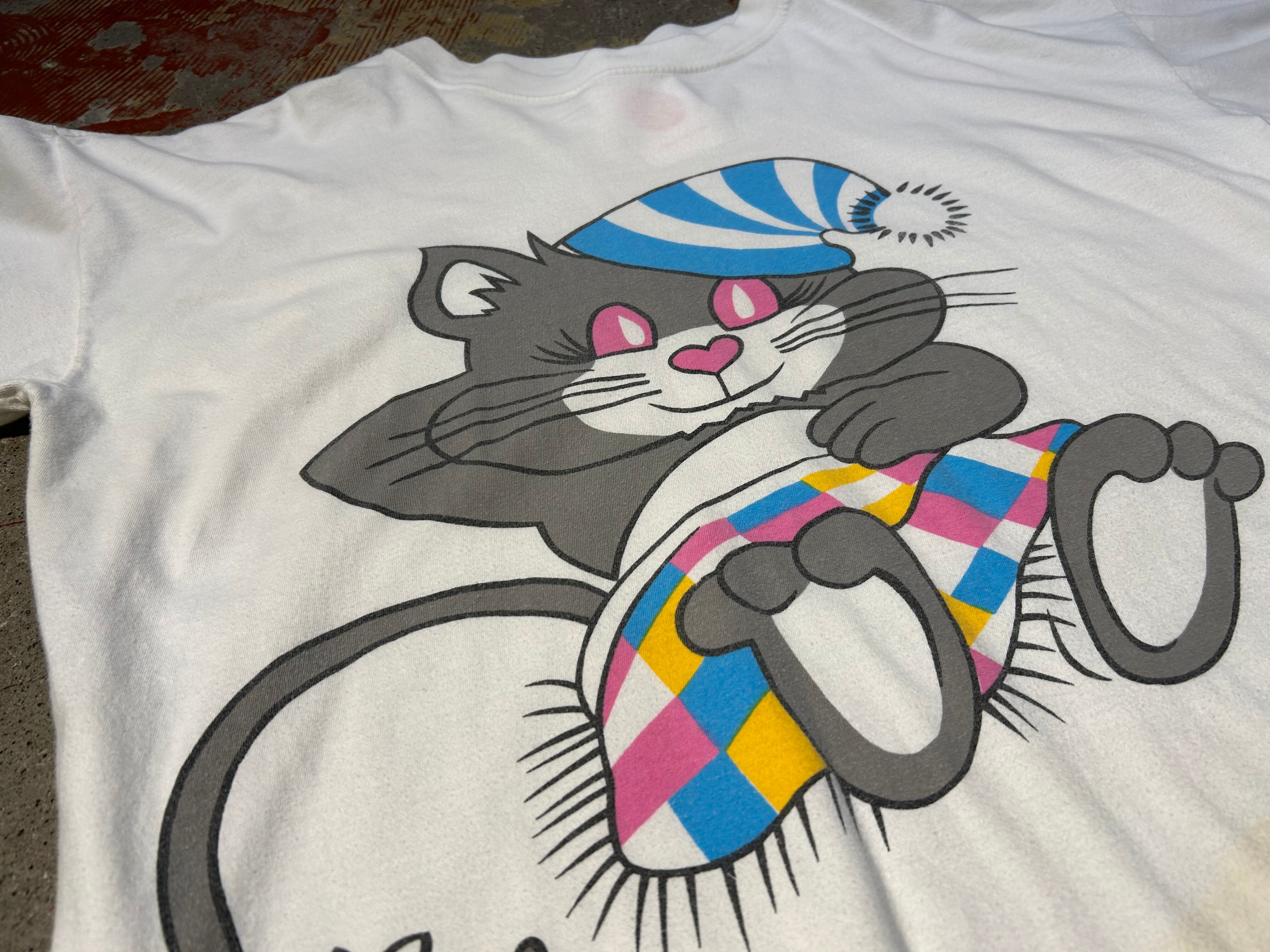 フロントには目を瞑って眠っている猫が可愛いデザインです。