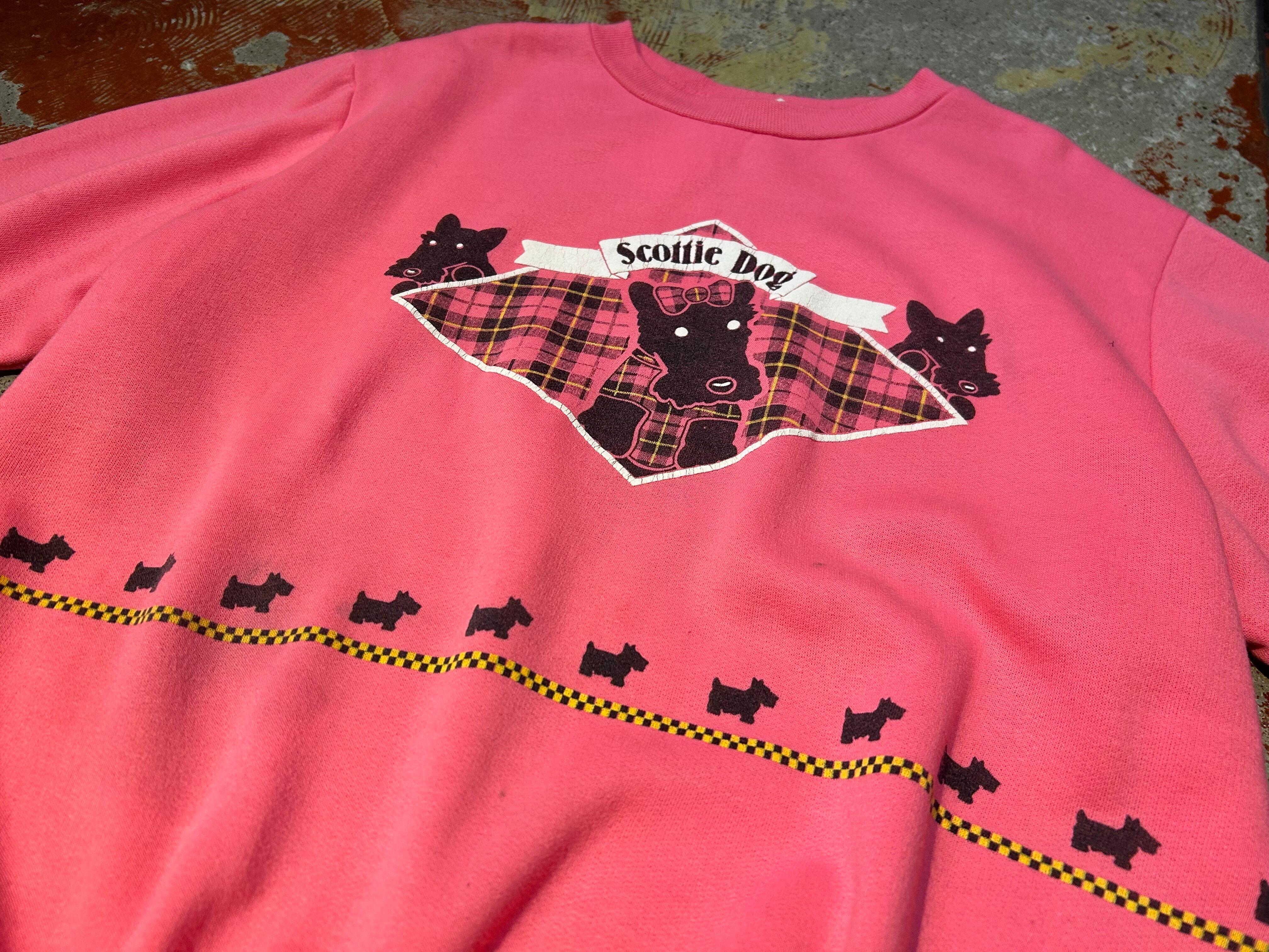 濃いめのピンクボディに、テリアのプリントが可愛いらしい1着。