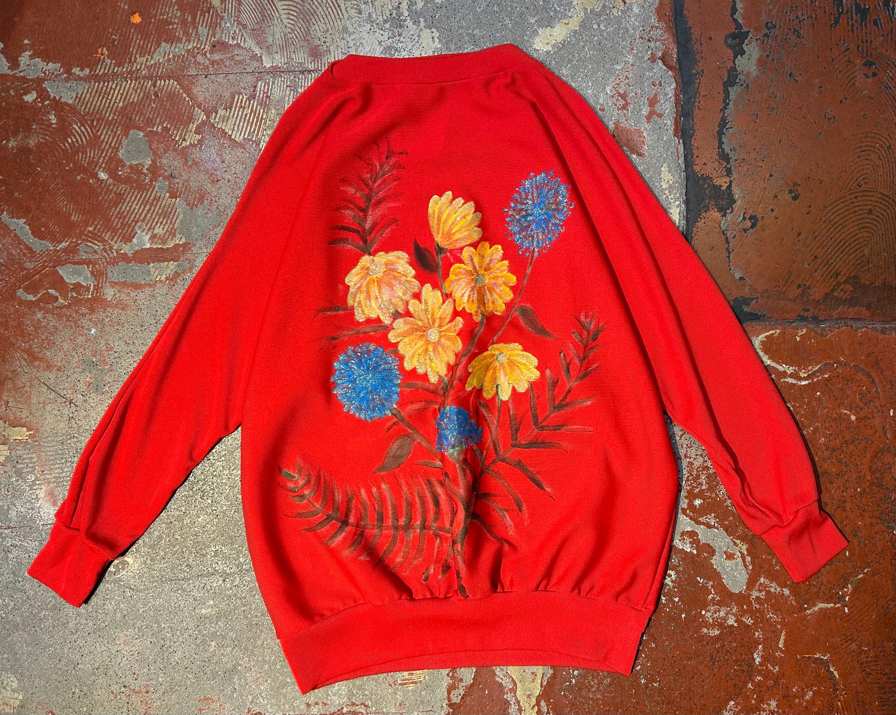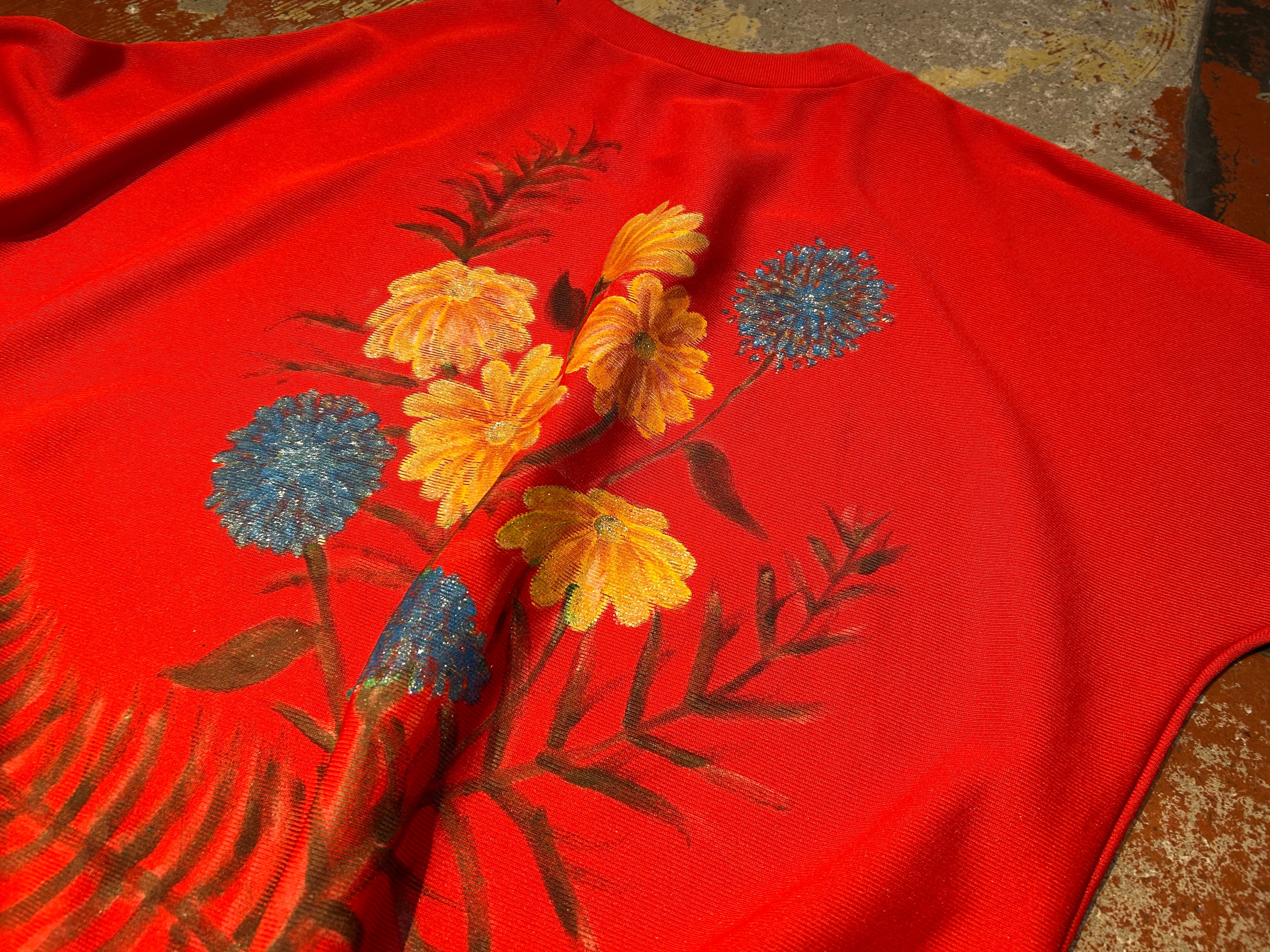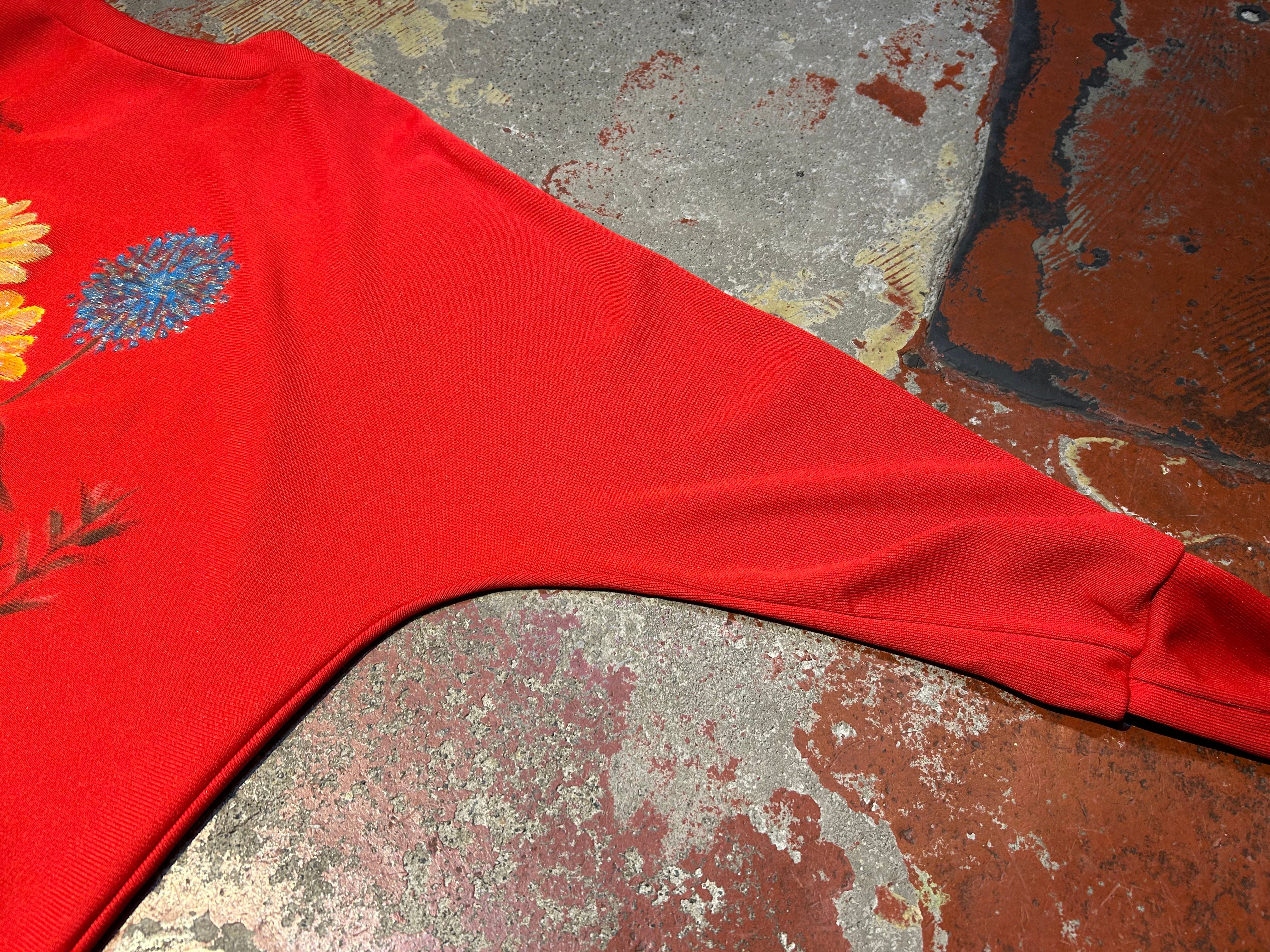 スウェットの形ですが、ナイロンやポリエステルのようなジャージっぽい素材感で、フロントの大胆なペイントが目を奪います。
