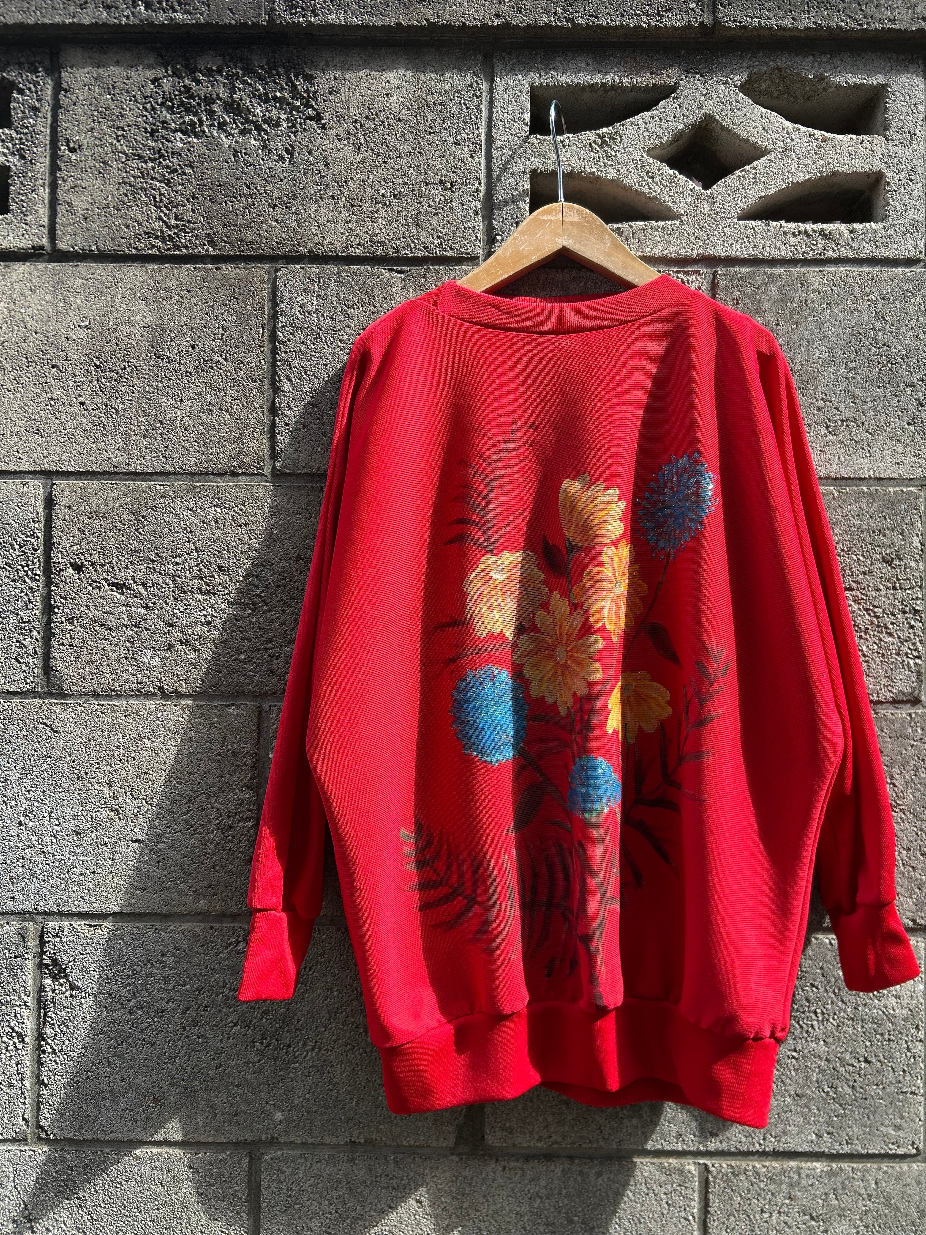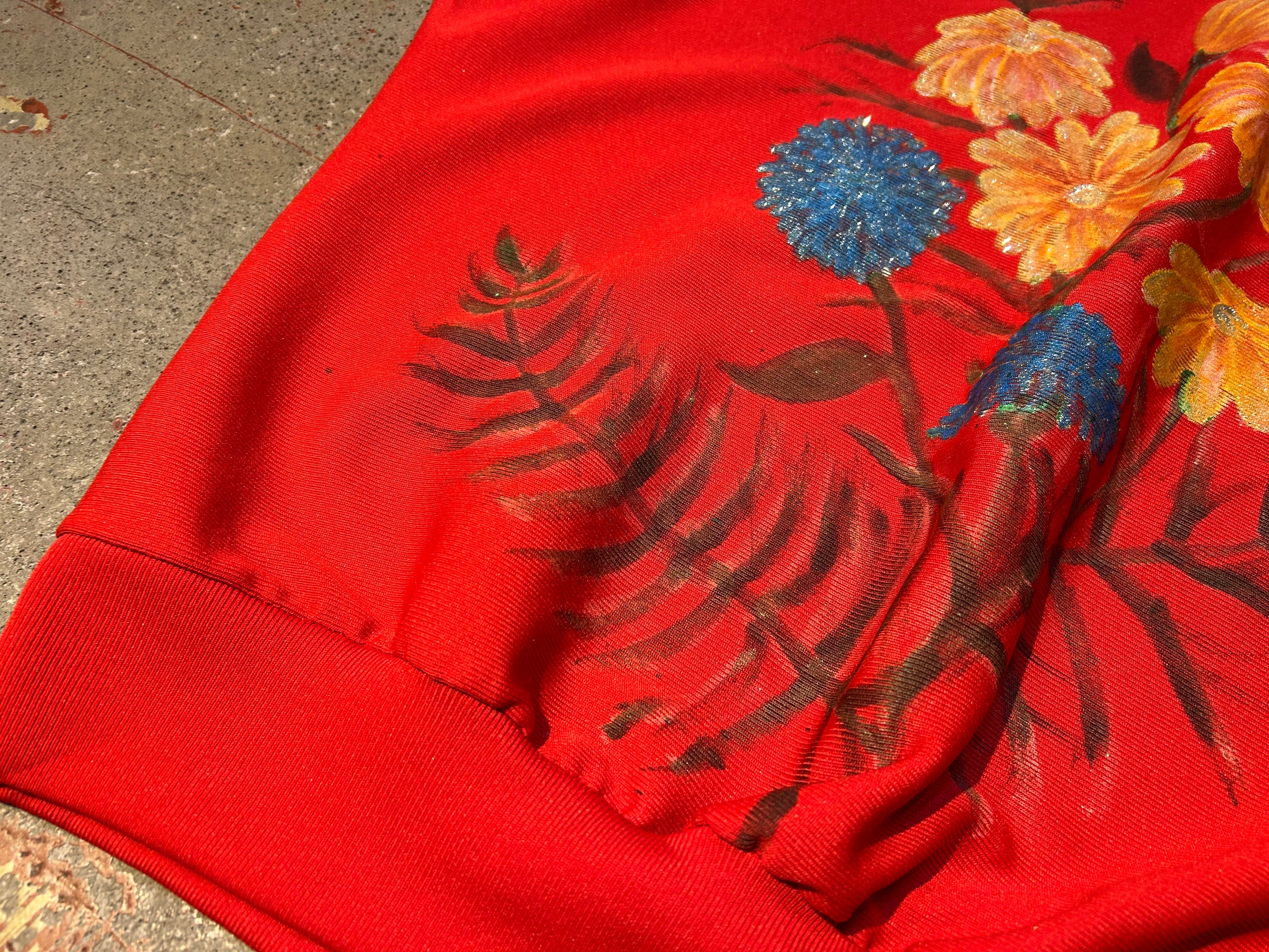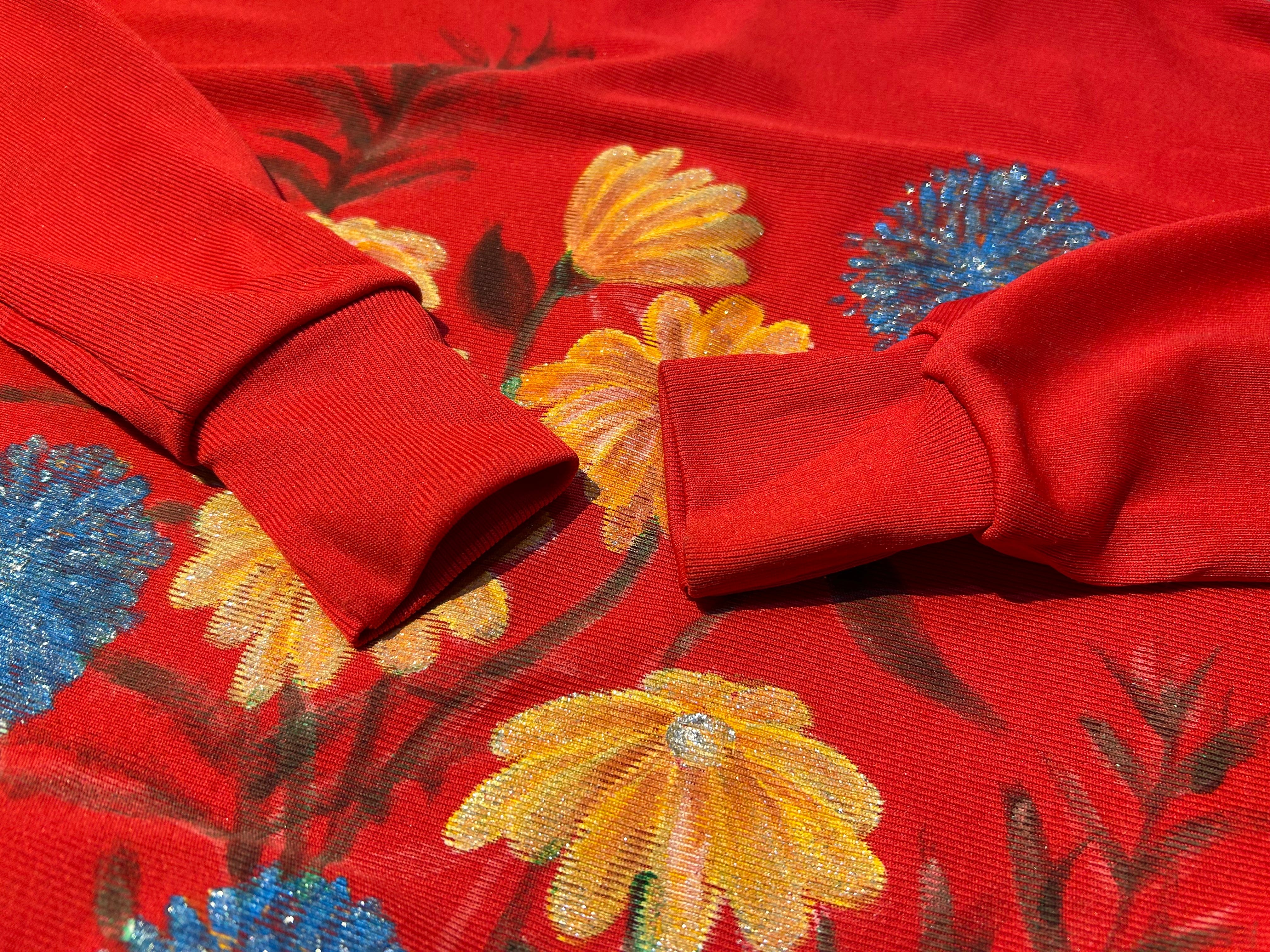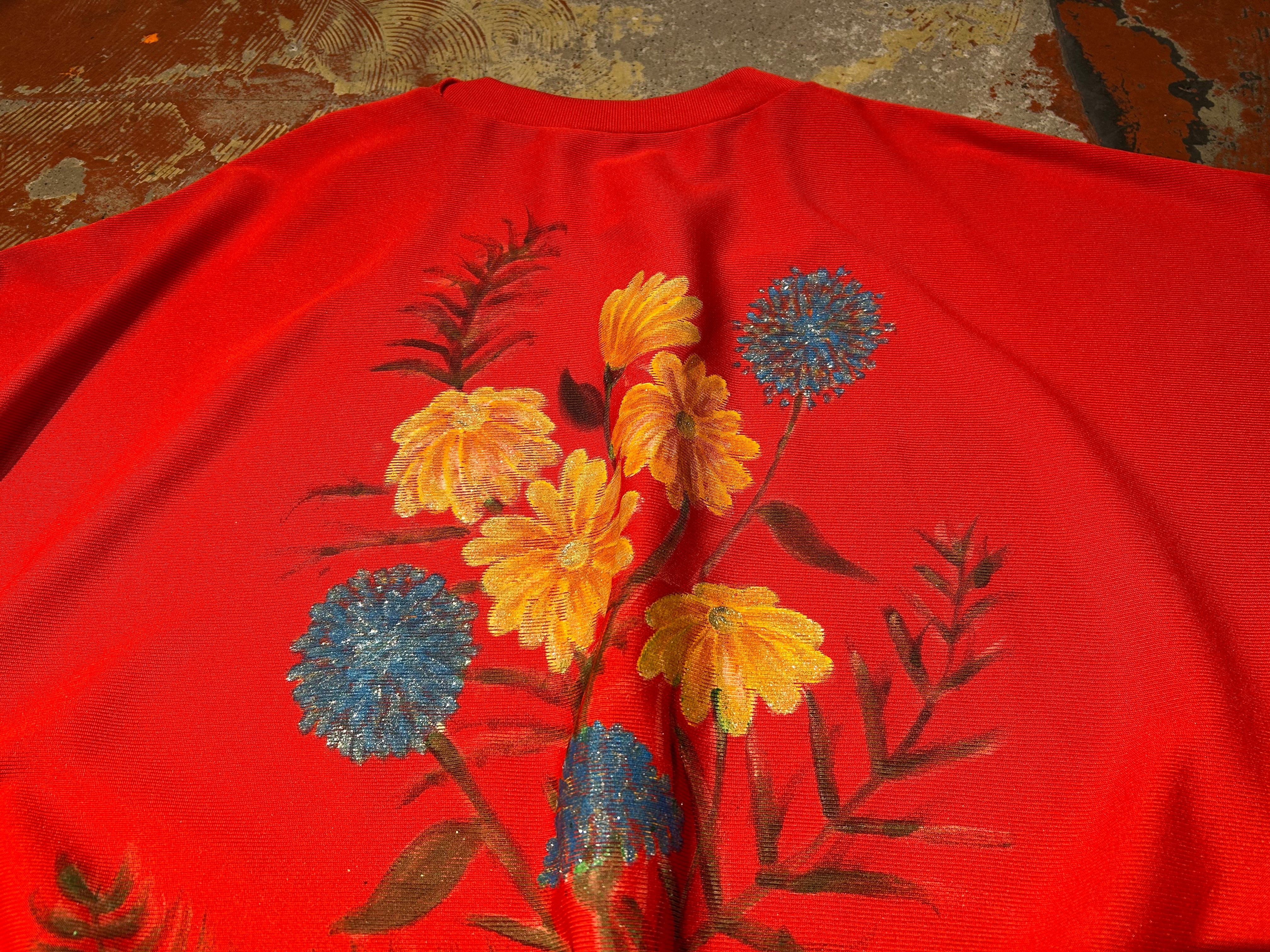 スウェットの形ですが、ナイロンやポリエステルのようなジャージっぽい素材感で、フロントの大胆なペイントが目を奪います。