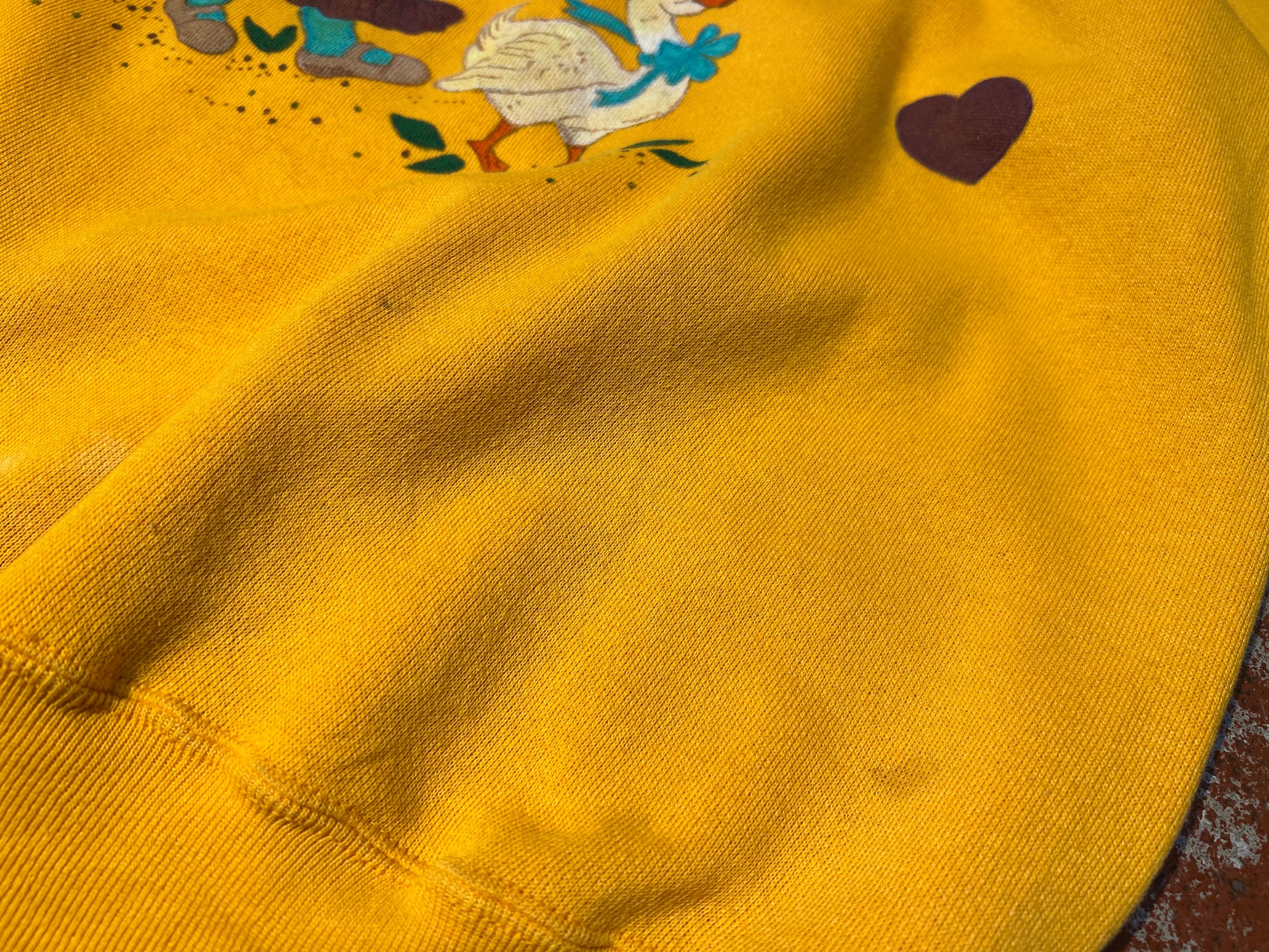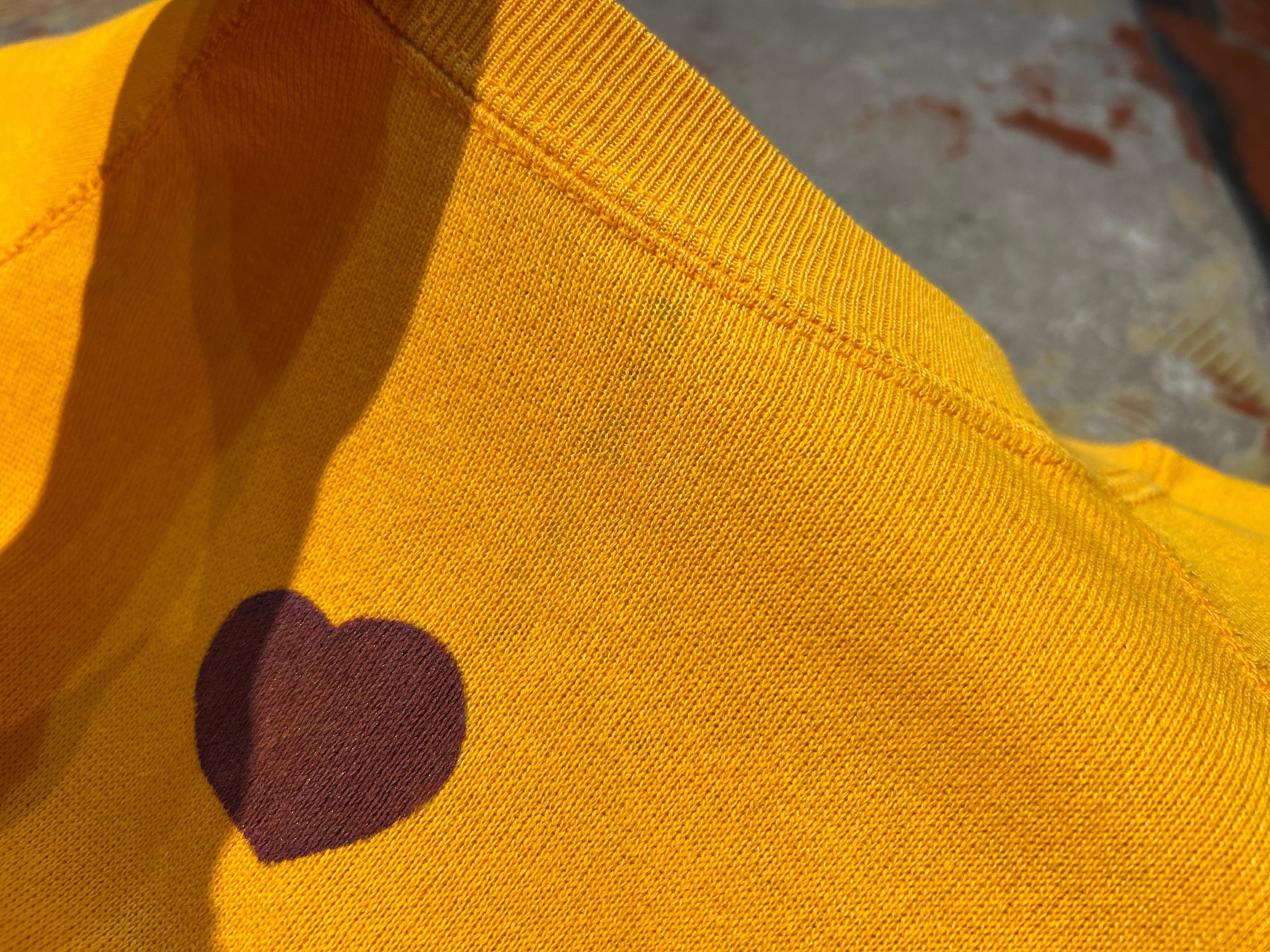 コンディション:フロントと袖薄らシミ、フロント首付近生地が薄くなっておりますがどれも大きく目立つことなくお楽しみ頂けます。その他特筆するダメージ等無く、ビンテージにご理解頂いている方でしたら、気にせず着用頂ける程度です。
