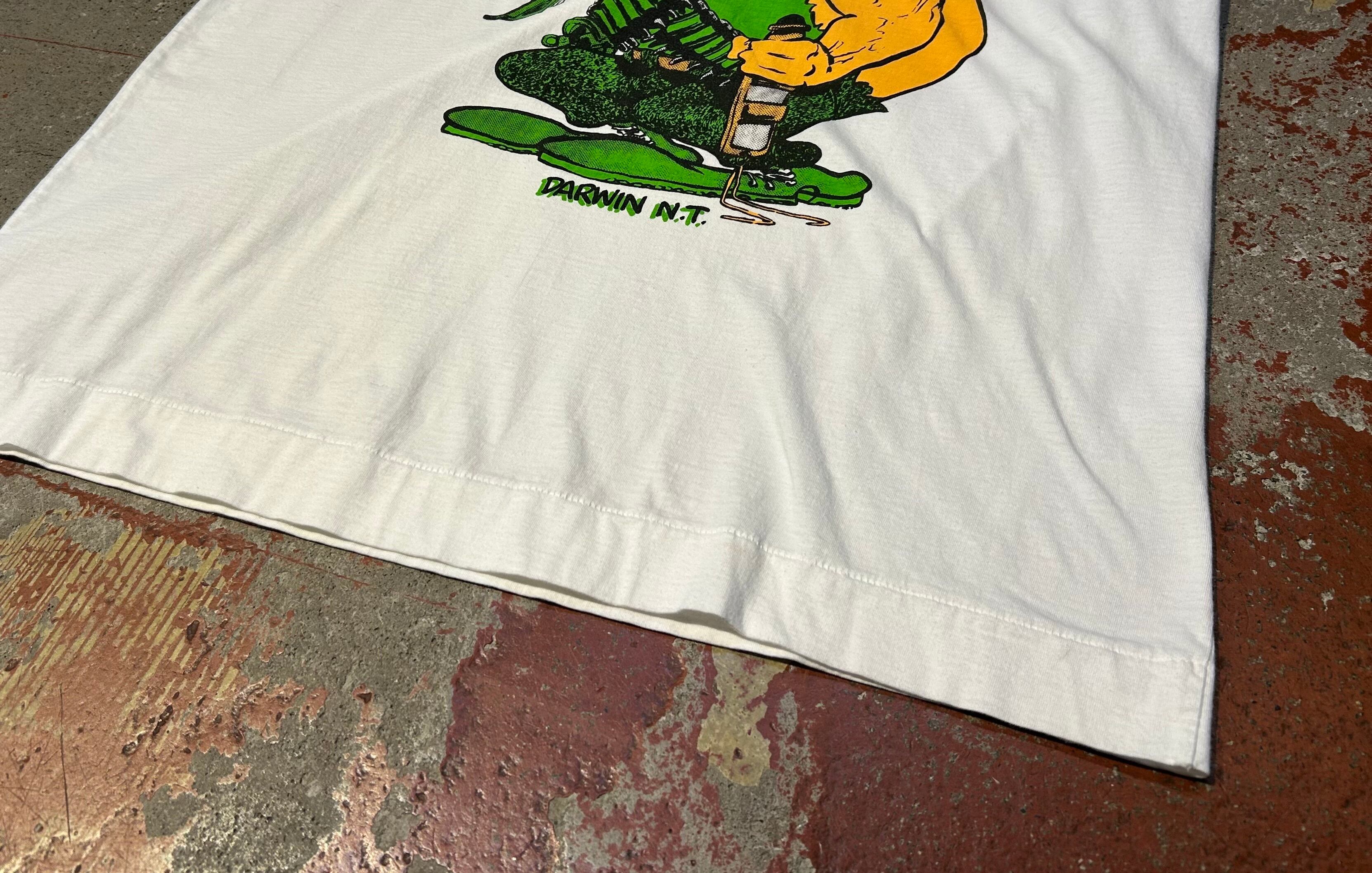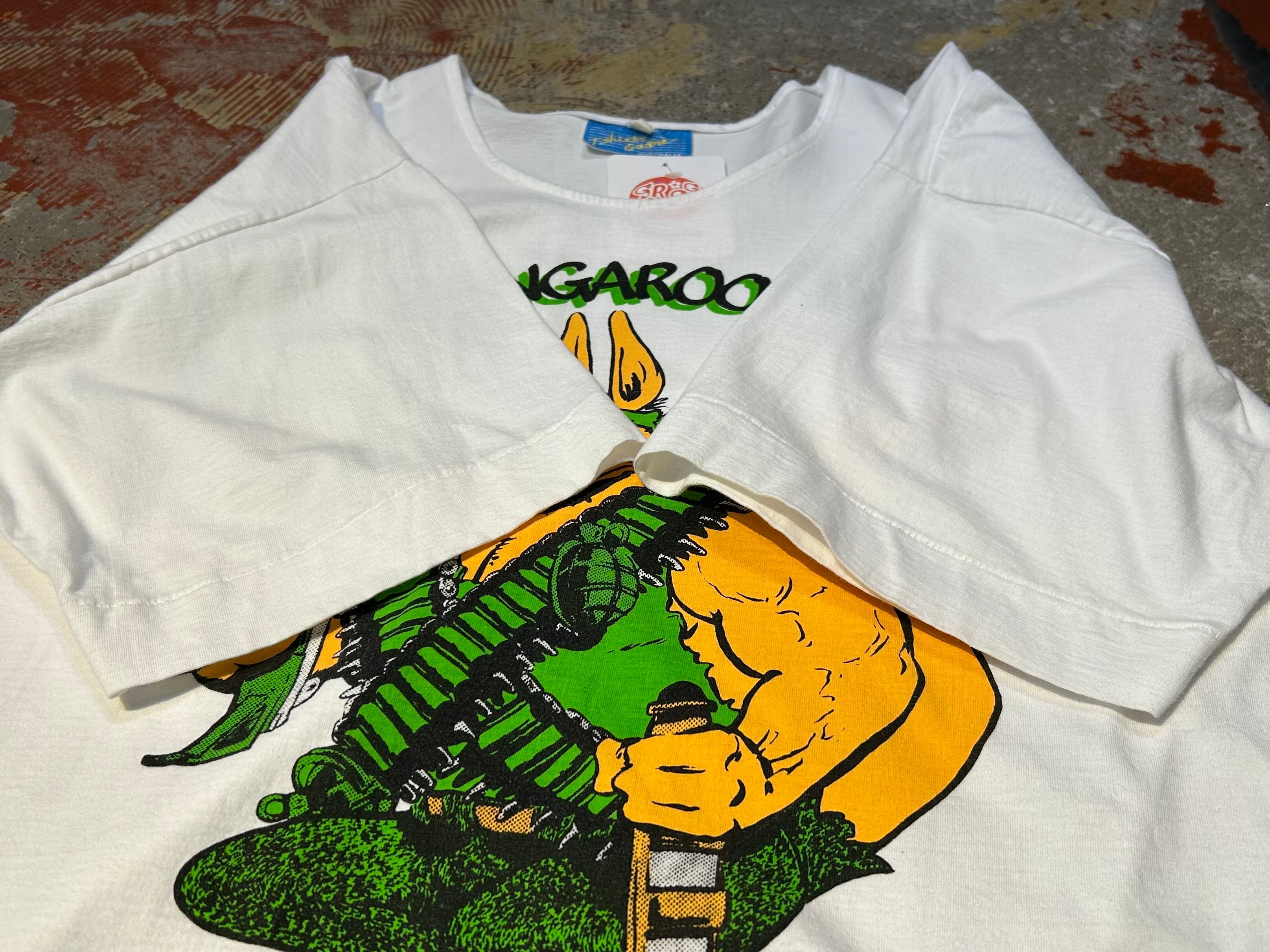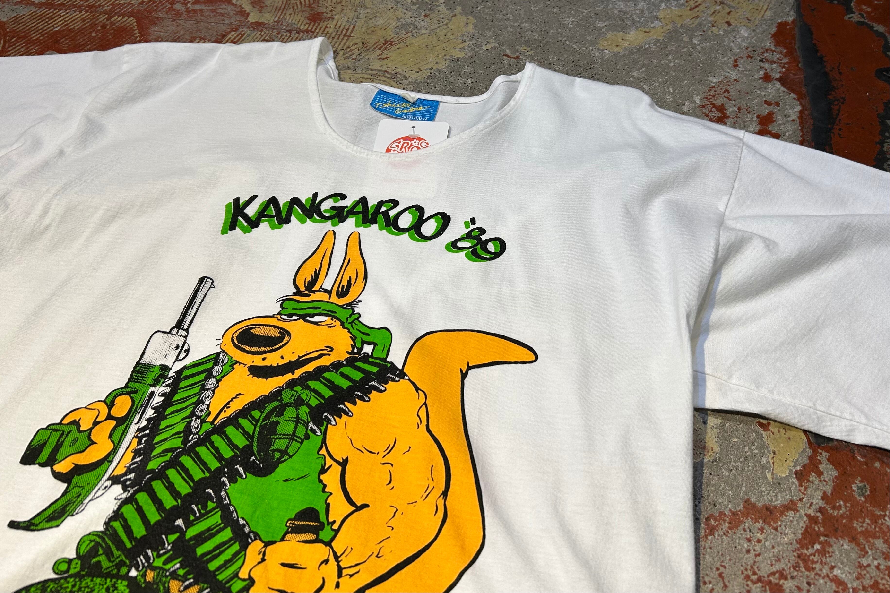 ホワイトボディにたくましい戦闘体制のカンガルーが描かれたアイテム。