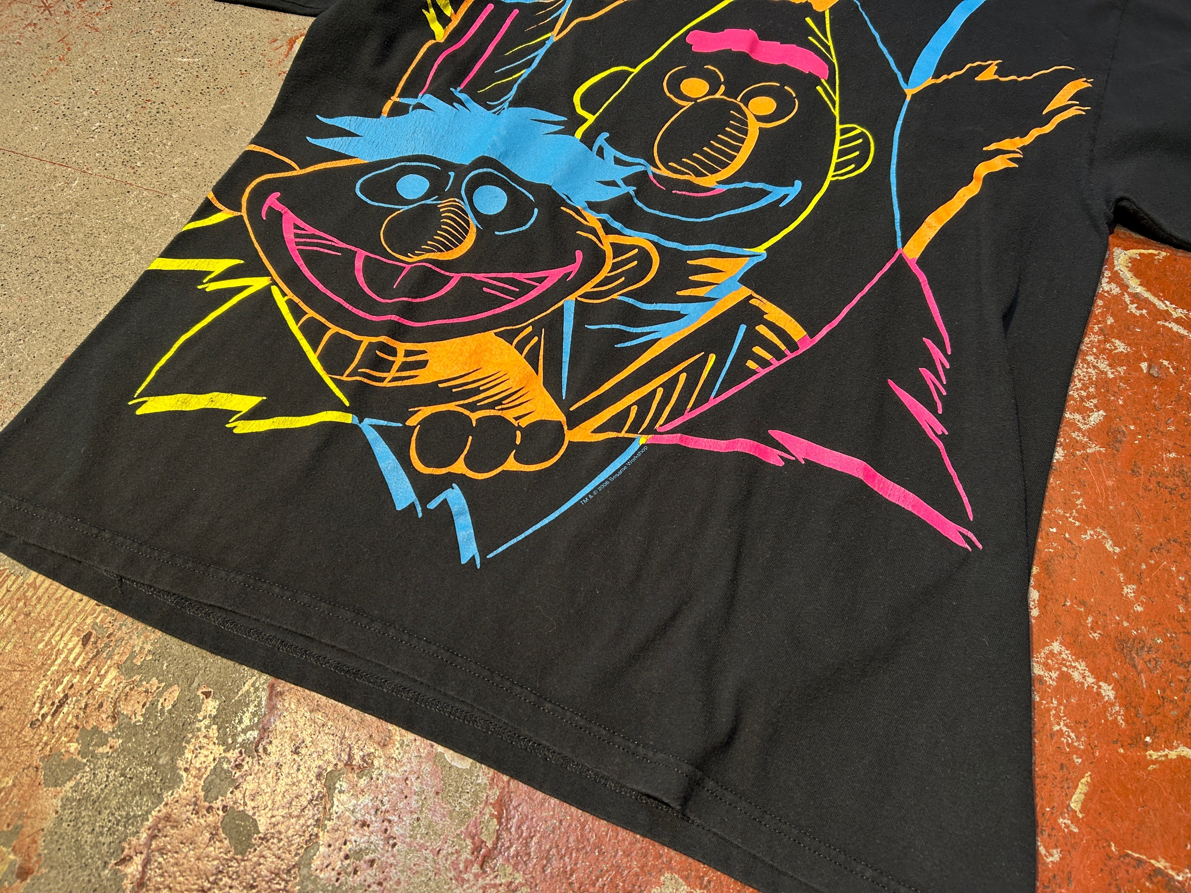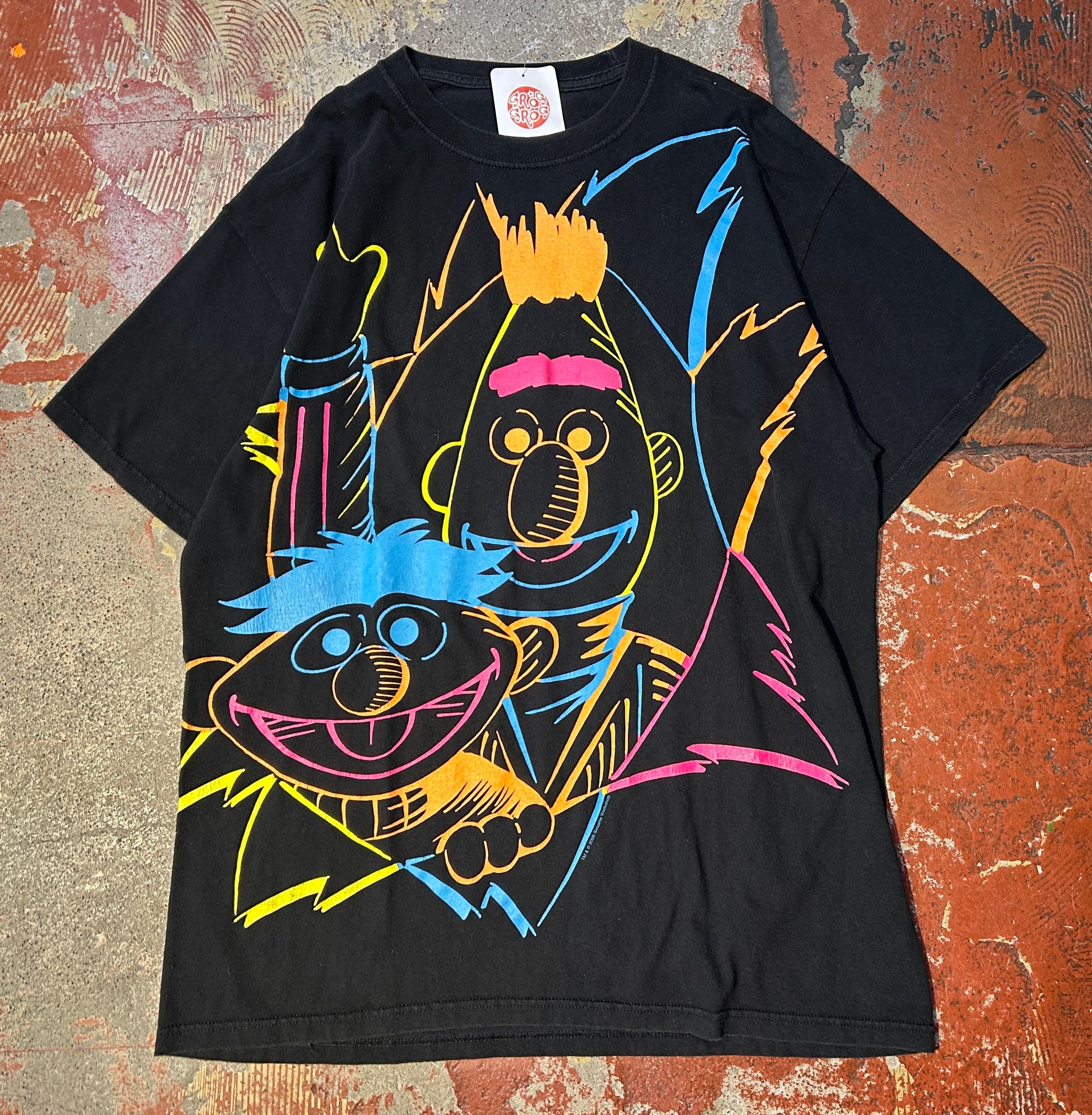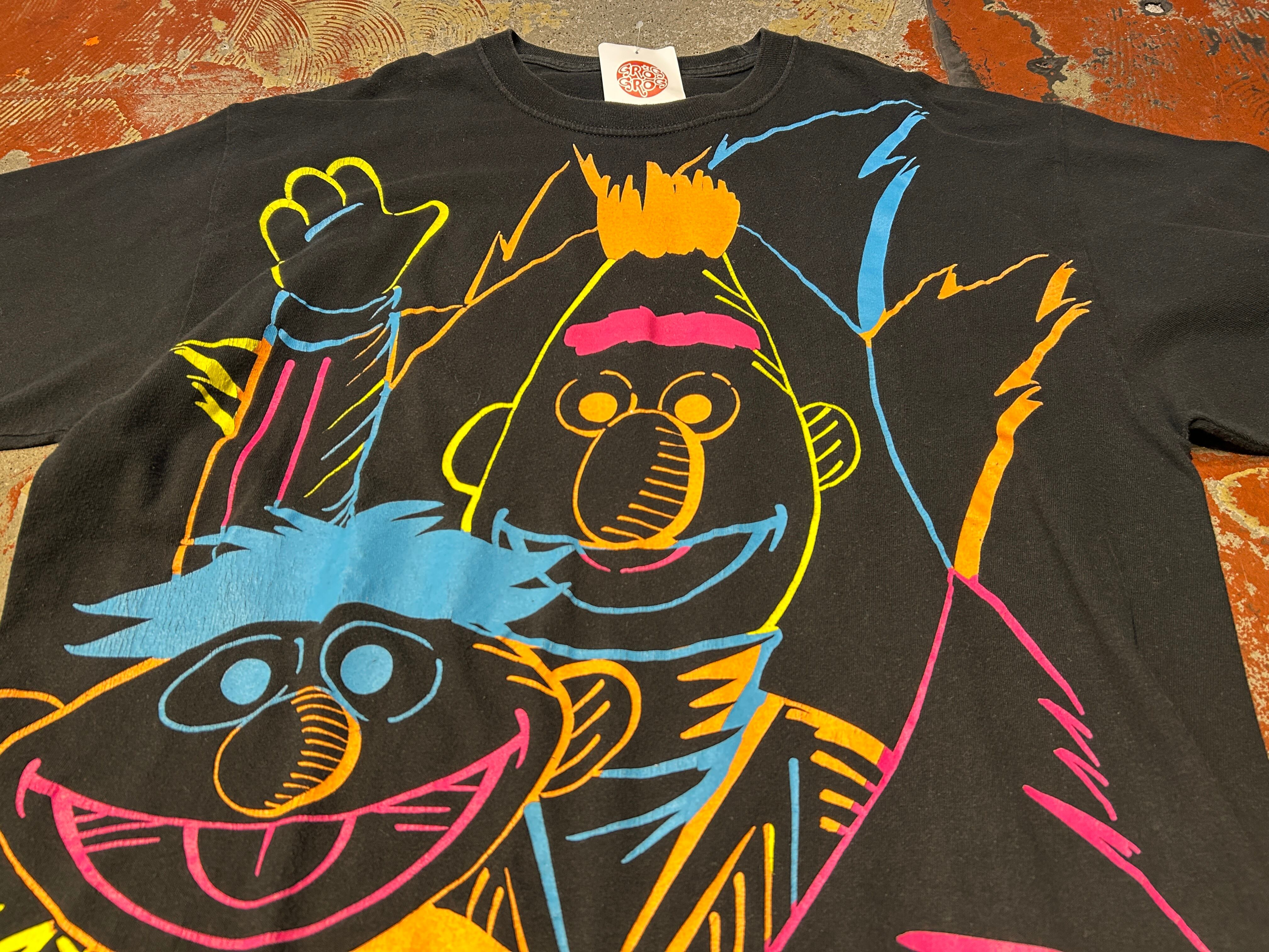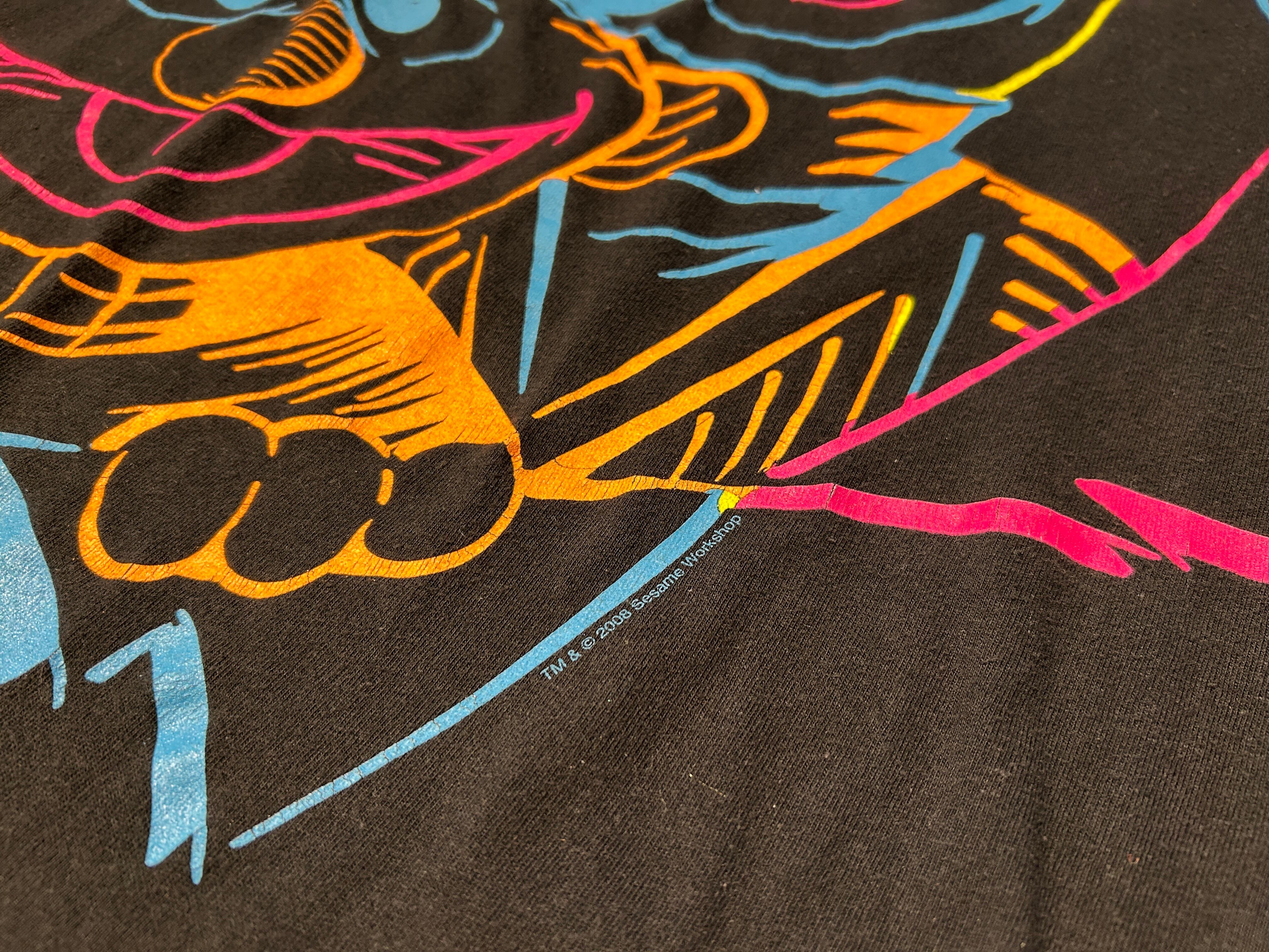 黒ボディにネオンカラーのセサミストリートプリントが映える1着。
