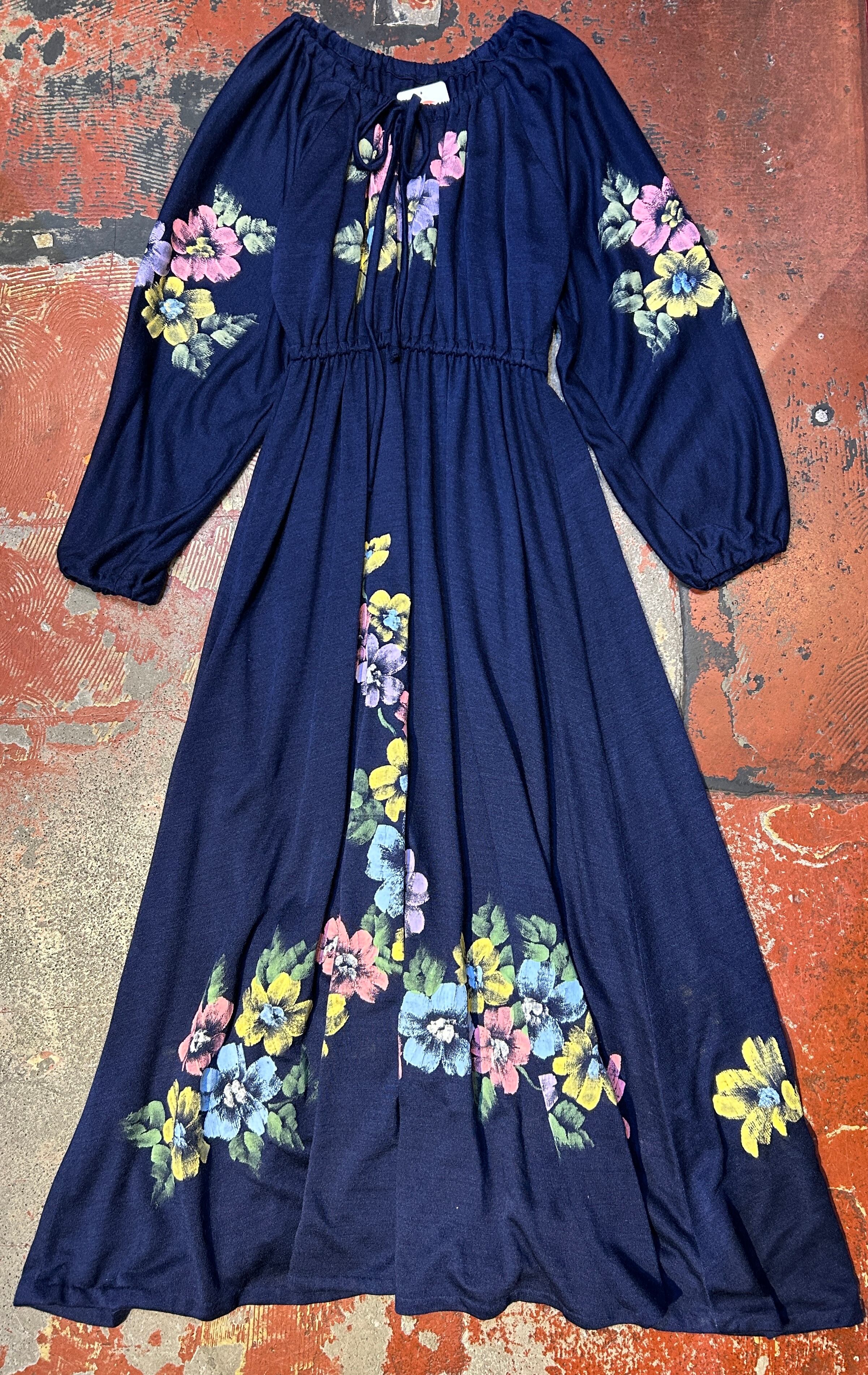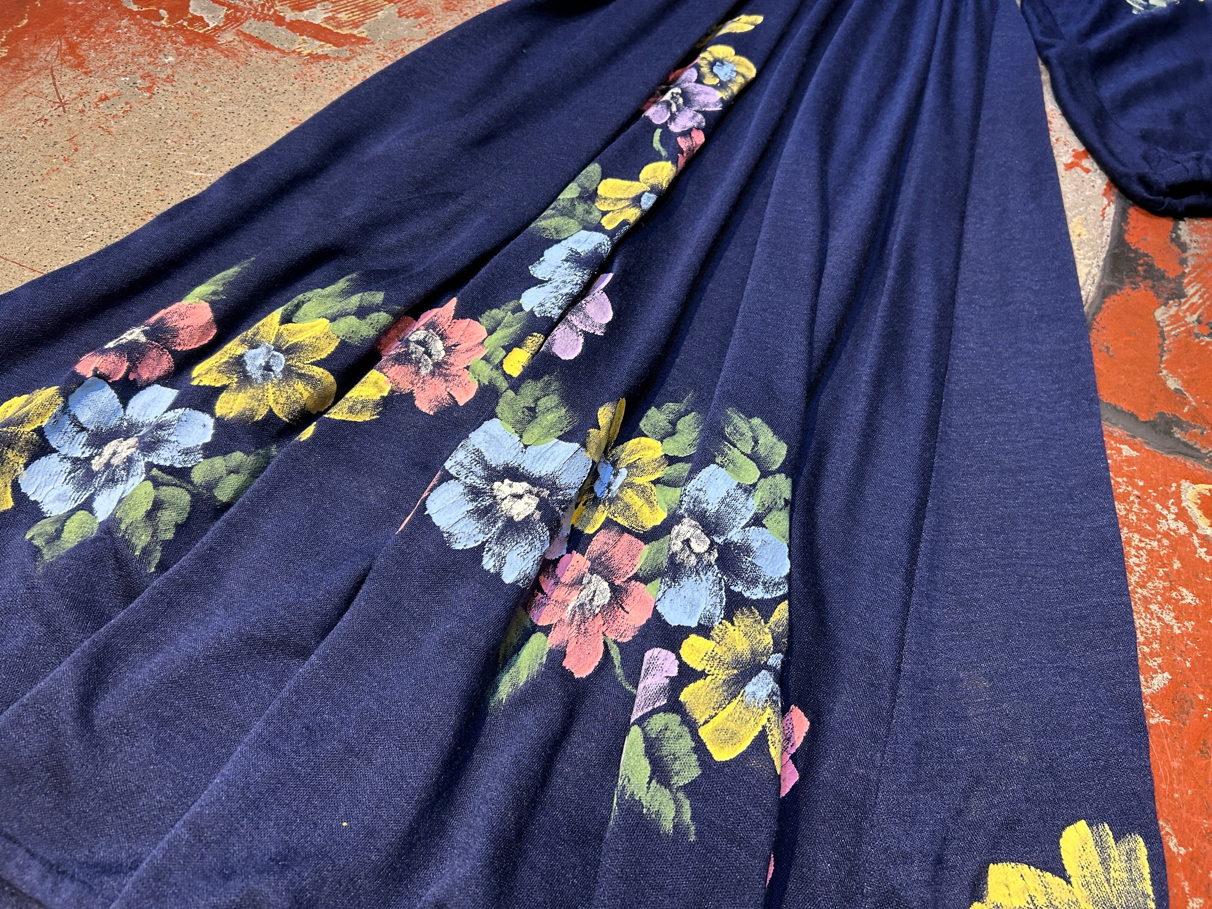 size:表記不明 肩幅なし、身幅52cm、ウエスト56cm(ゴムの為平置き最小採寸、108cm程まで)、袖丈65cm、着丈142cm(肩上から採寸)、ウエストから裾96cm
