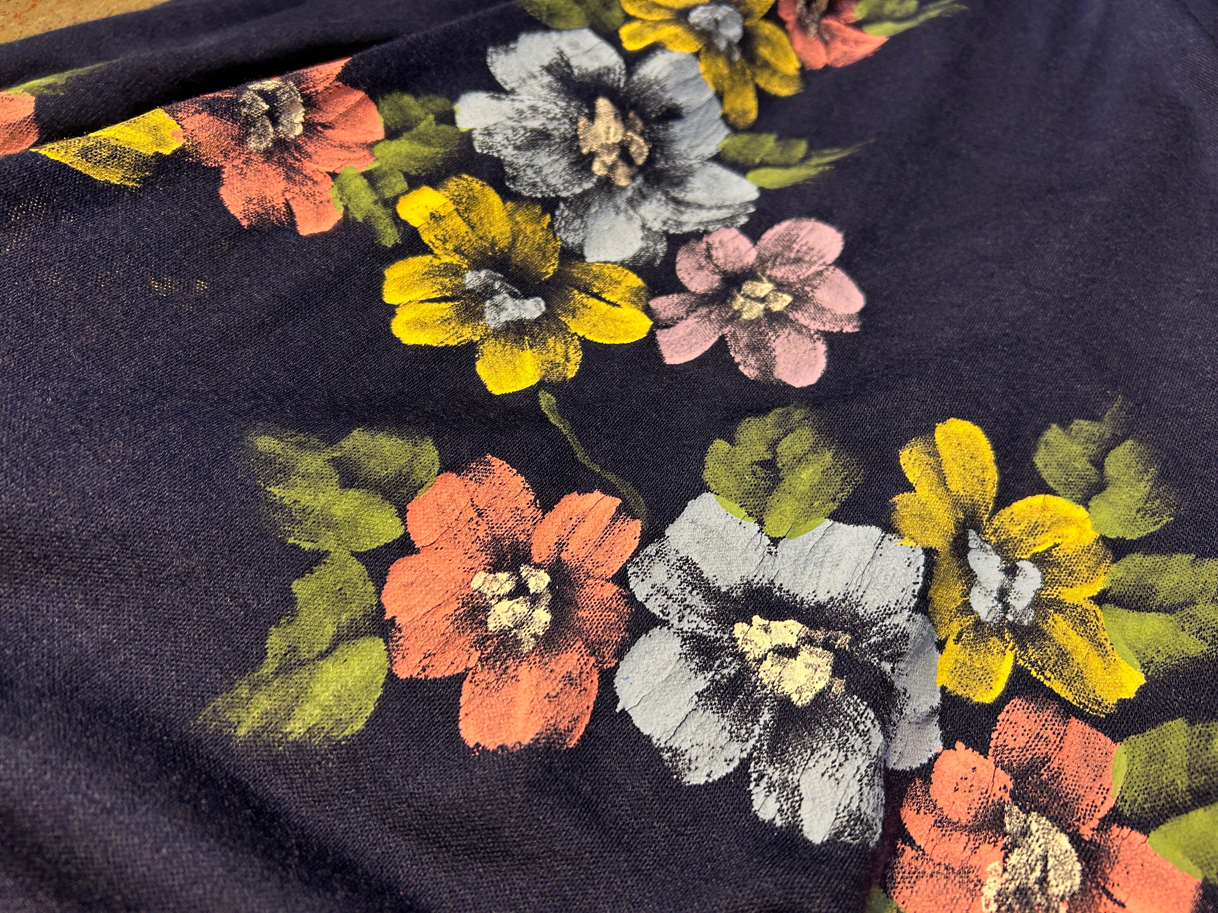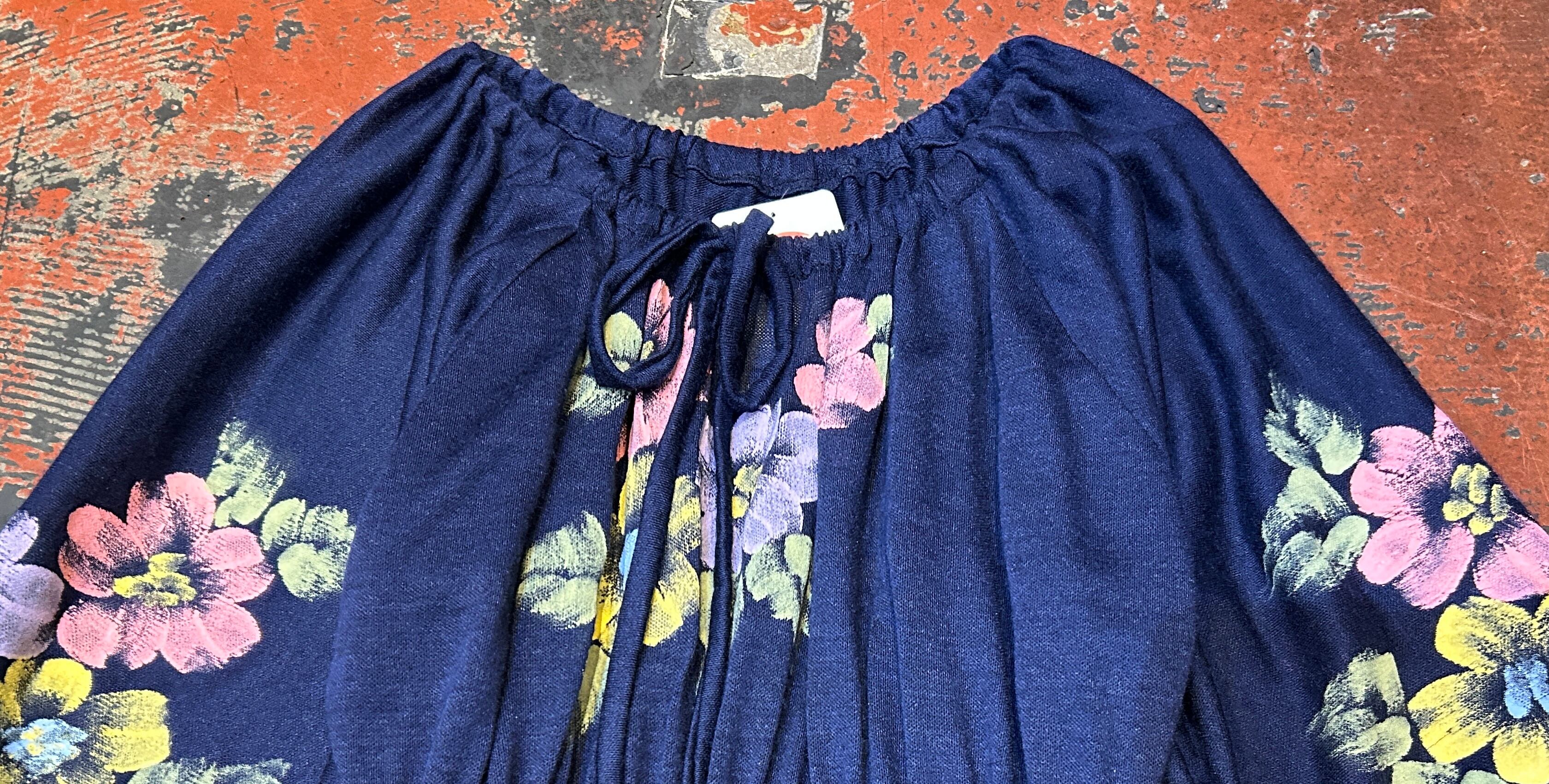 ネイビーボディにお花のペイントが目を奪うアイテム。