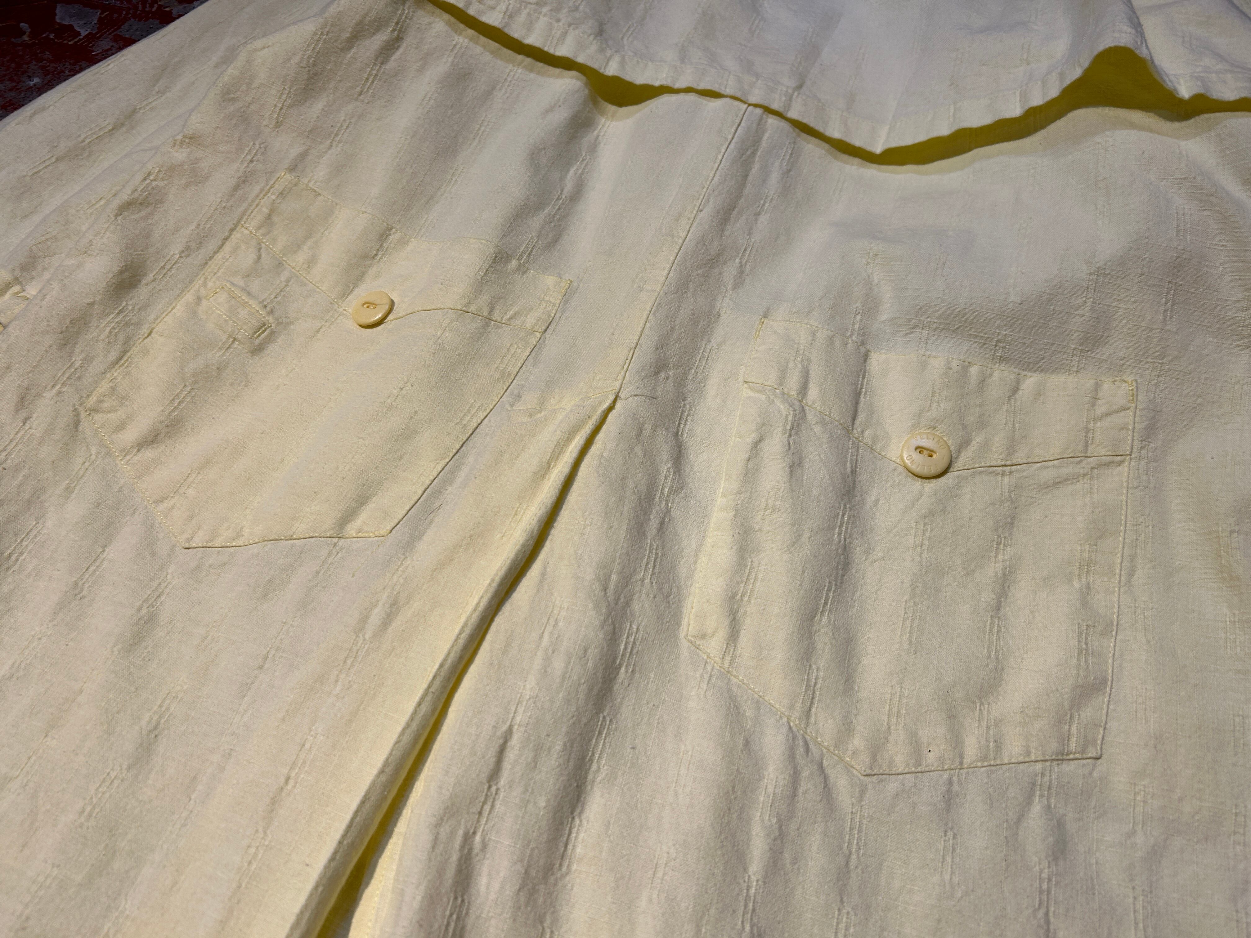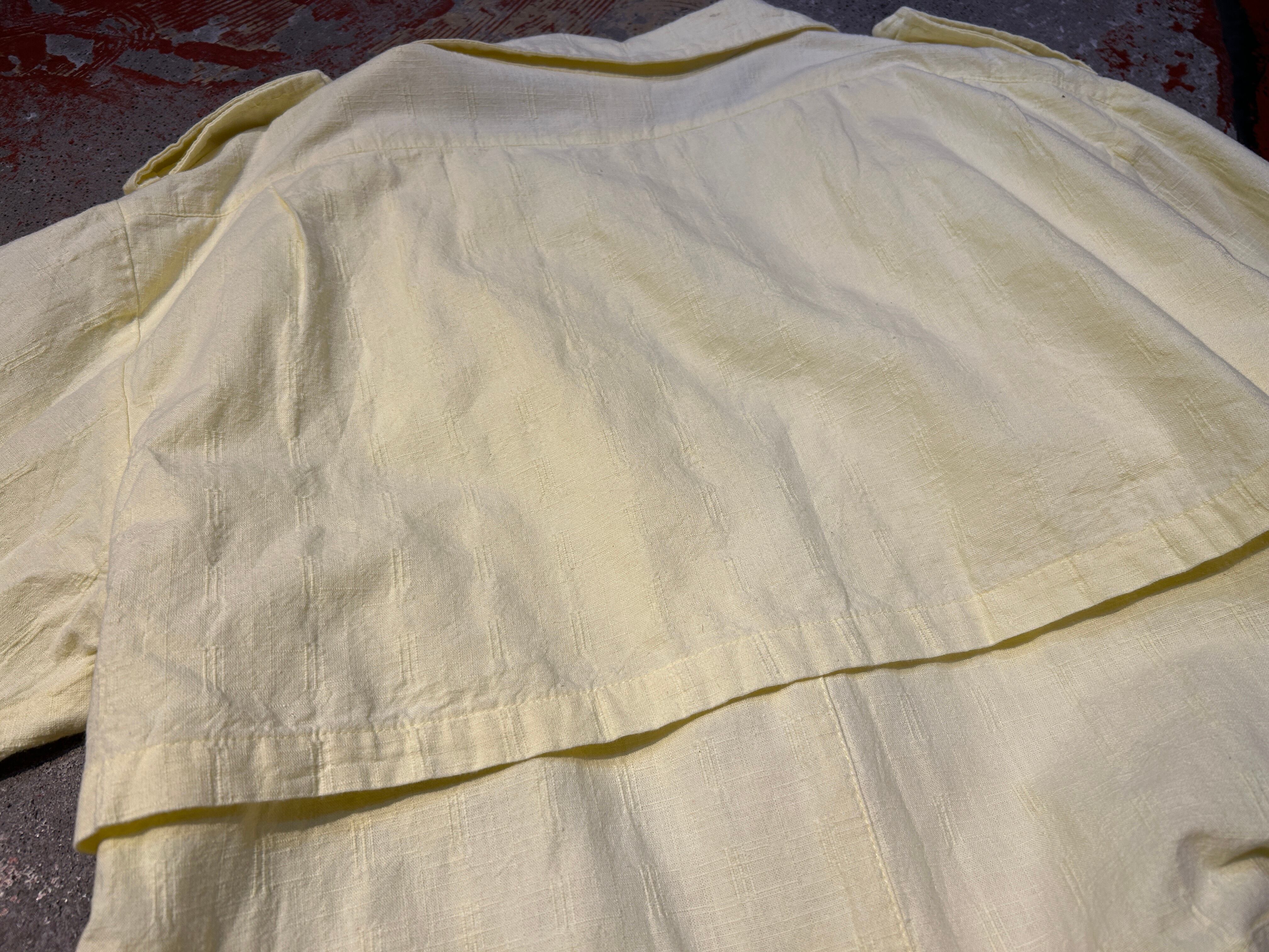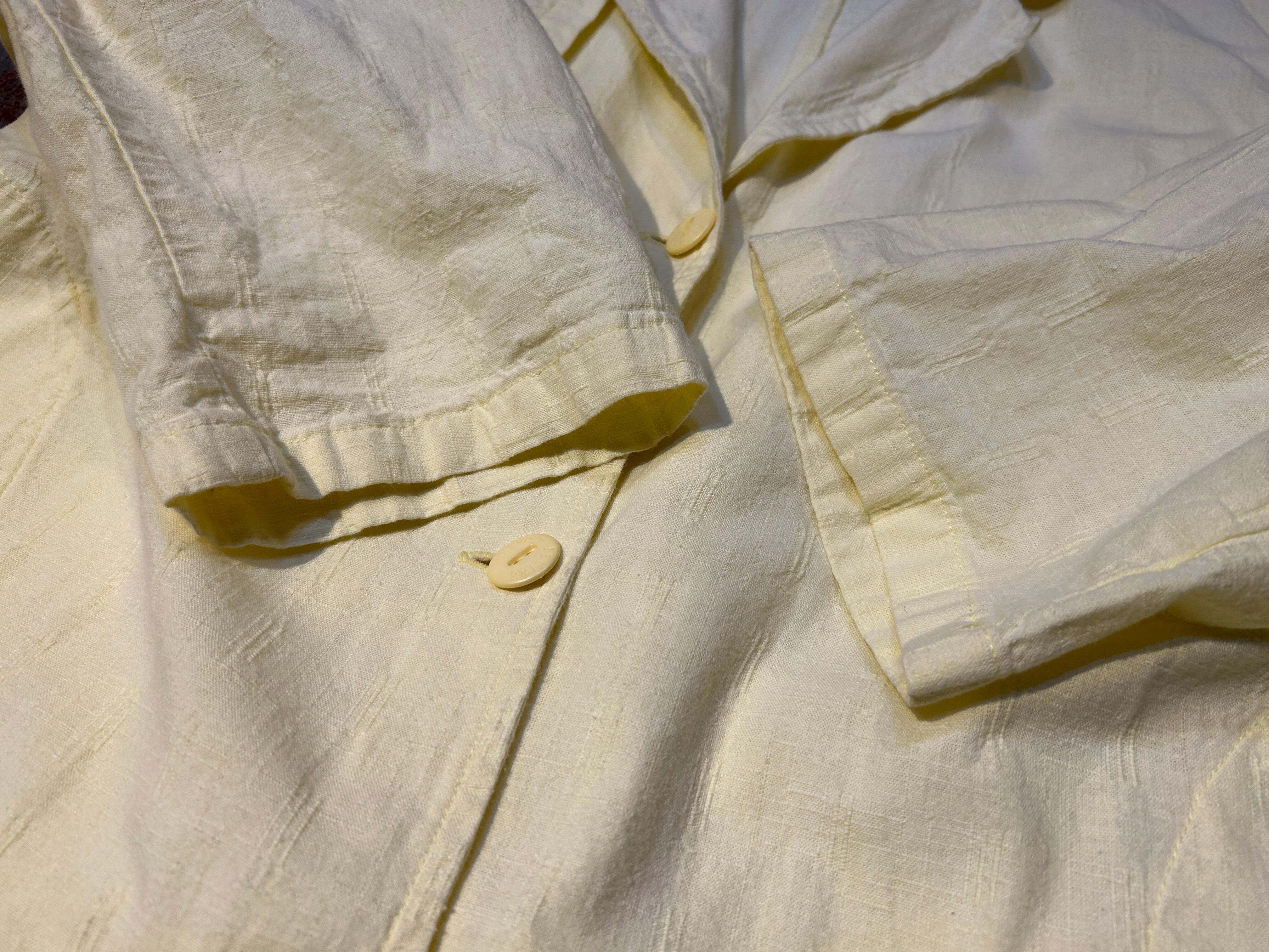 コンディション:襟後ろ、後ろ袖、後ろ裾に小さな汚れがございますが気になりません。特筆するダメージ等無く、ビンテージにご理解頂いている方でしたら、比較的程度の良いアイテムかと思われます。