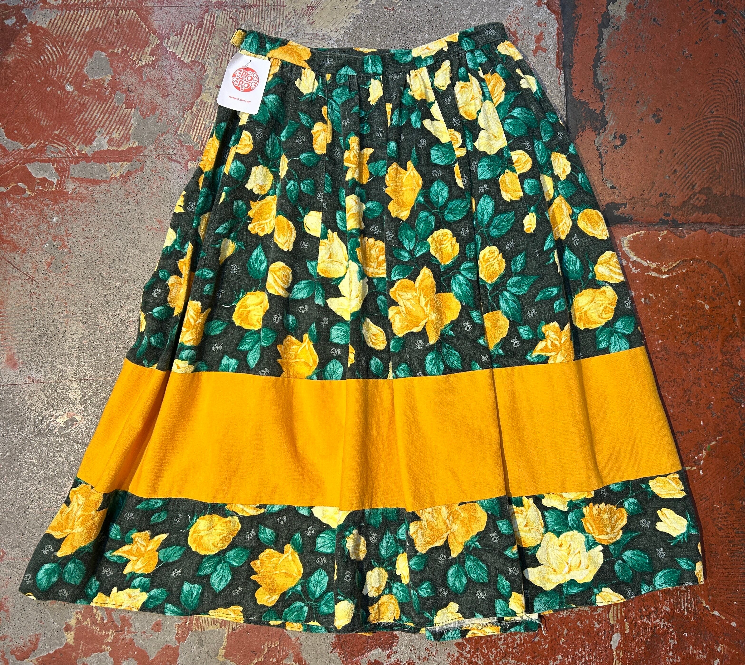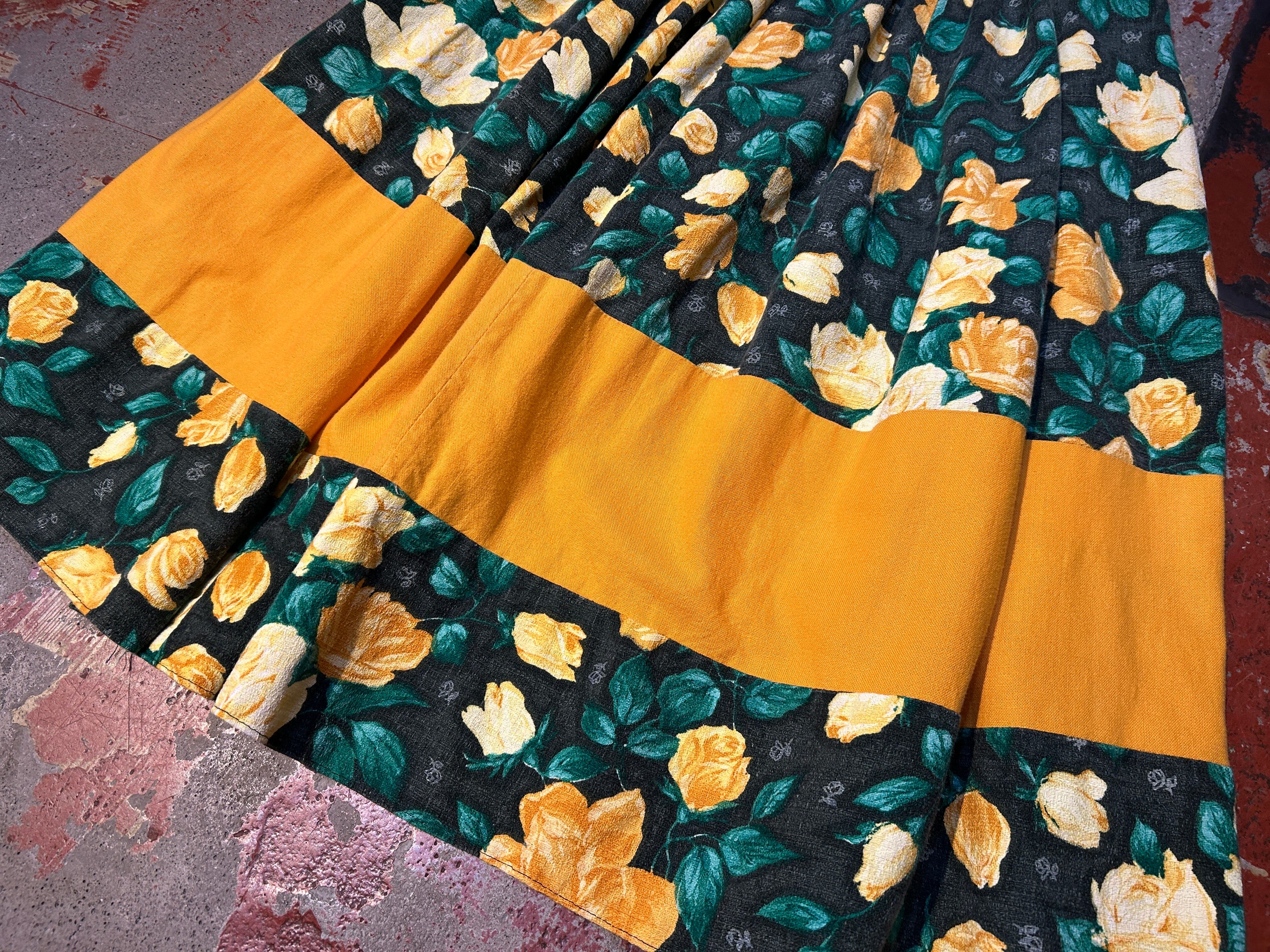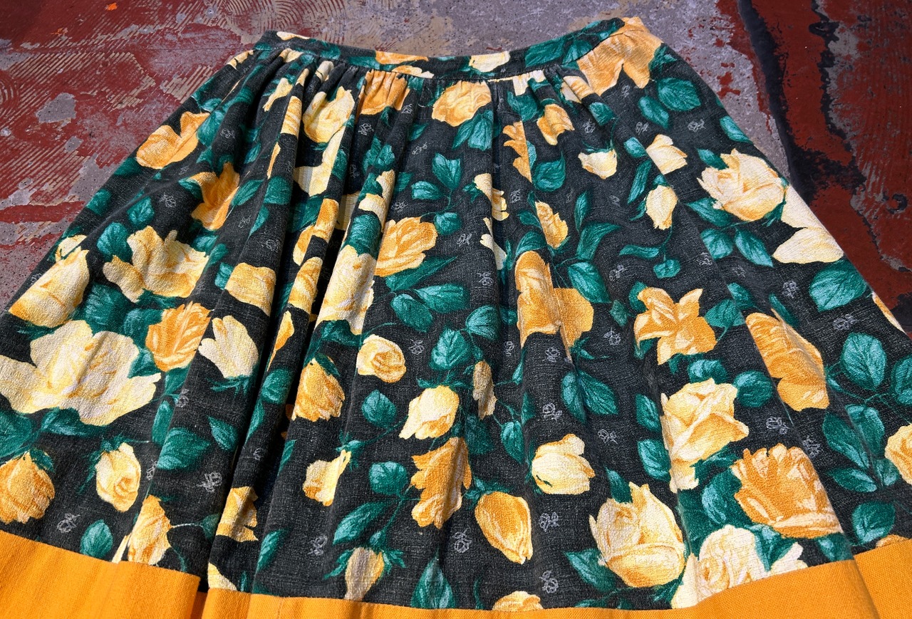 絵画風なタッチのフラワープリントが非常に素敵で、オレンジのプレーンな生地の切り替えもポイントです。