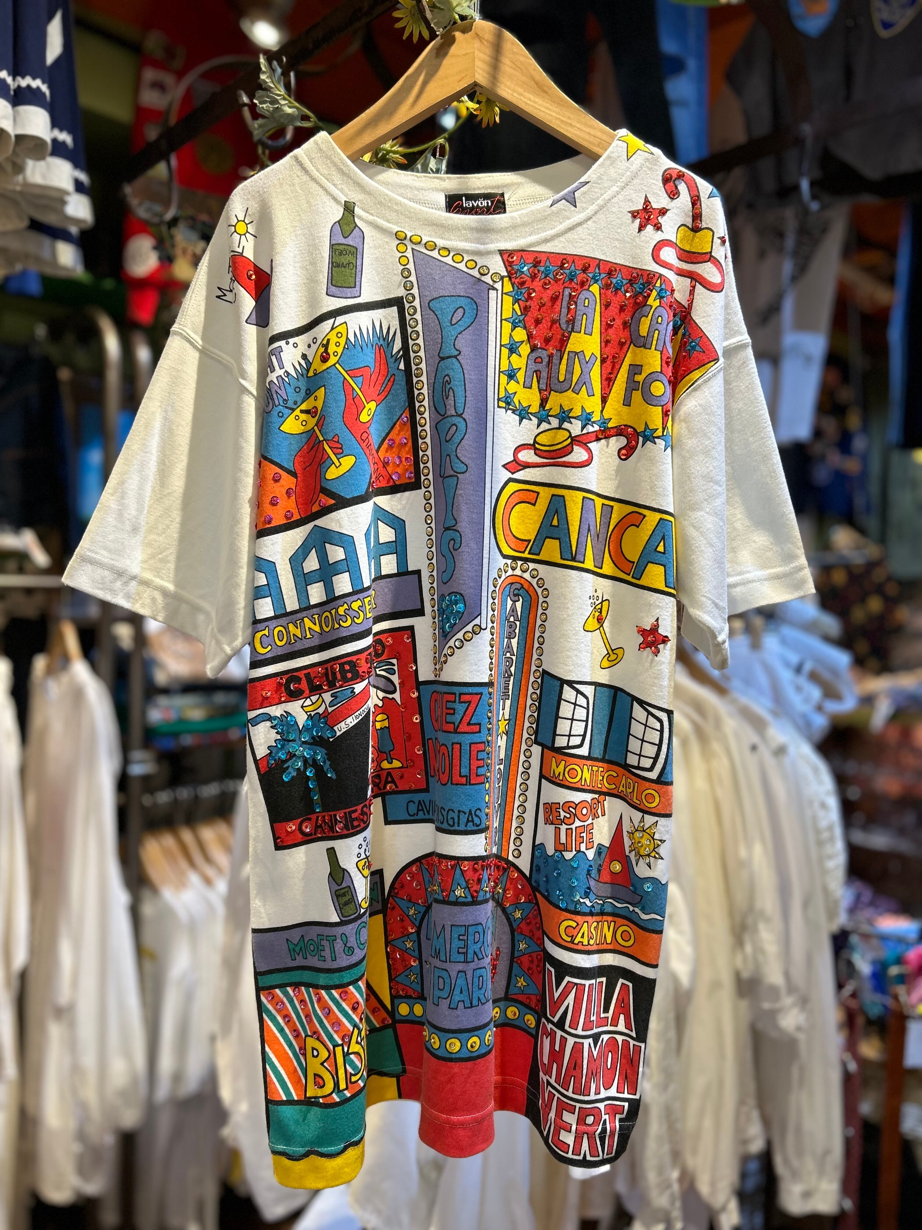 肩から裾まで伸び伸びとプリントされていてインパクトのあるポップな1着です。