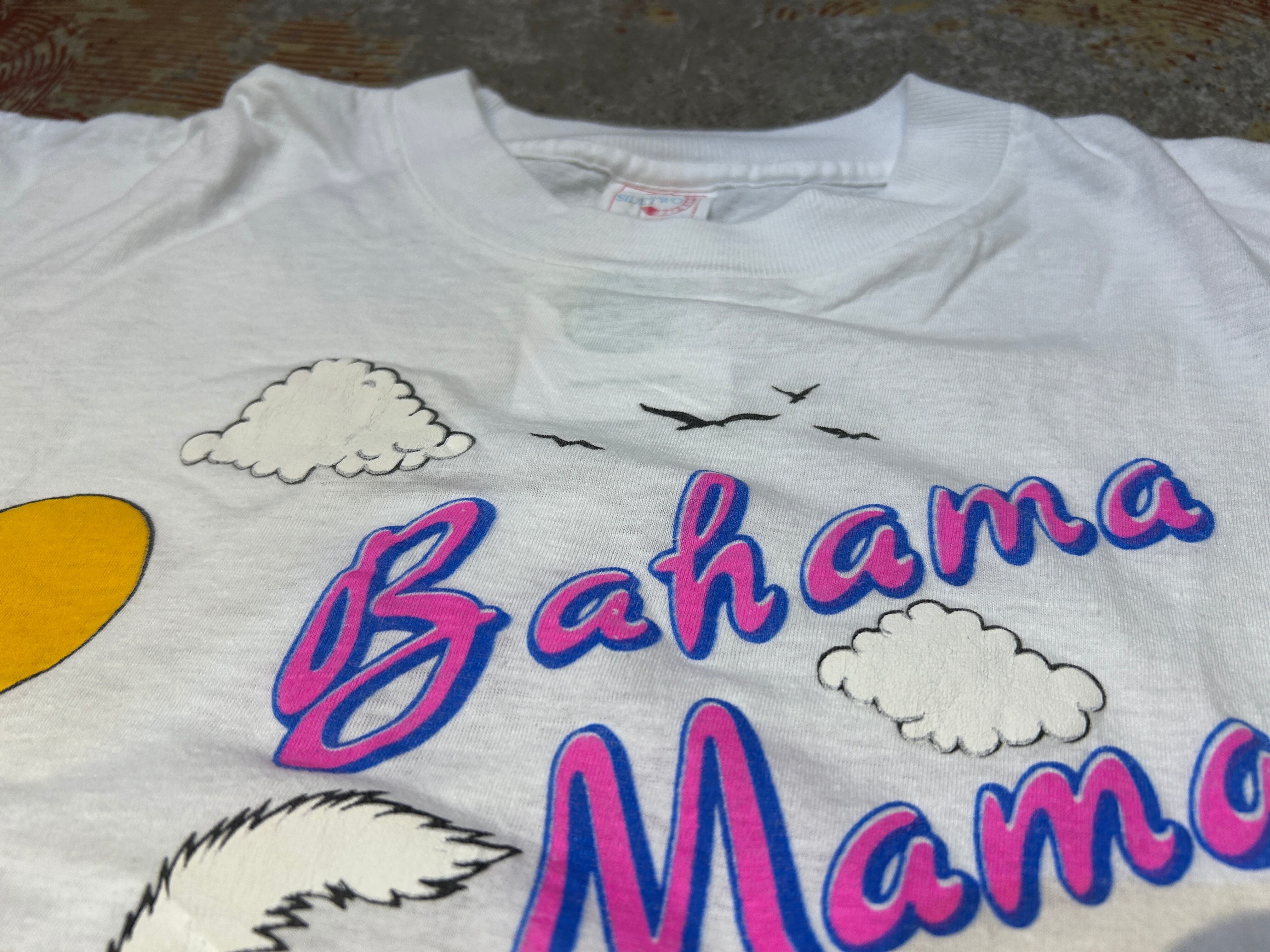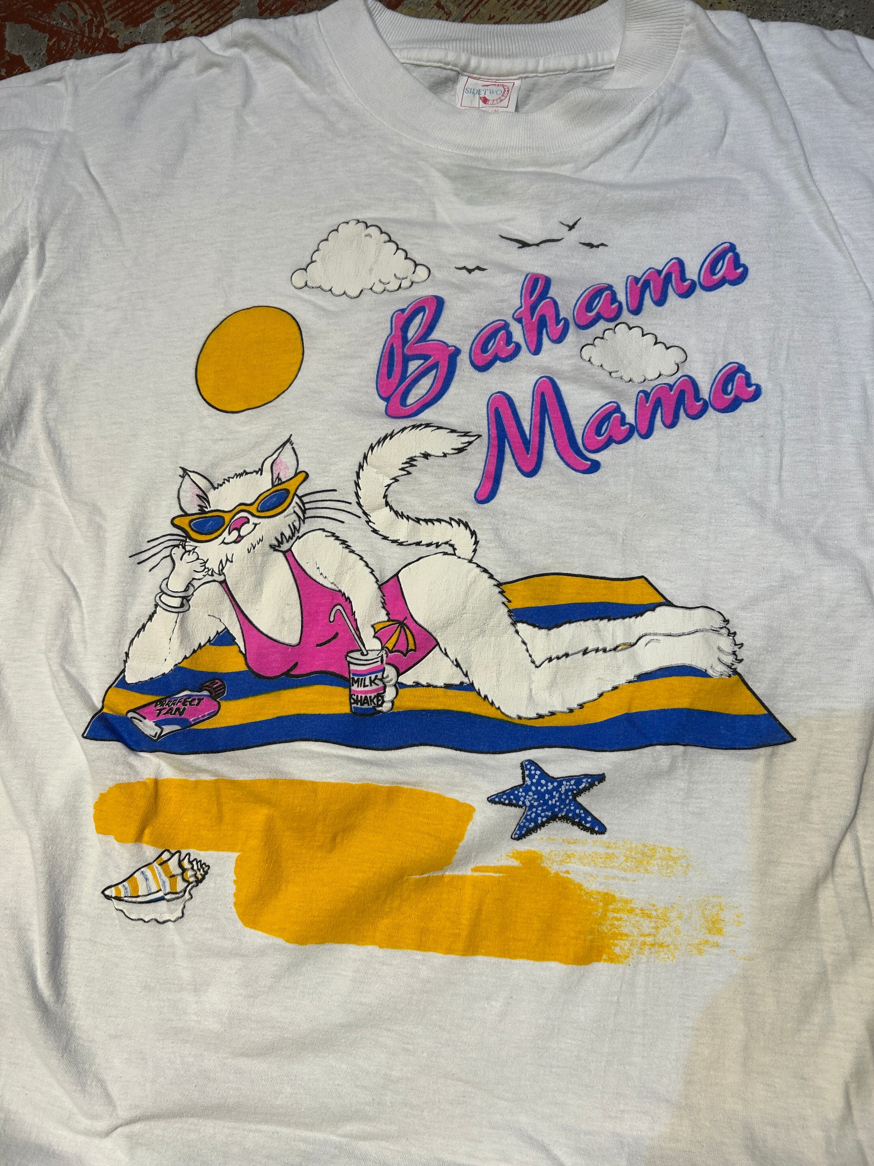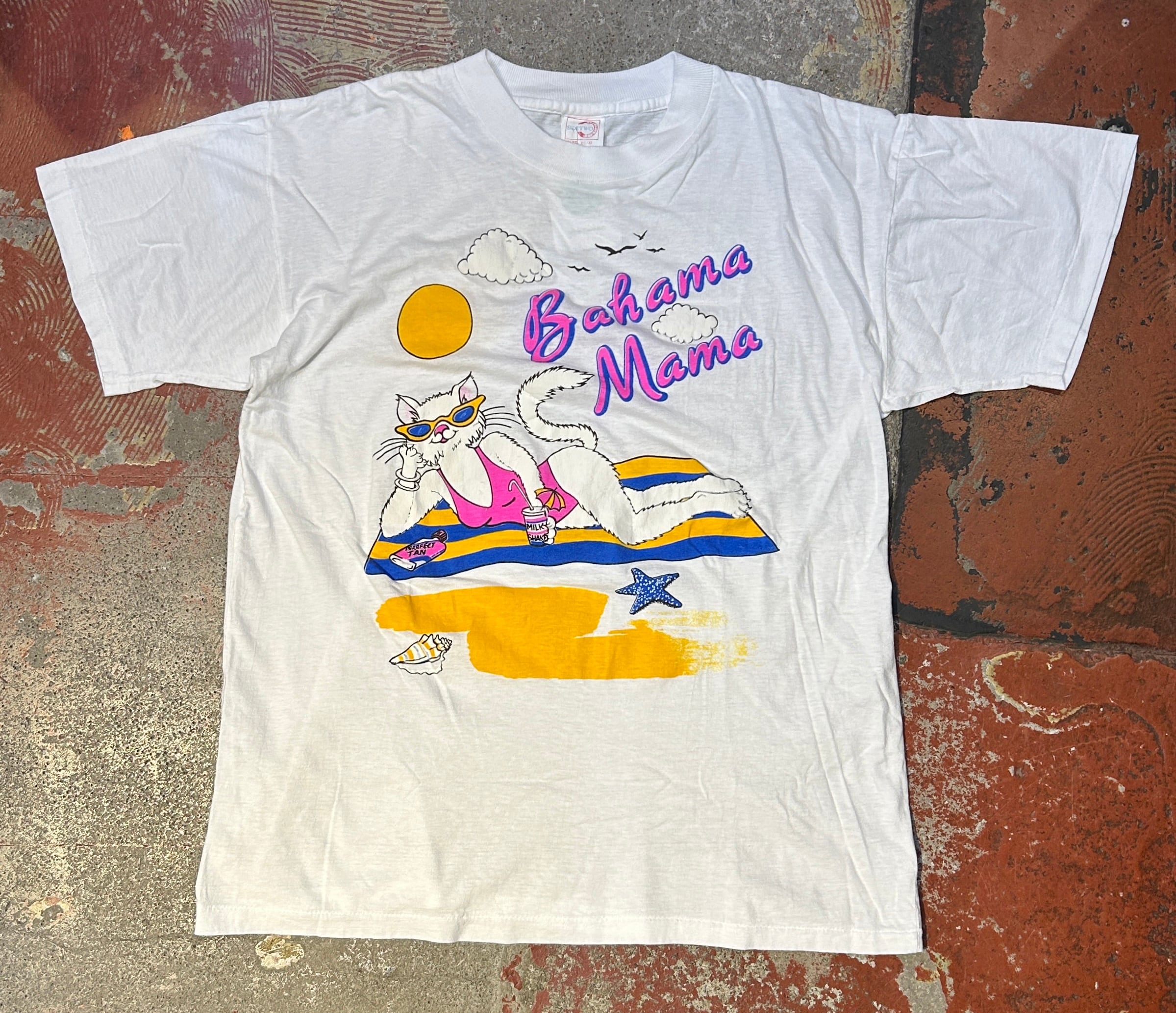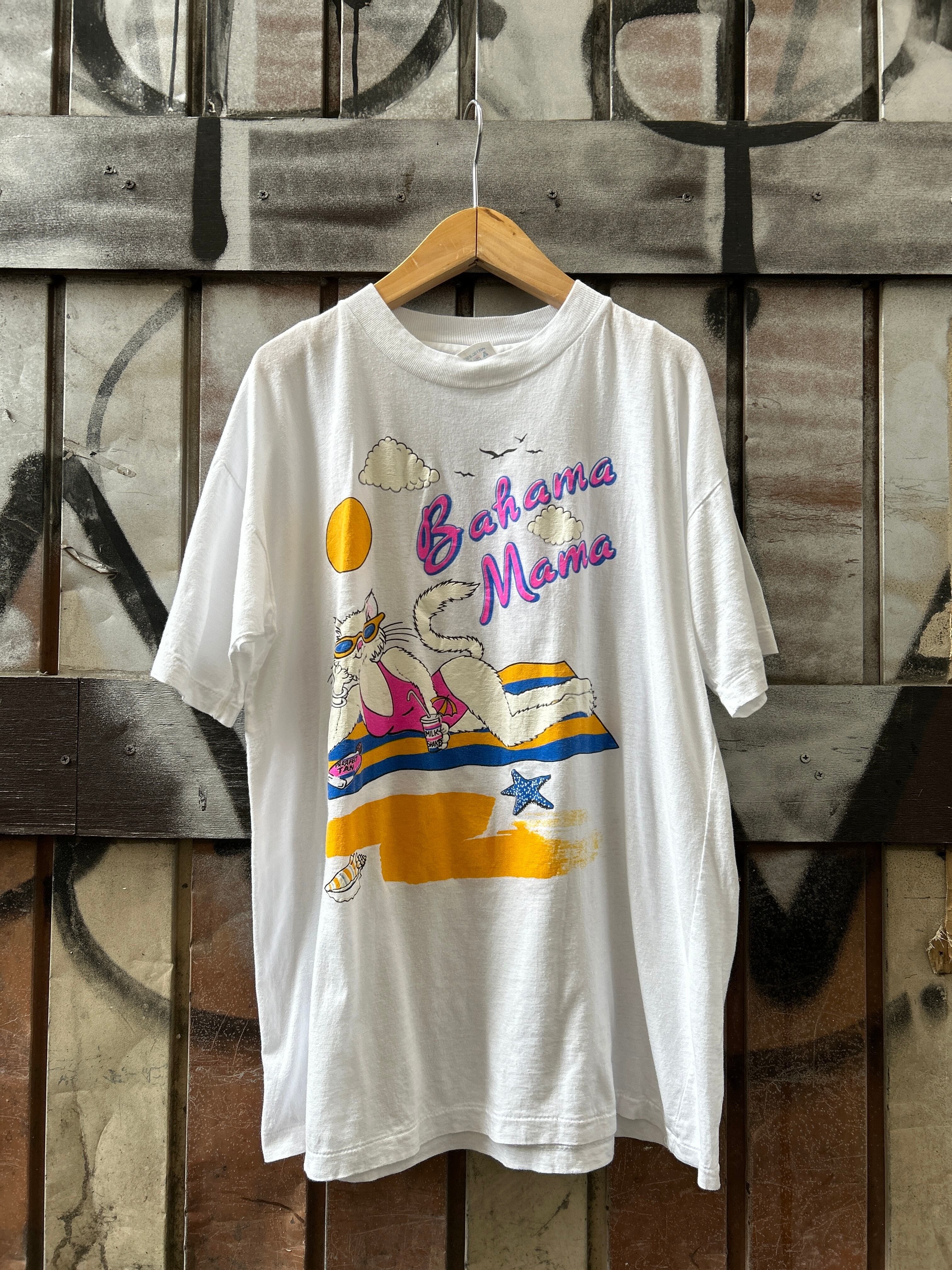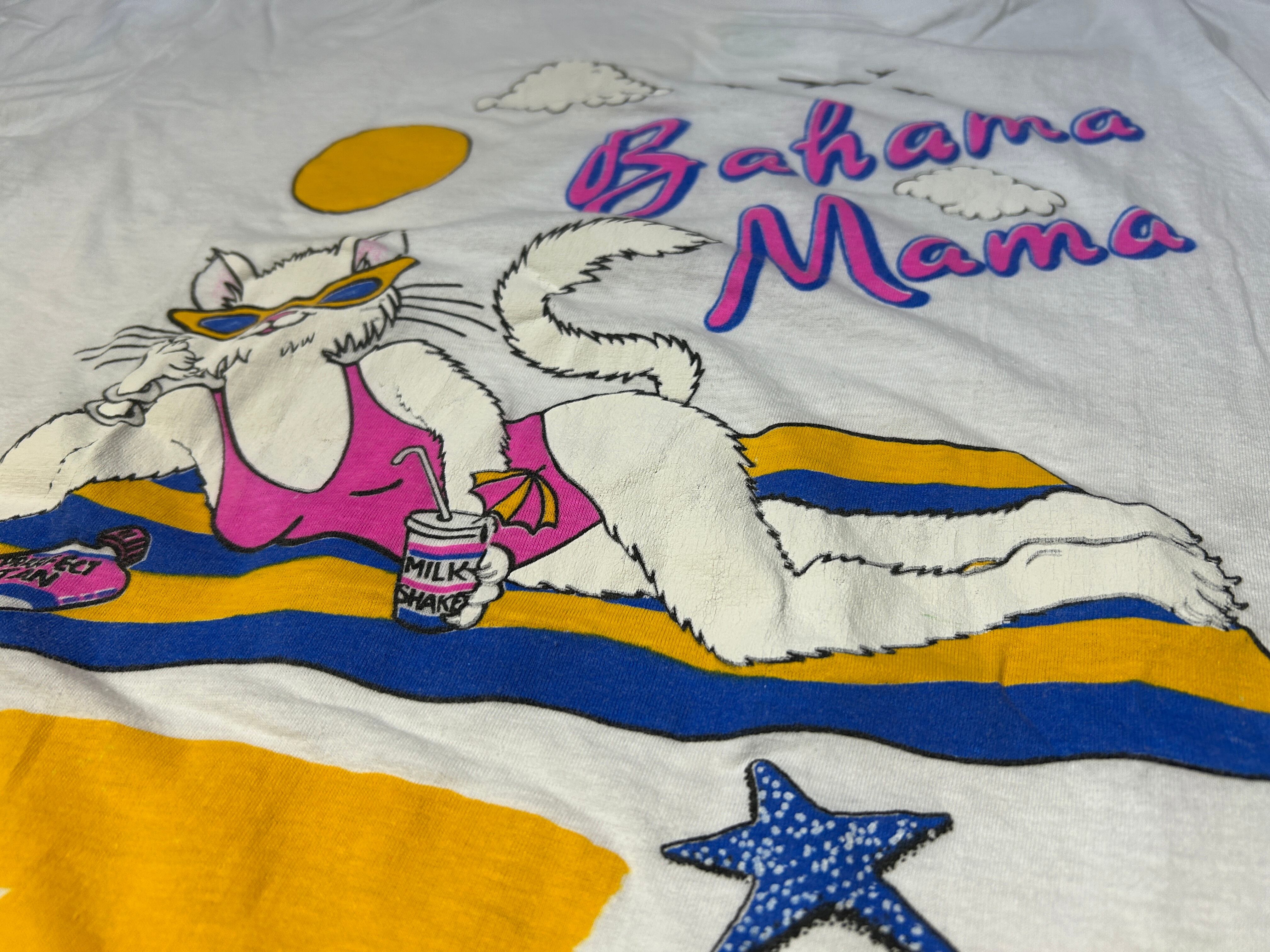 ネオンカラーのBahama Mamaという文字と一緒にセクシーな水着姿のネコがプリントされた可愛らしいアイテム。
