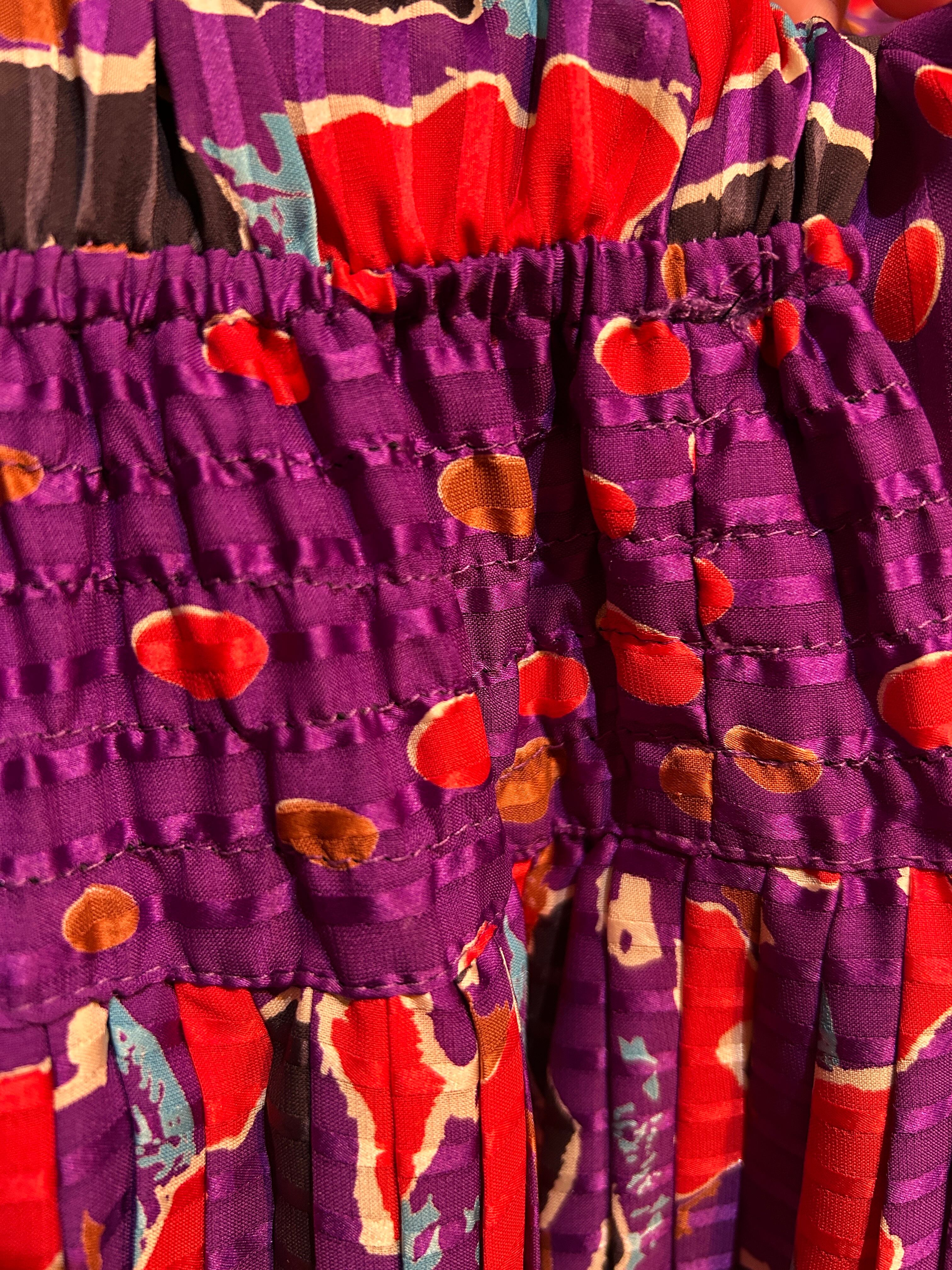 size:表記不明 肩幅38cm、身幅54.5cm、ウエスト56cm(ウエストゴムの為平置き最小採寸)、袖丈47cm、着丈128.5cm、ウエストから裾83cm
