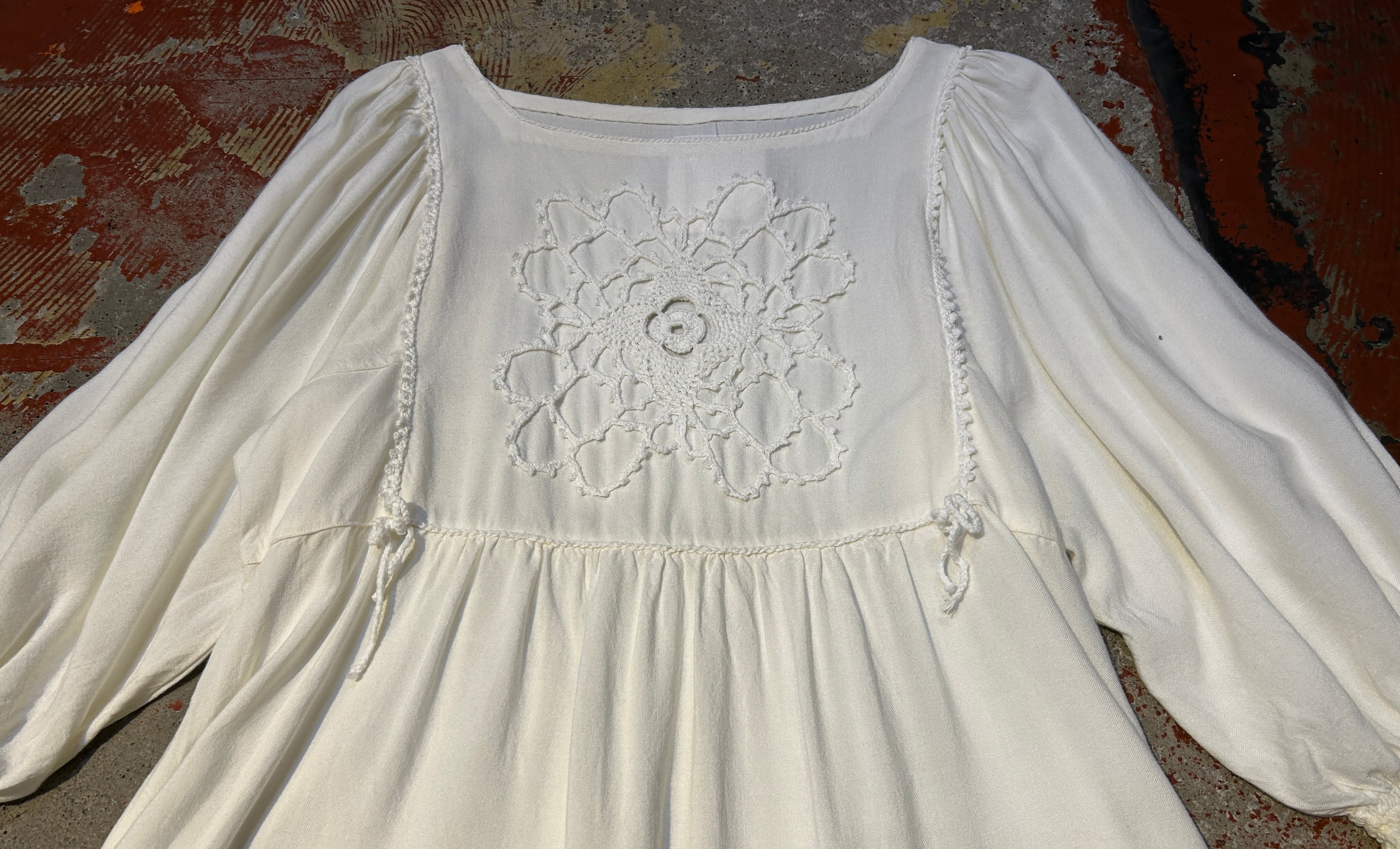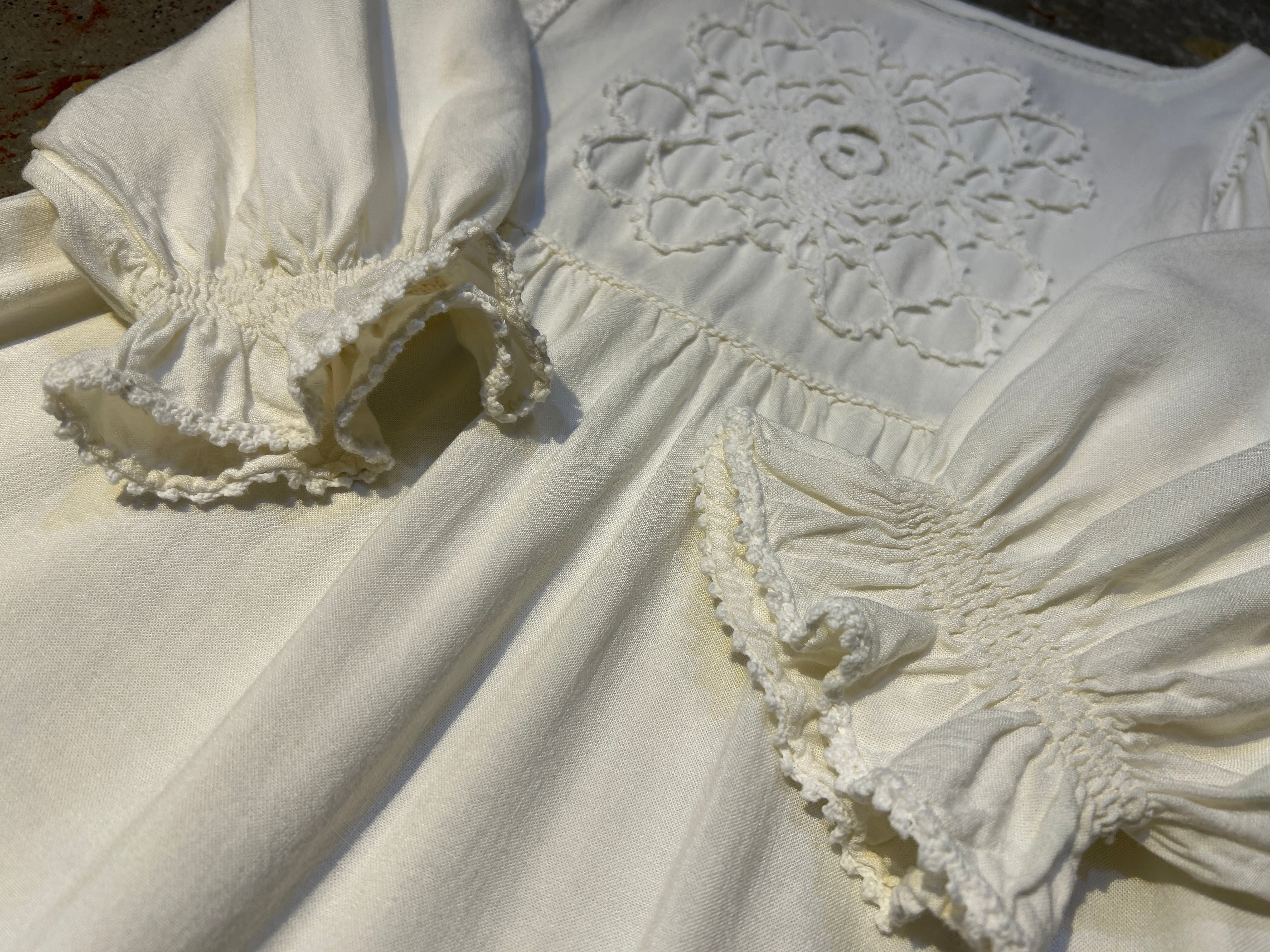 size:表記不明 肩幅30cm、身幅43.5cm、袖丈46cm、着丈75cm