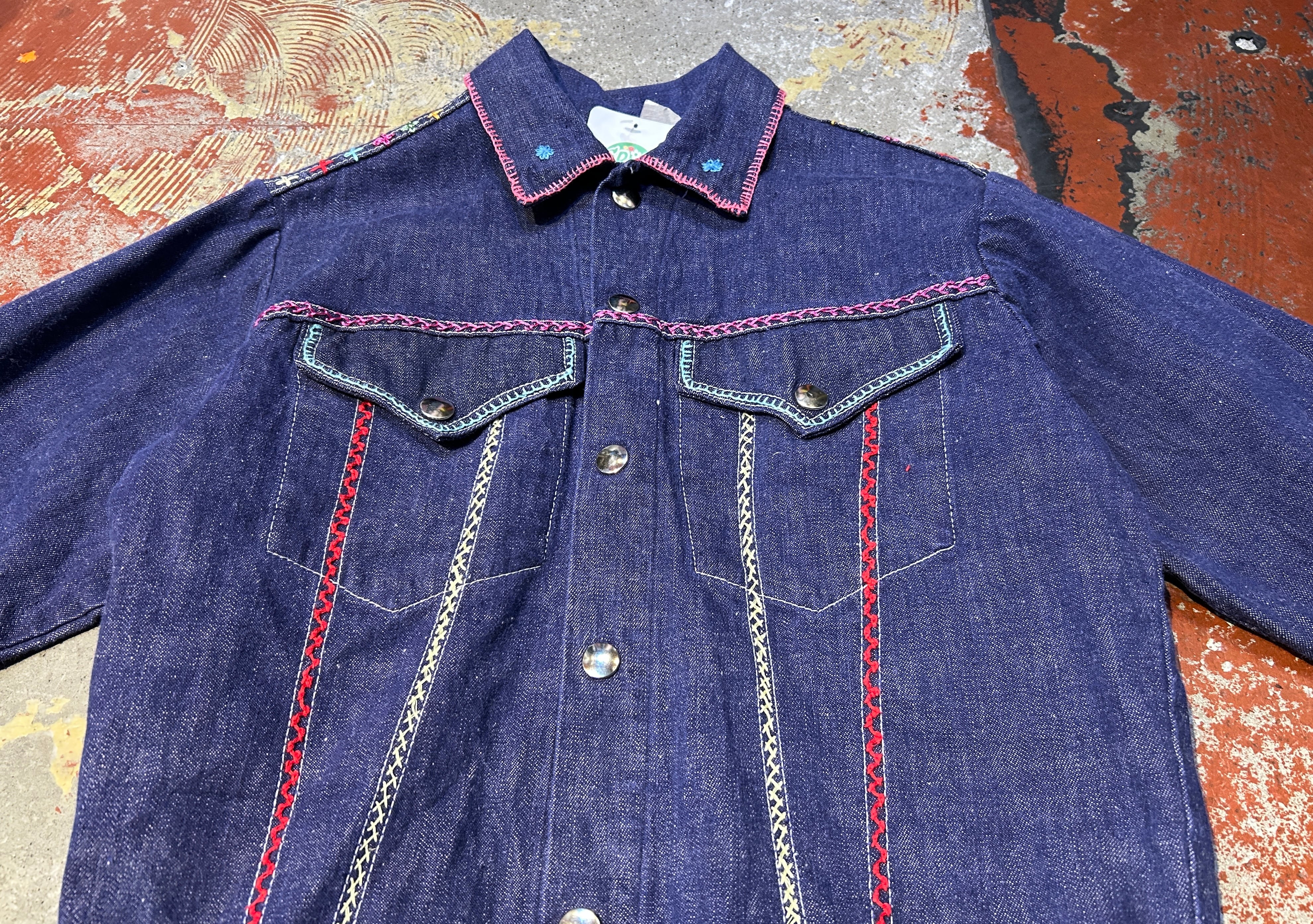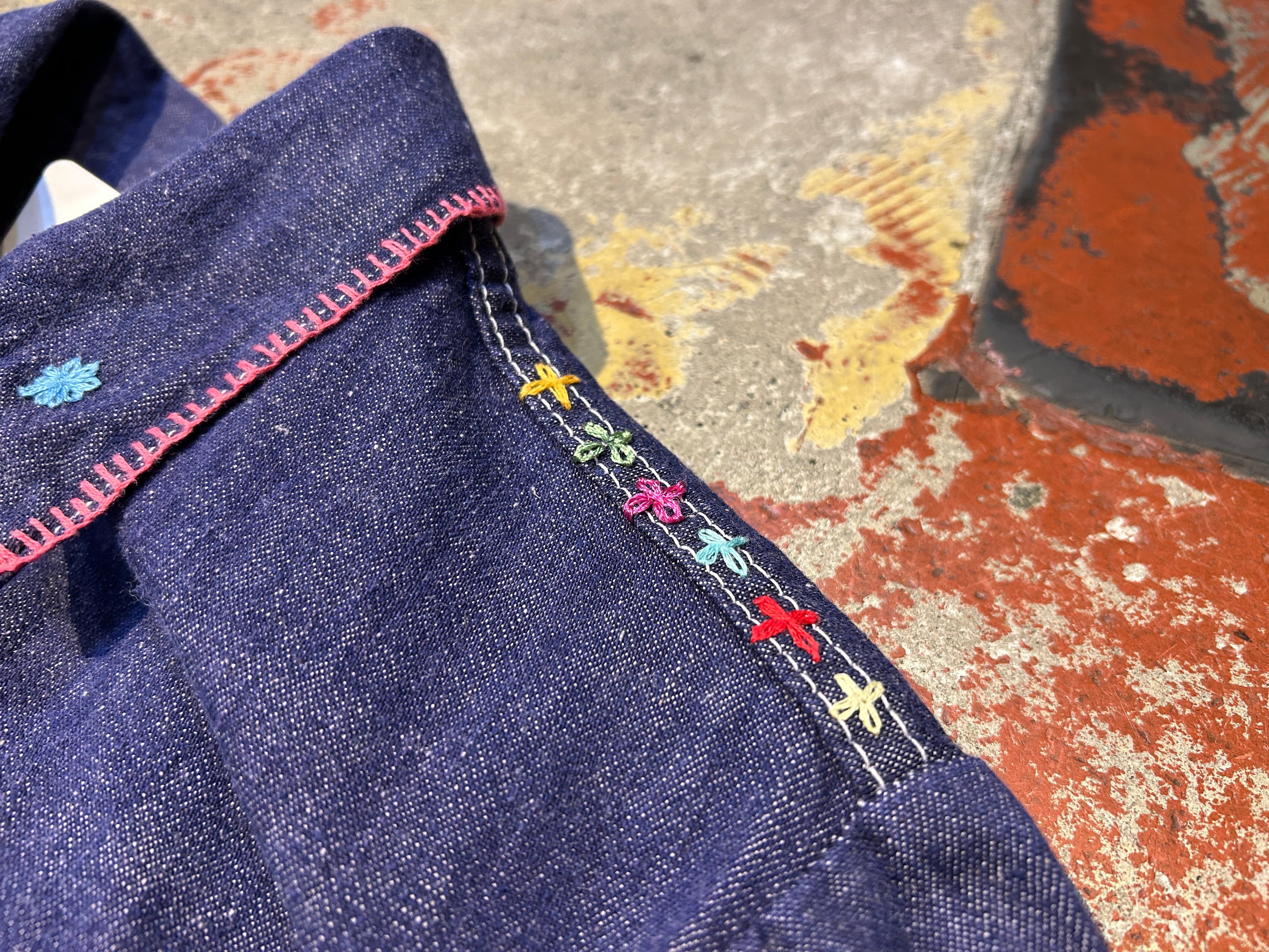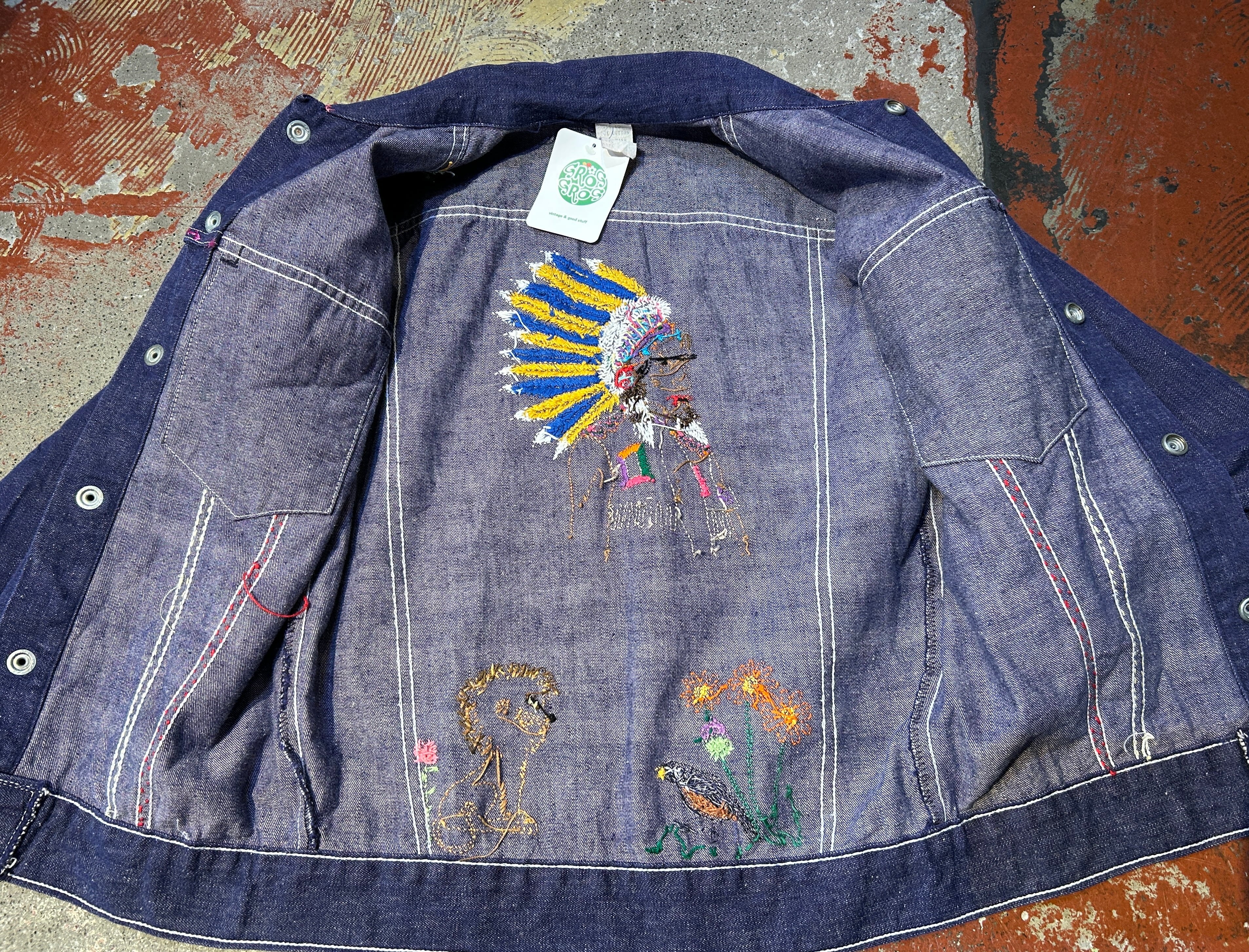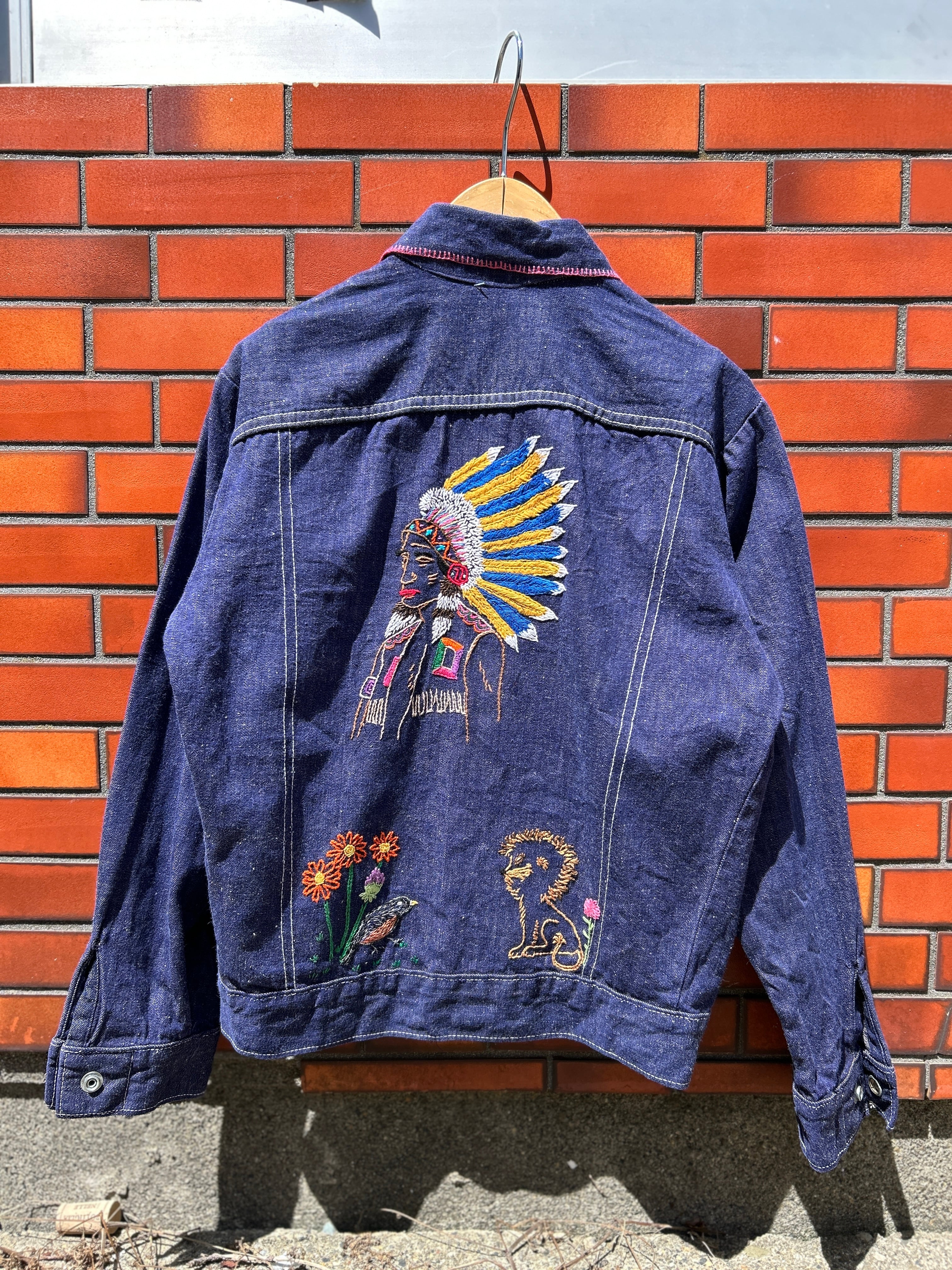 背中のインディアン刺繍やお花のステッチがUSビンテージならではで魅力満載です。