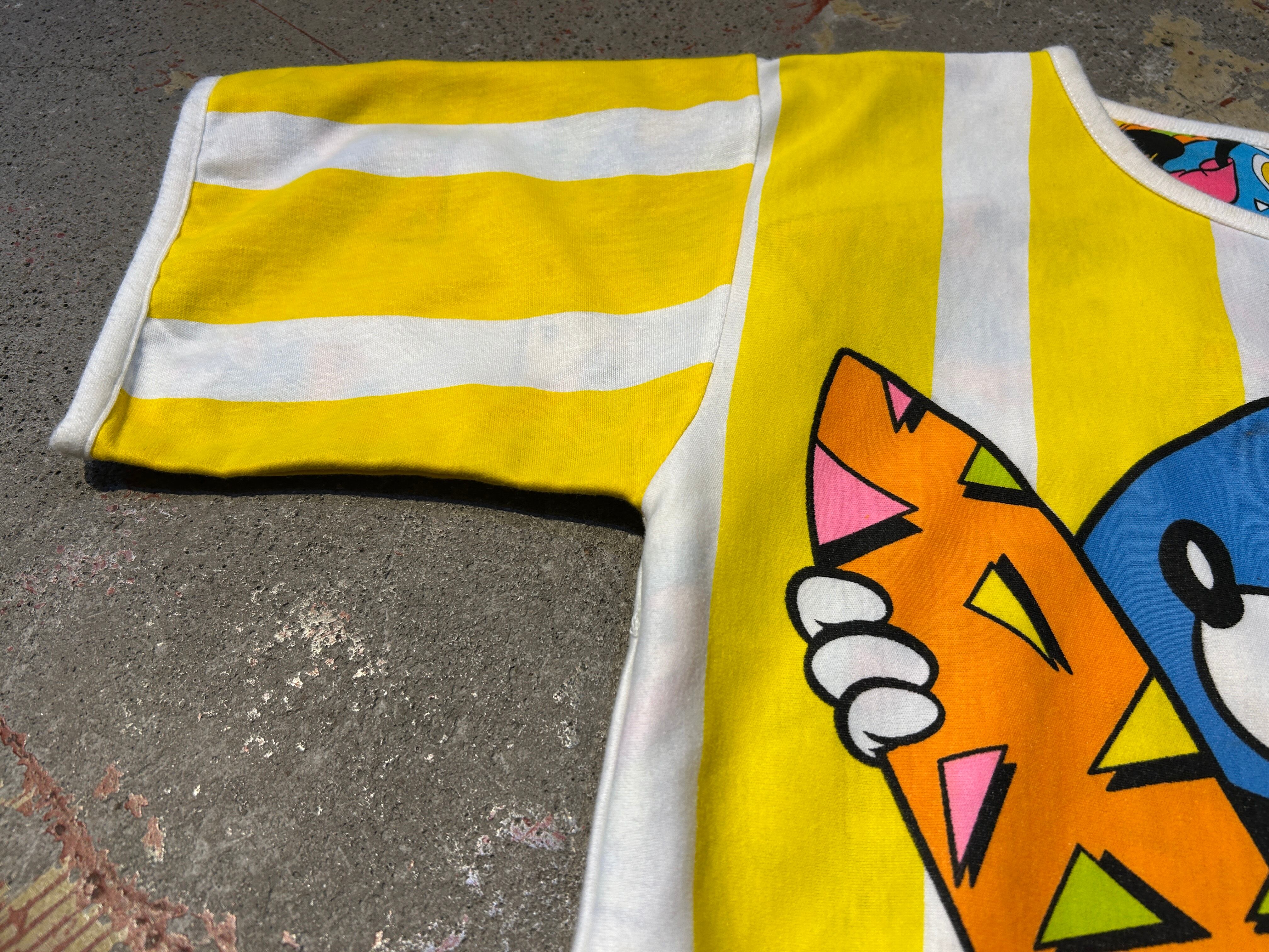コンディション:フロントと背中に薄ら汚れ、左脇に黄色インクプリントミス、サーフィン面背中に薄らシミがございますがどれも気になりません。その他特筆するダメージ等無く、ビンテージにご理解頂いている方でしたら、気にせず着用頂けます。
