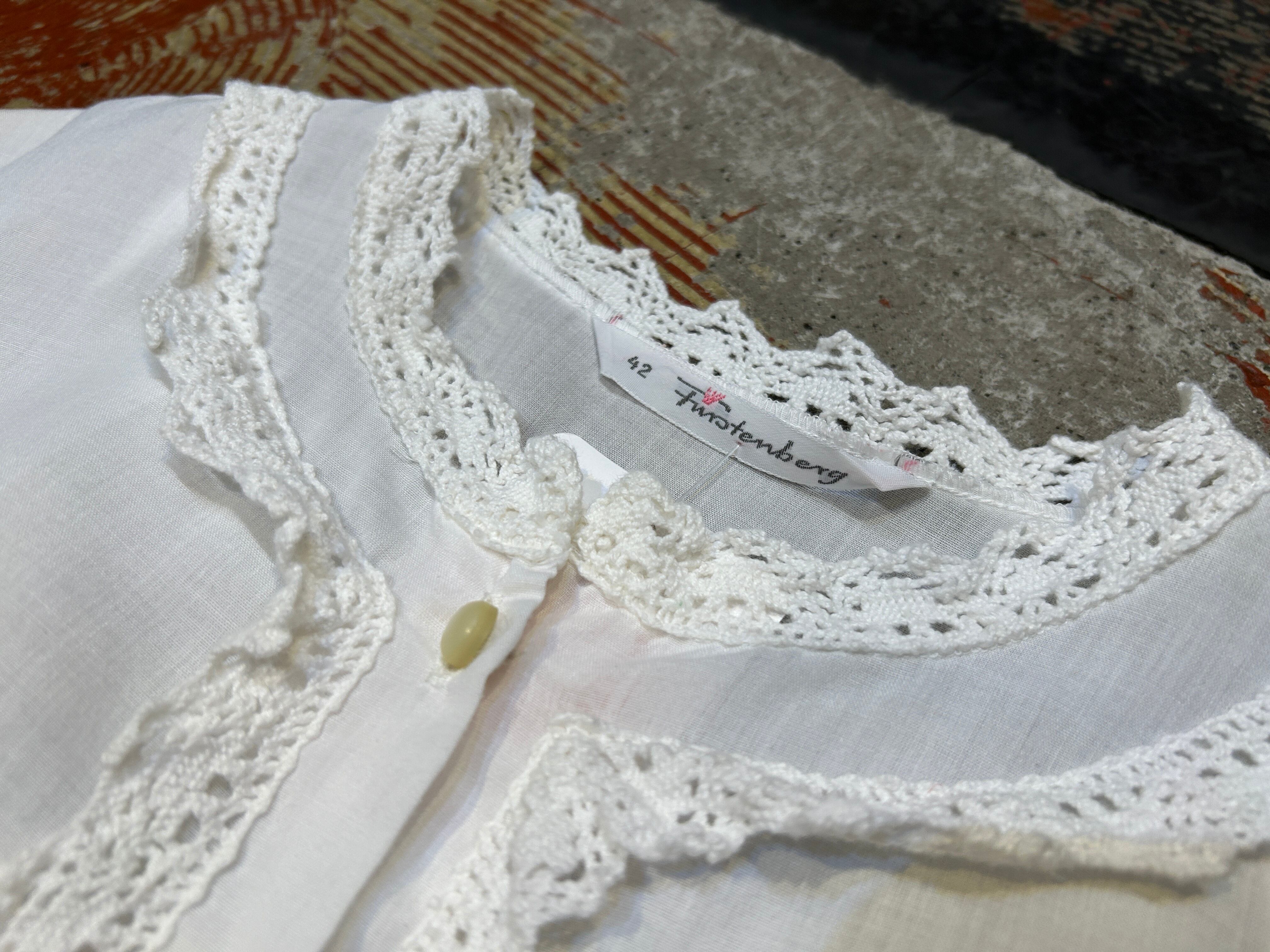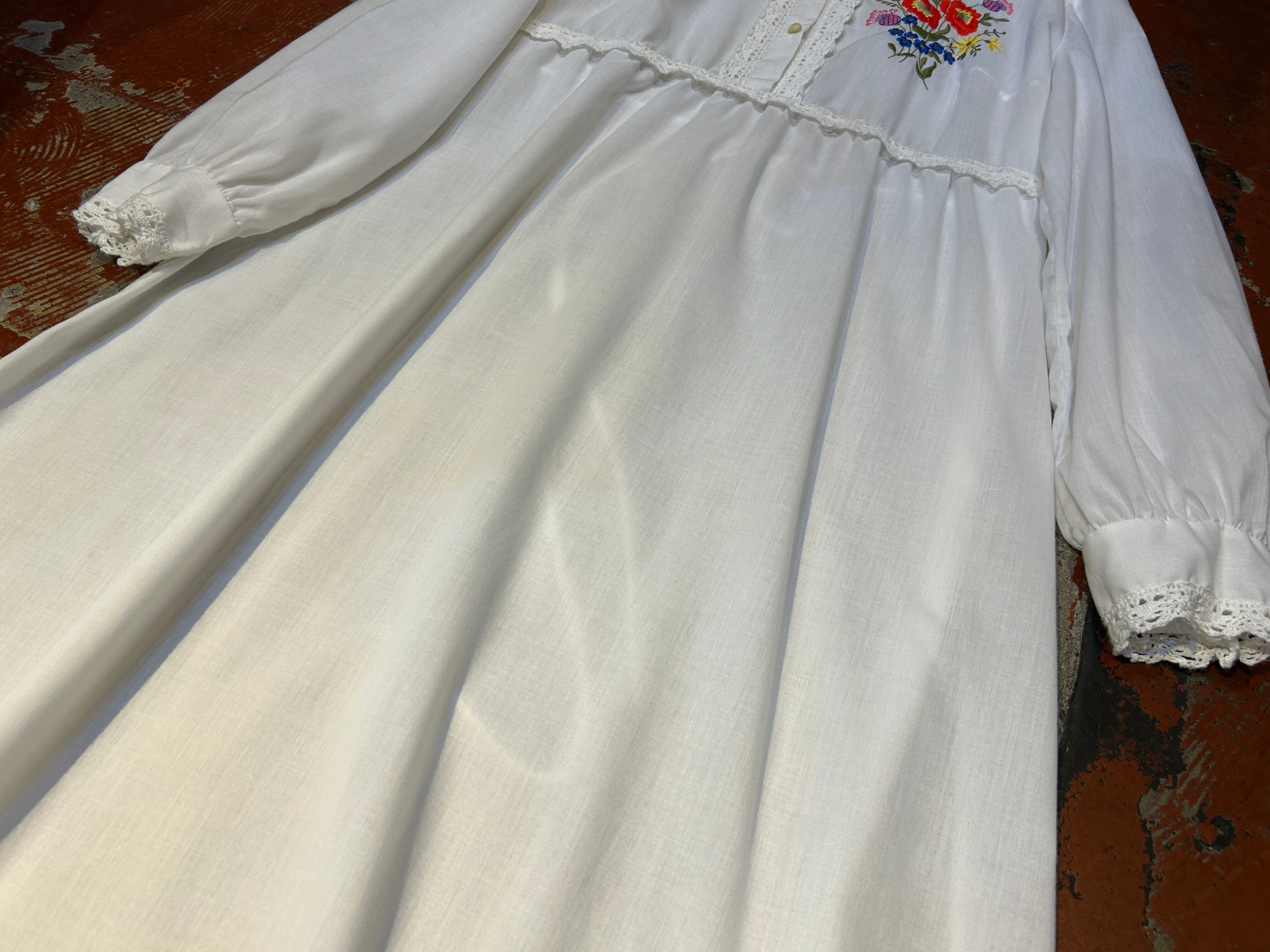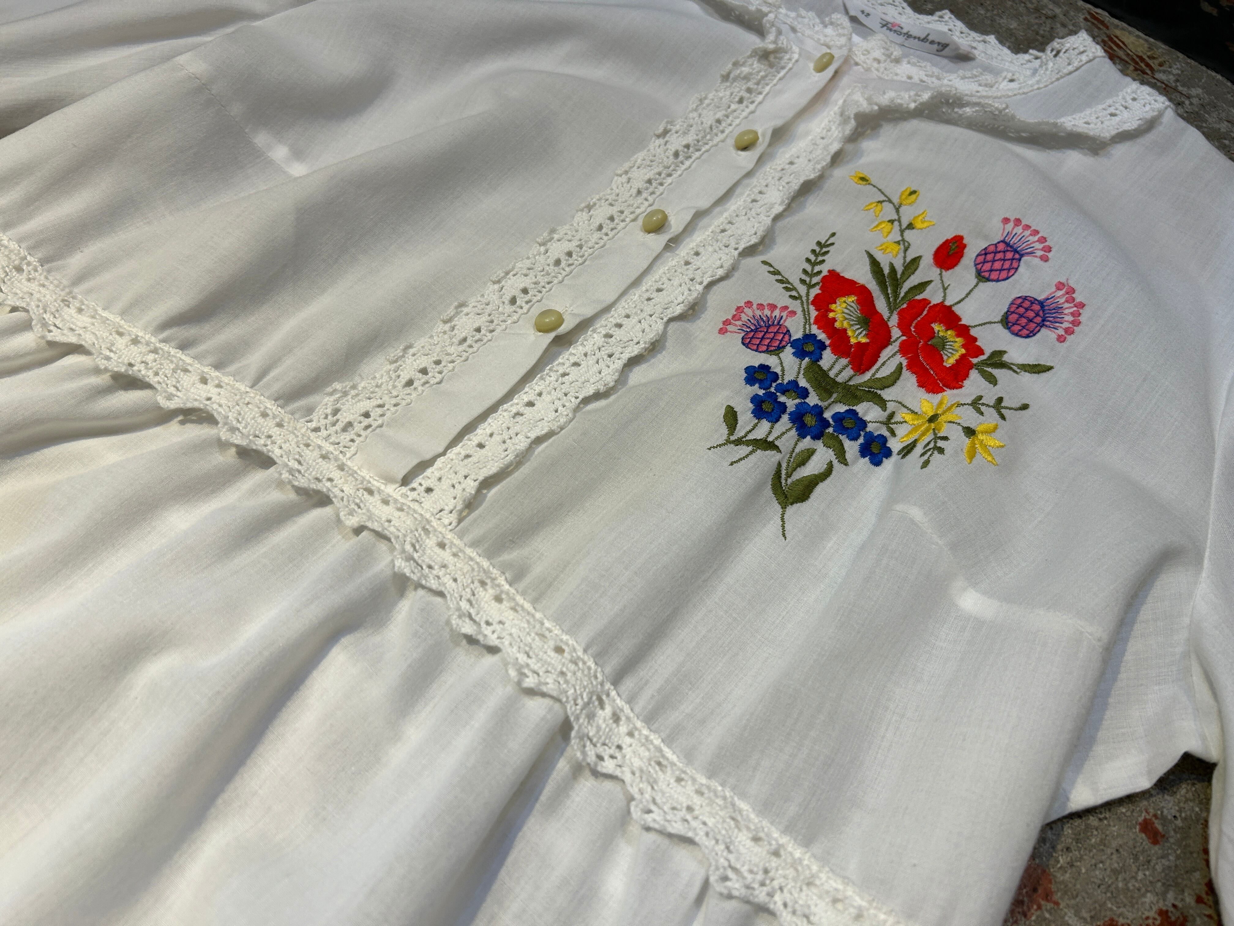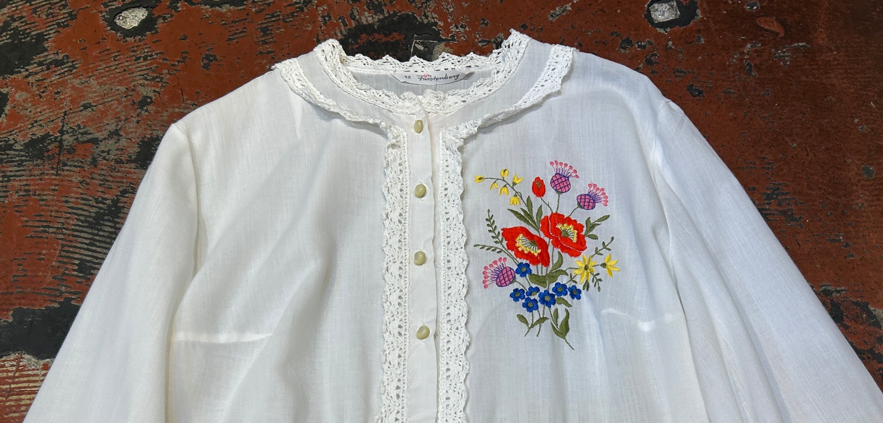 ホワイトレースに胸元の華やかなフラワーの刺繍がアクセントになったアイテム。