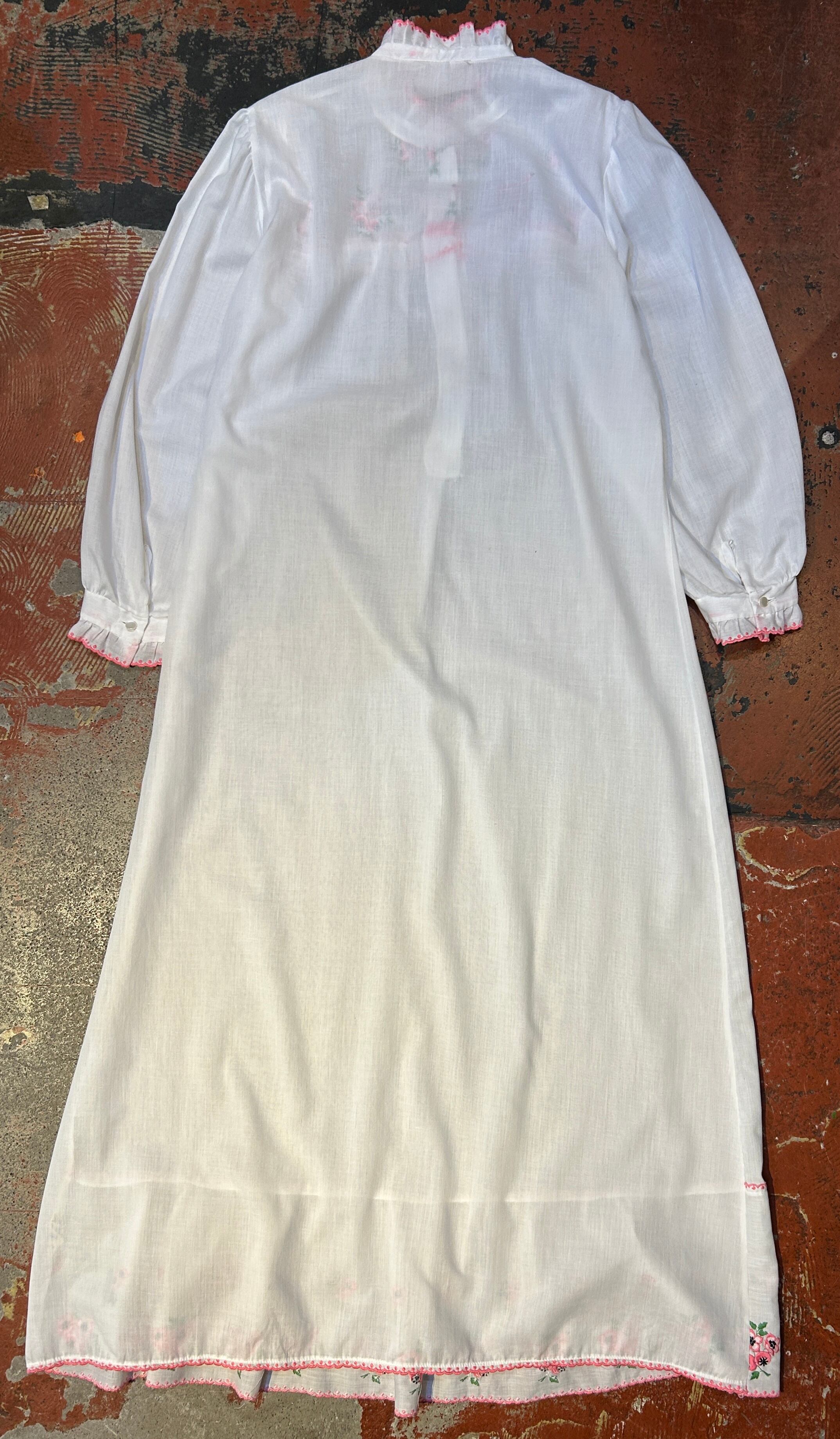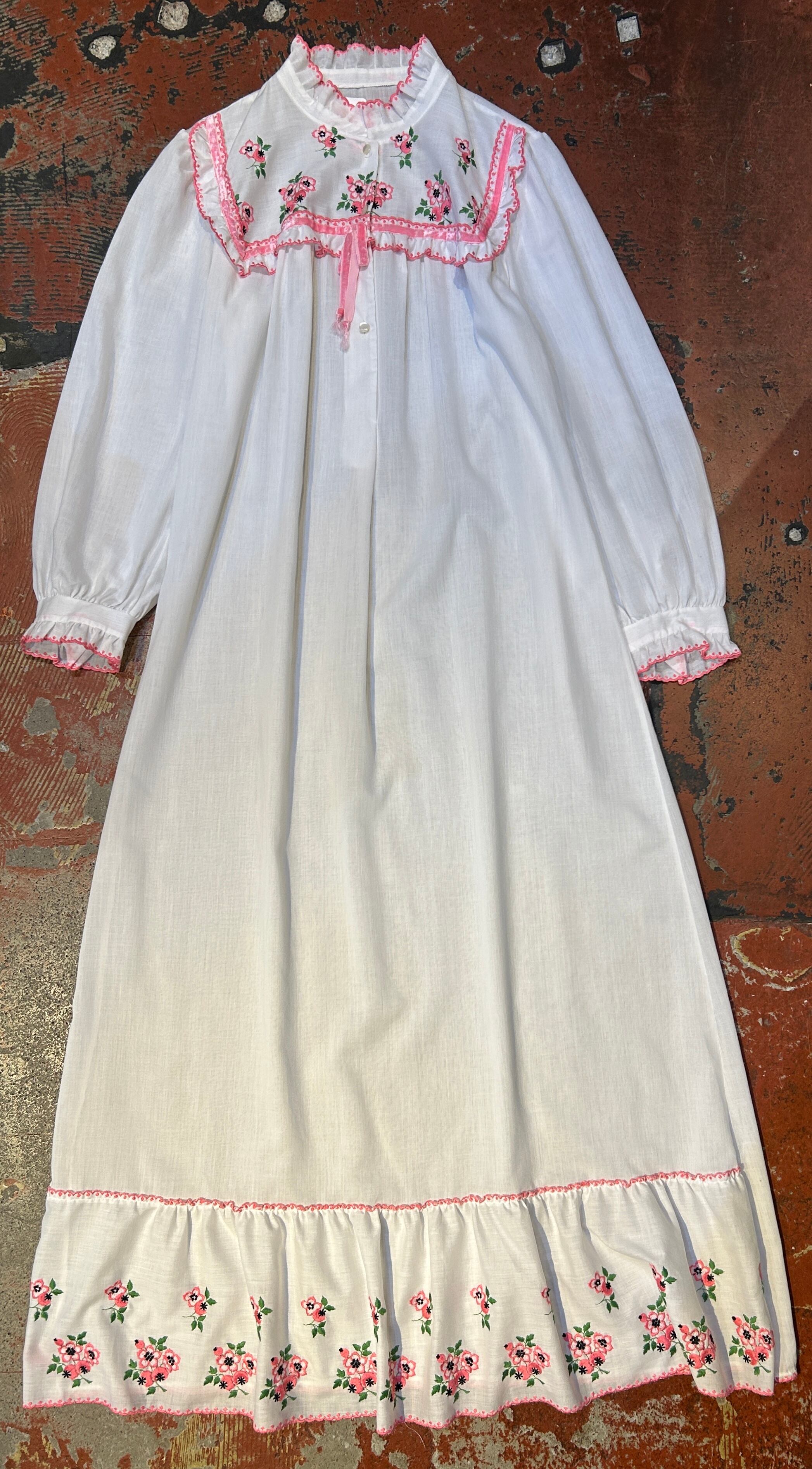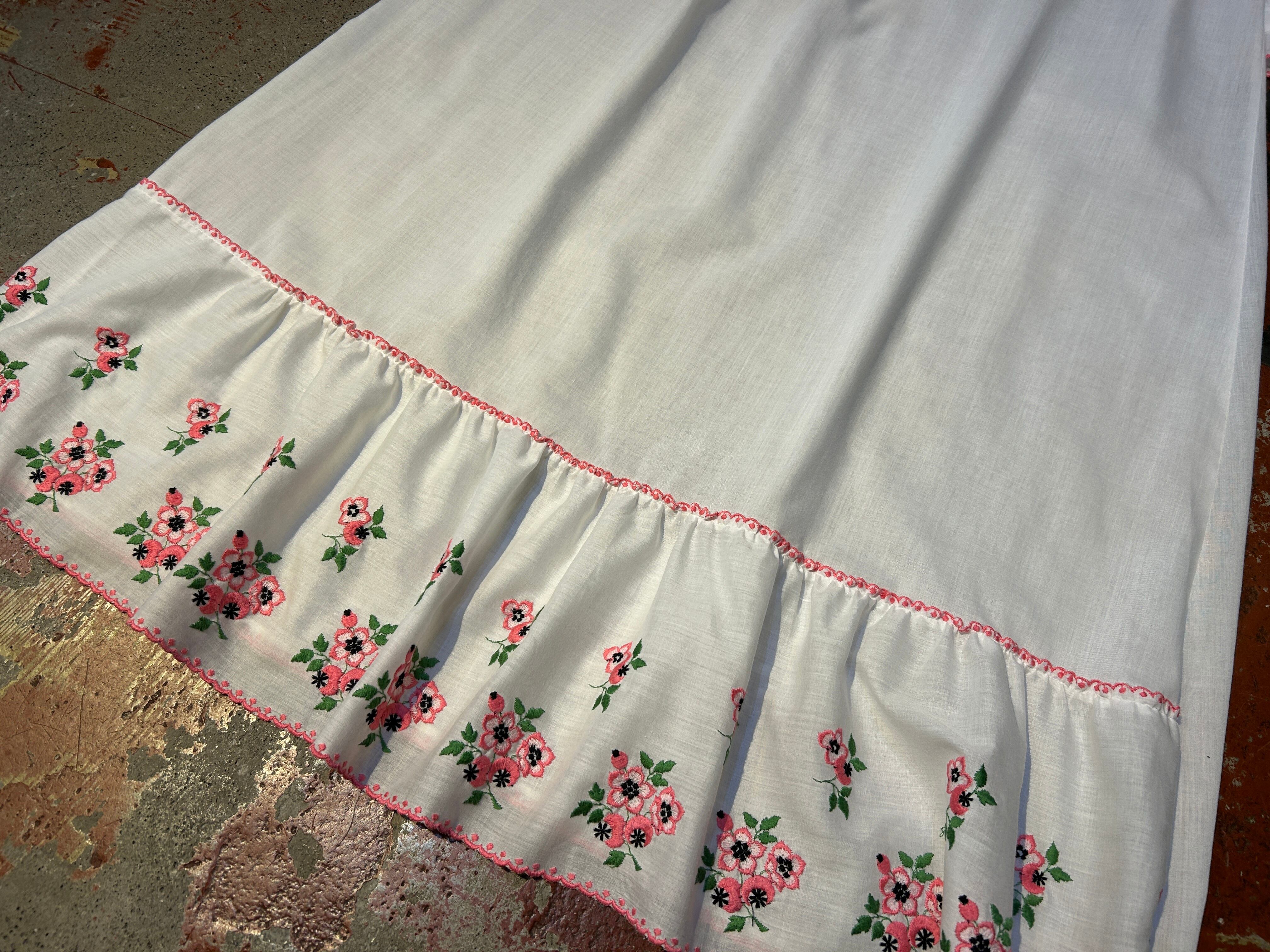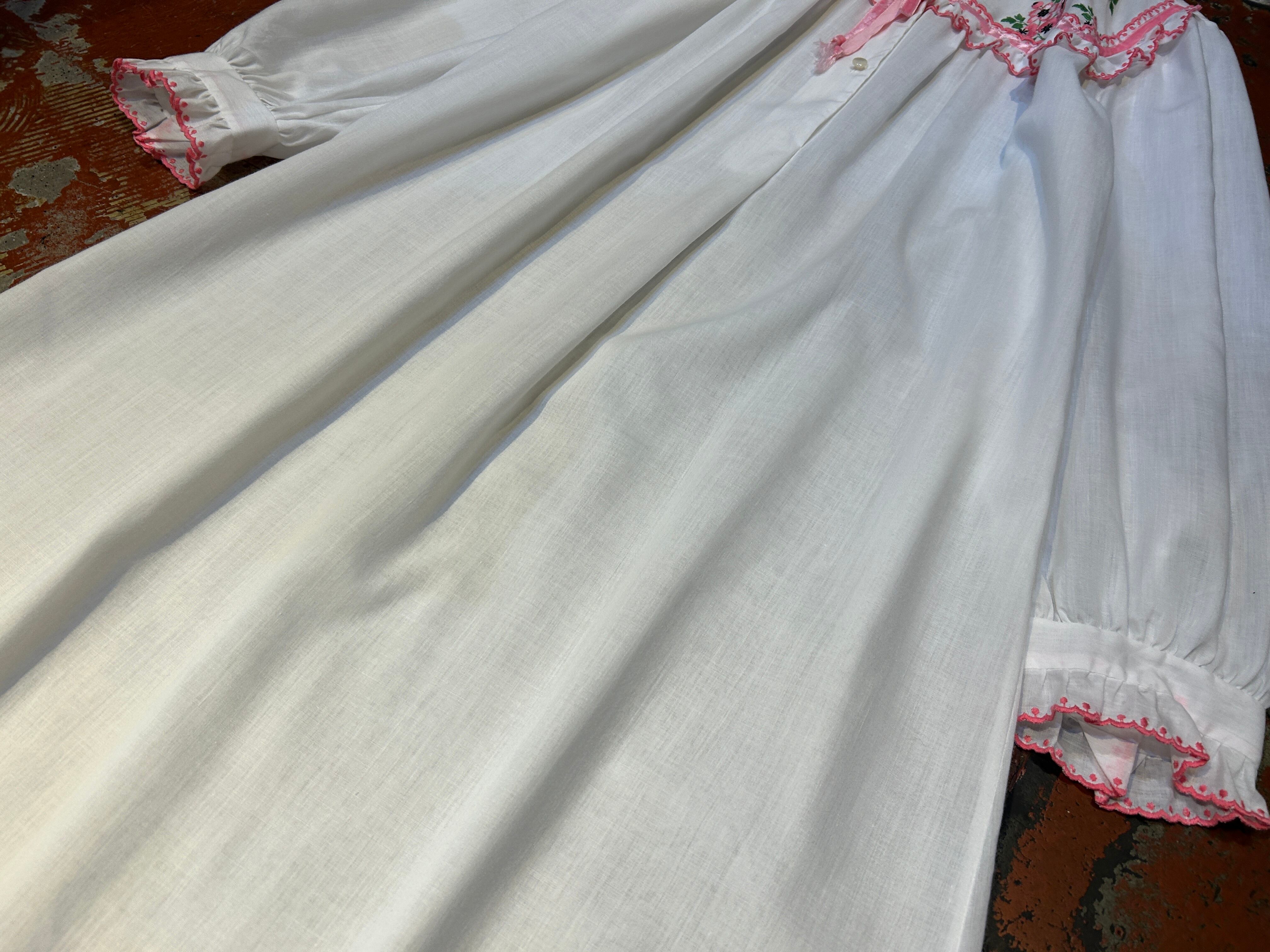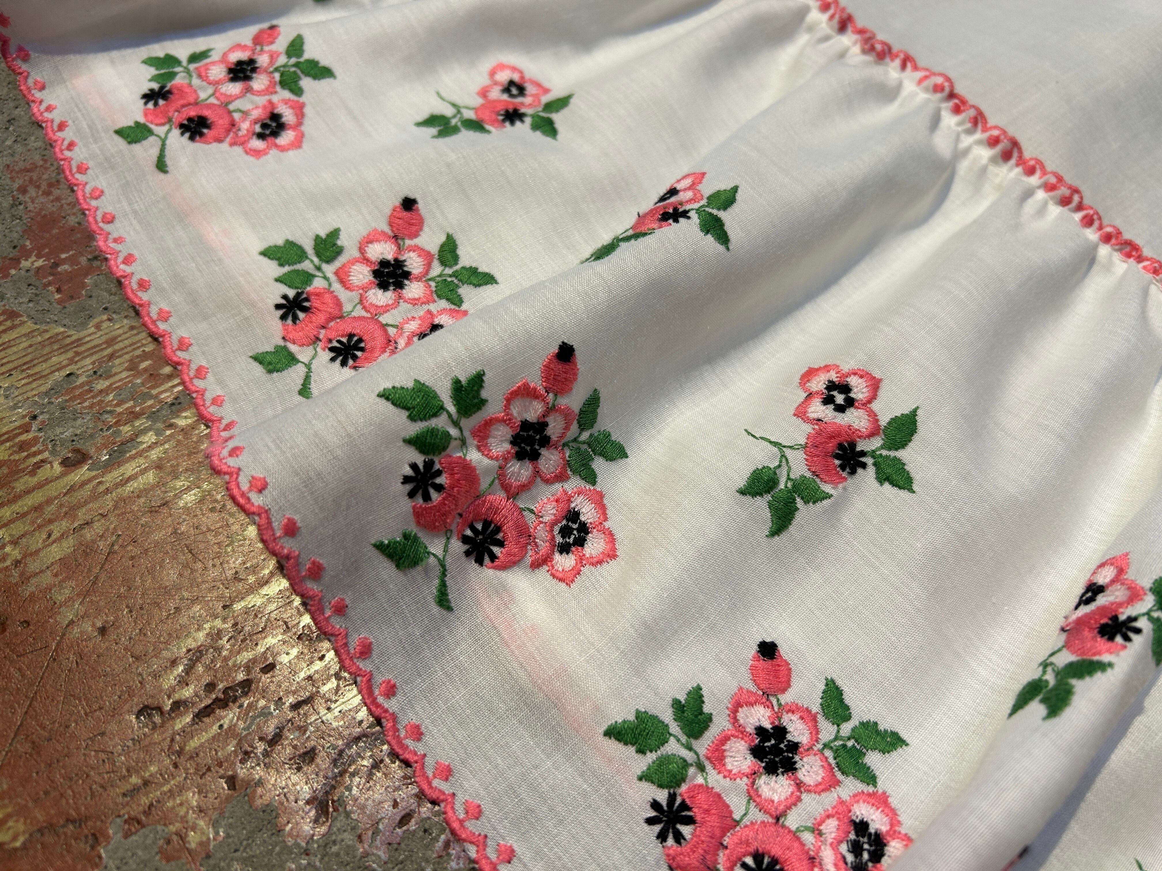 透け感のあるホワイトボディに、ピンクのフラワー刺繍とフリル、ベロアのリボンが可愛らしいアイテム。