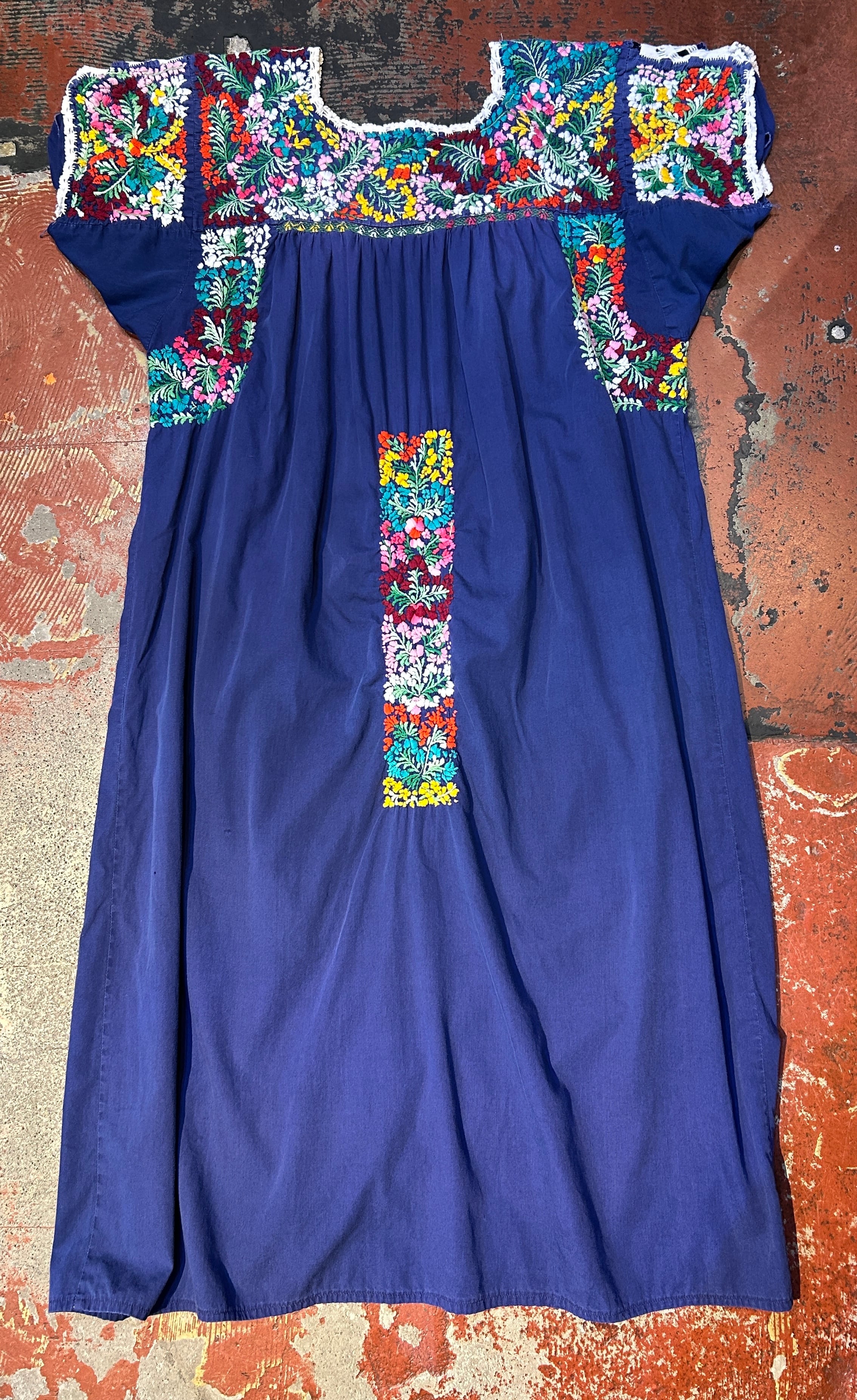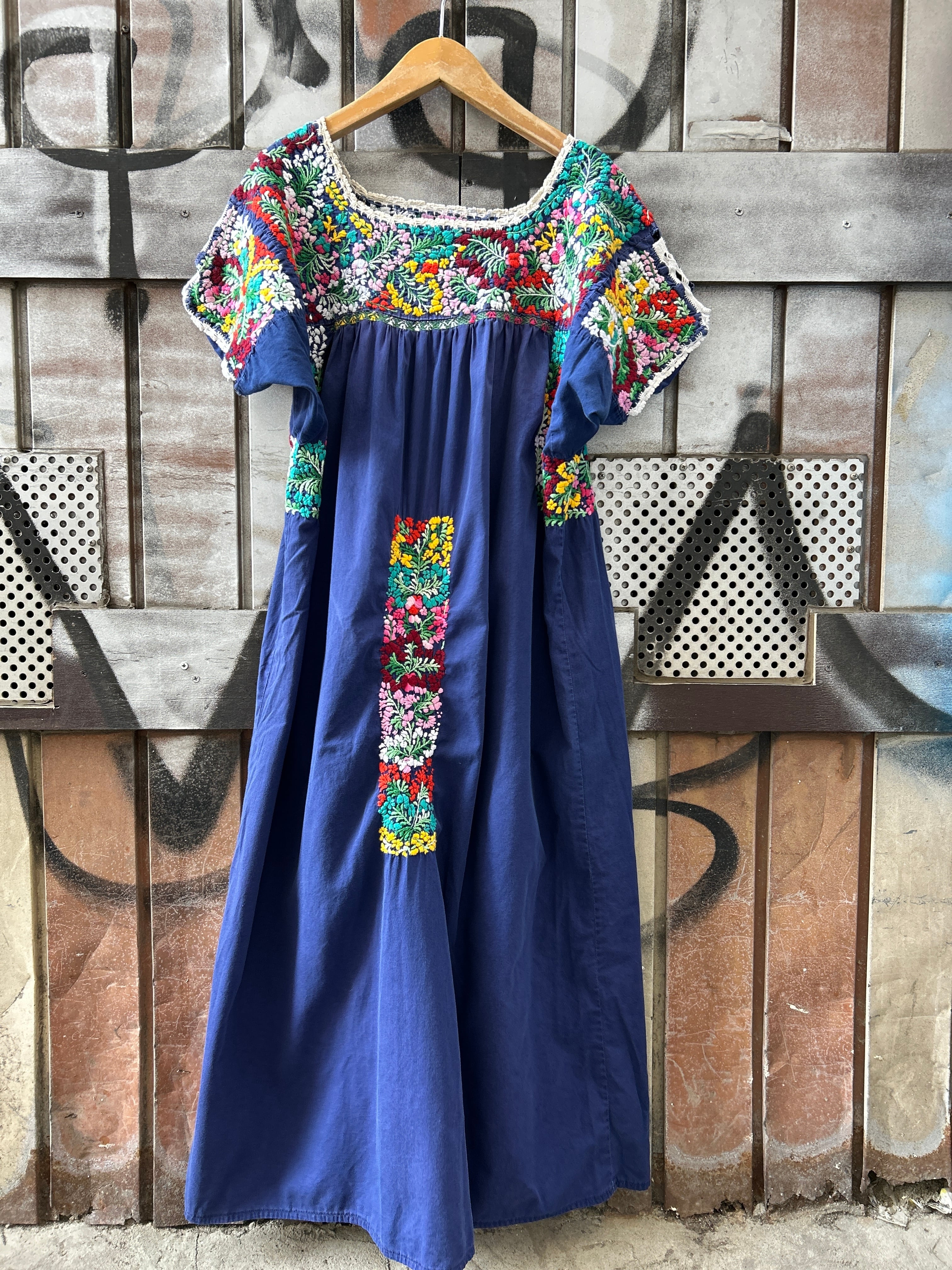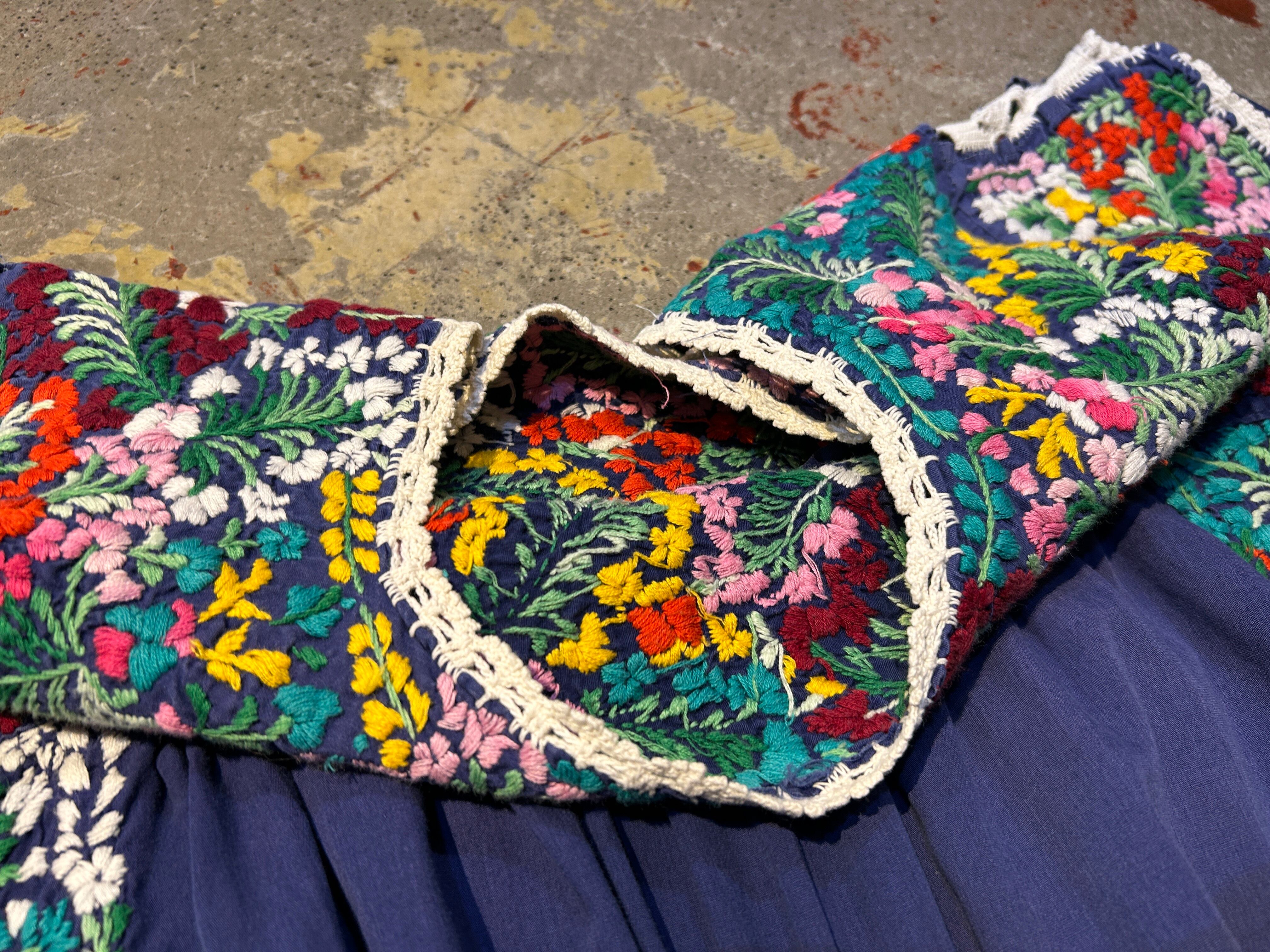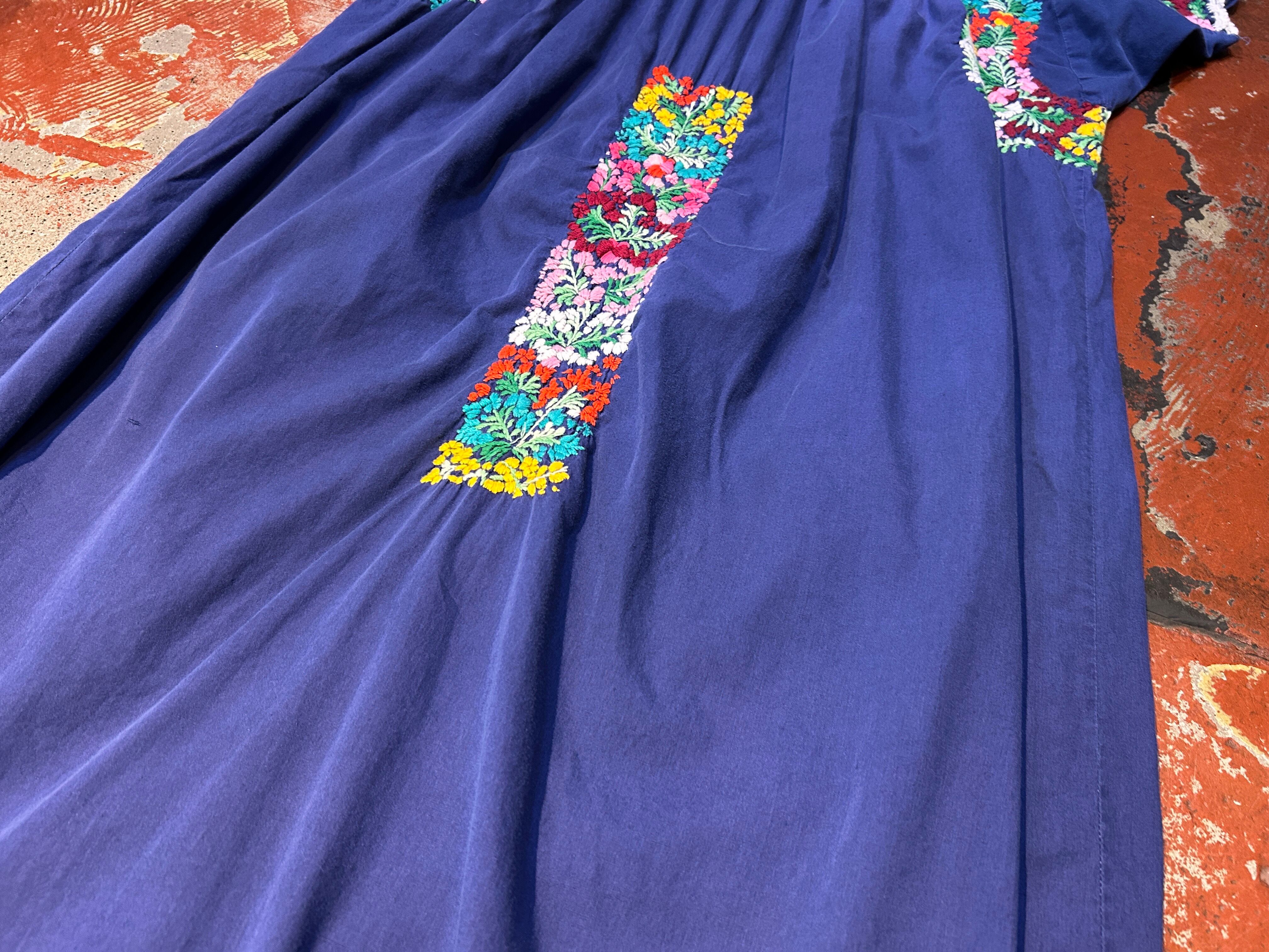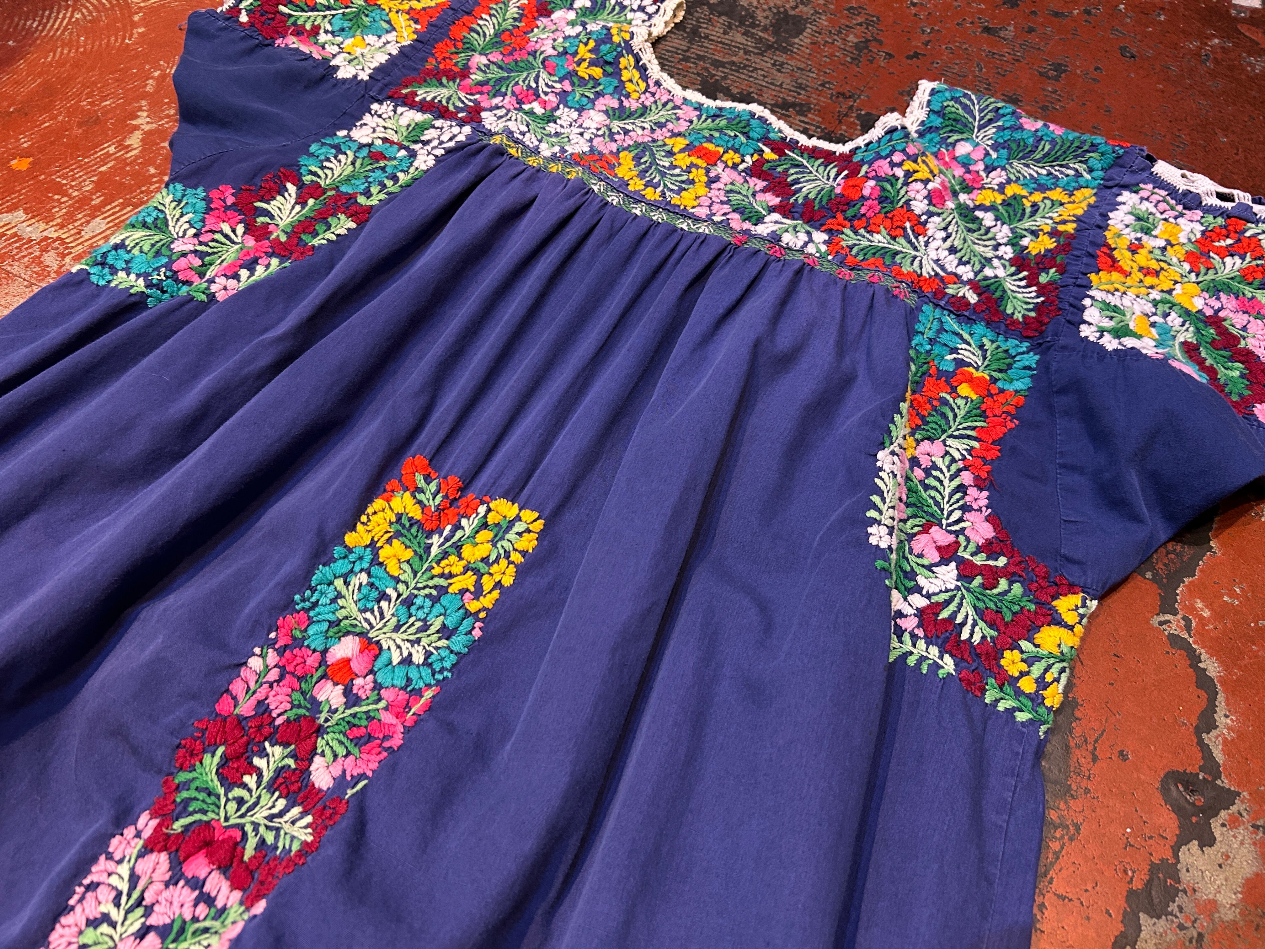 深い青紫のボディにぎっしりと施された見事な刺繍はカラフルで、ボディとのコントラストが秀逸なアイテムです。