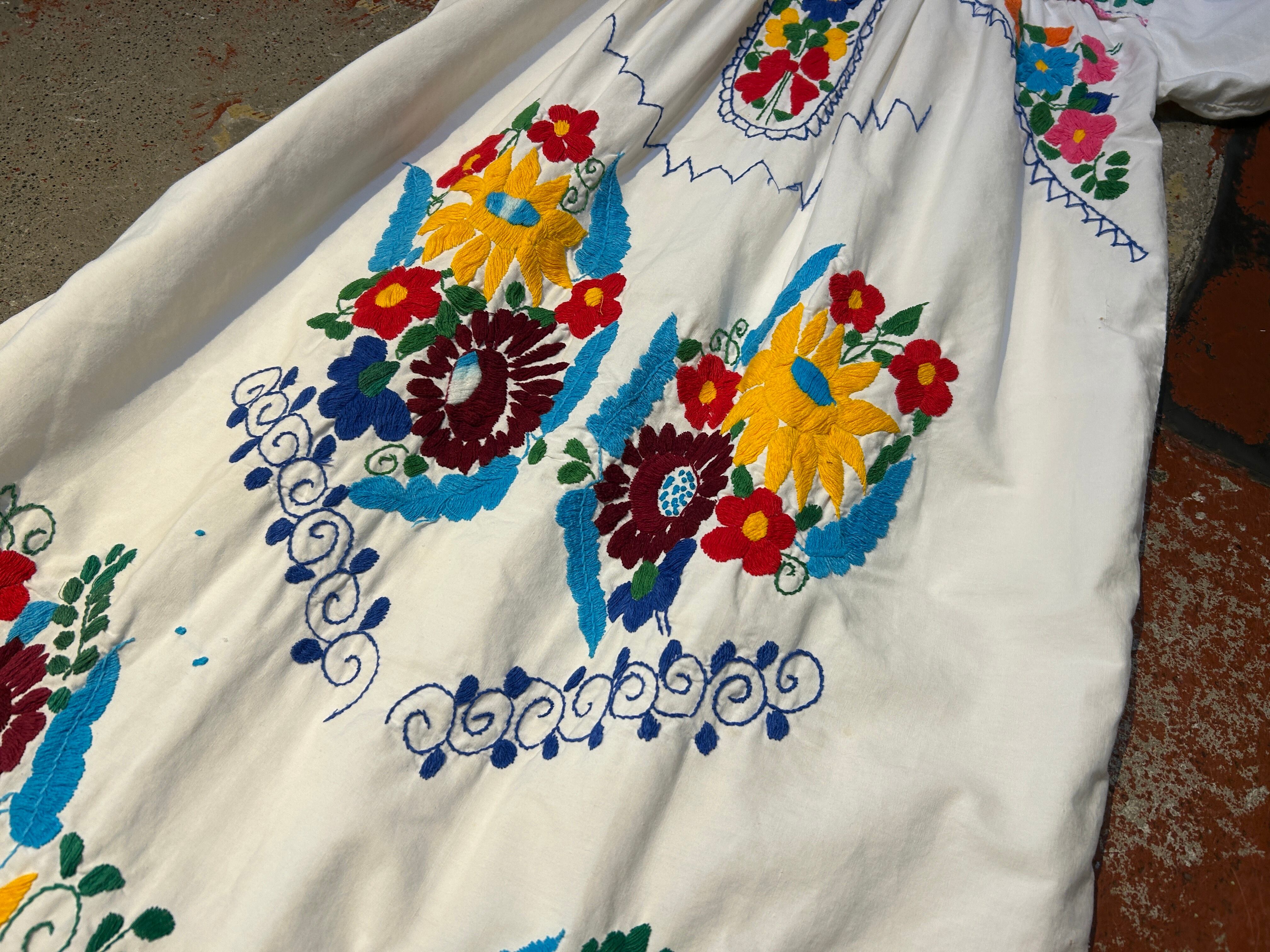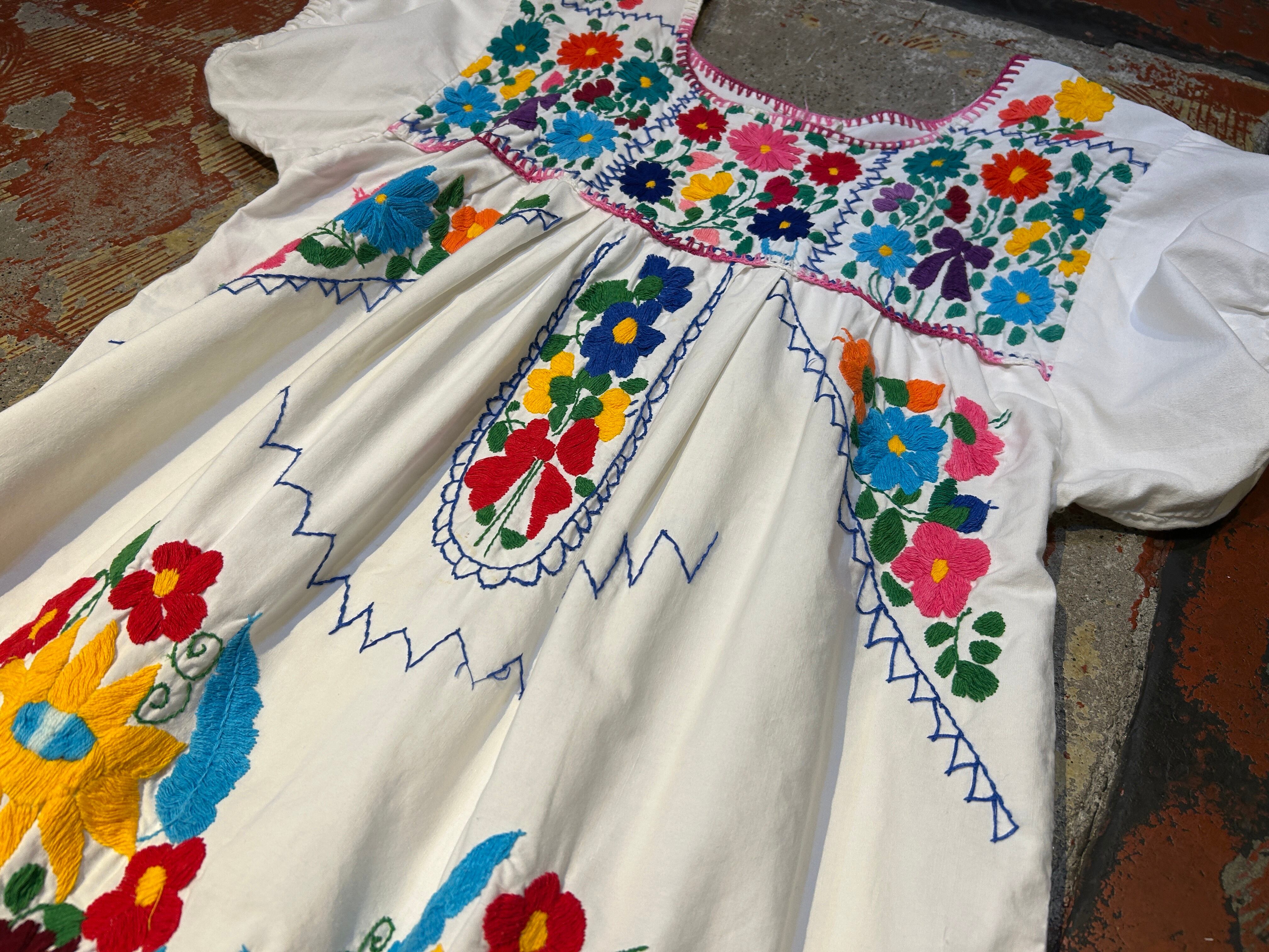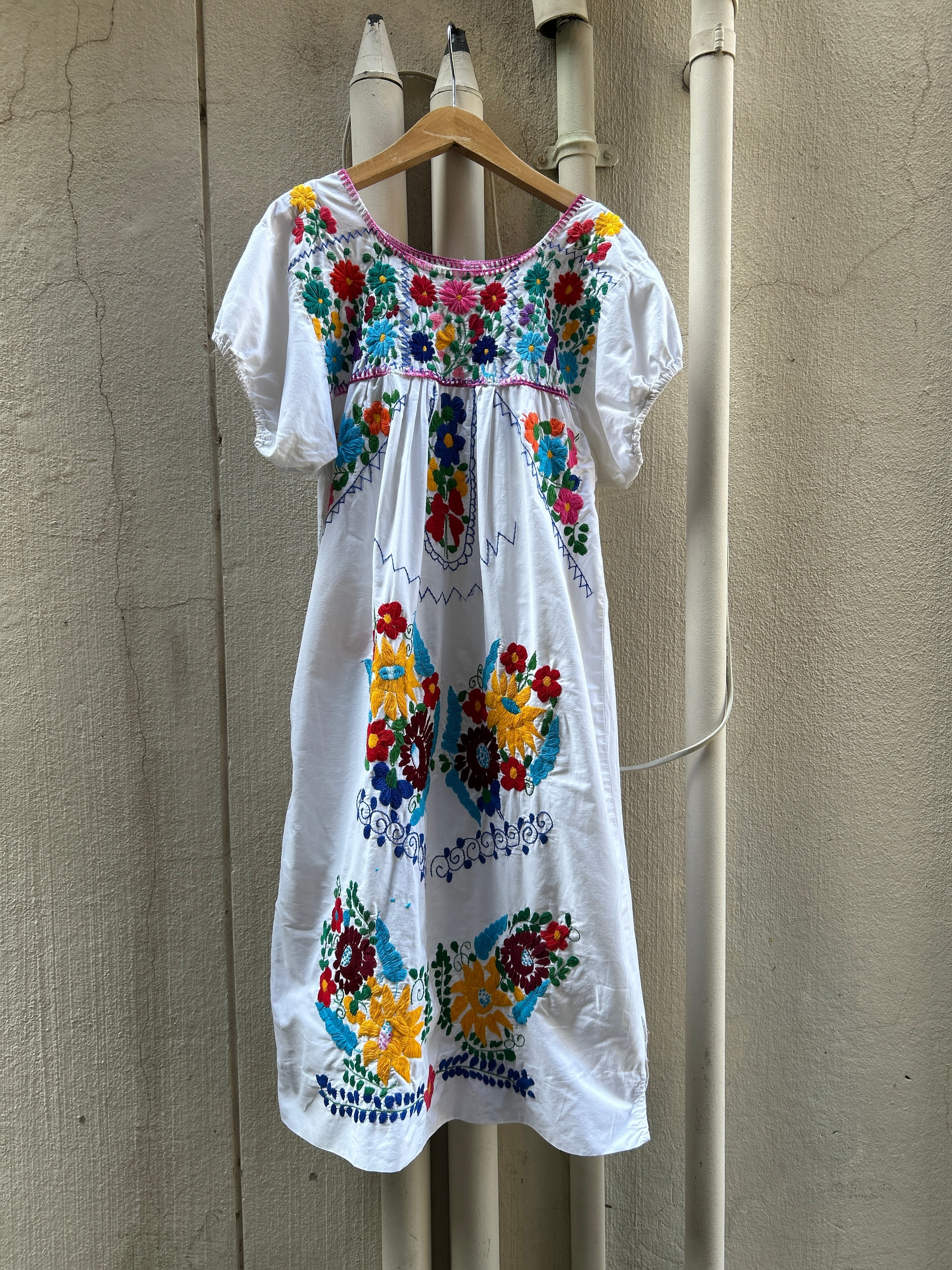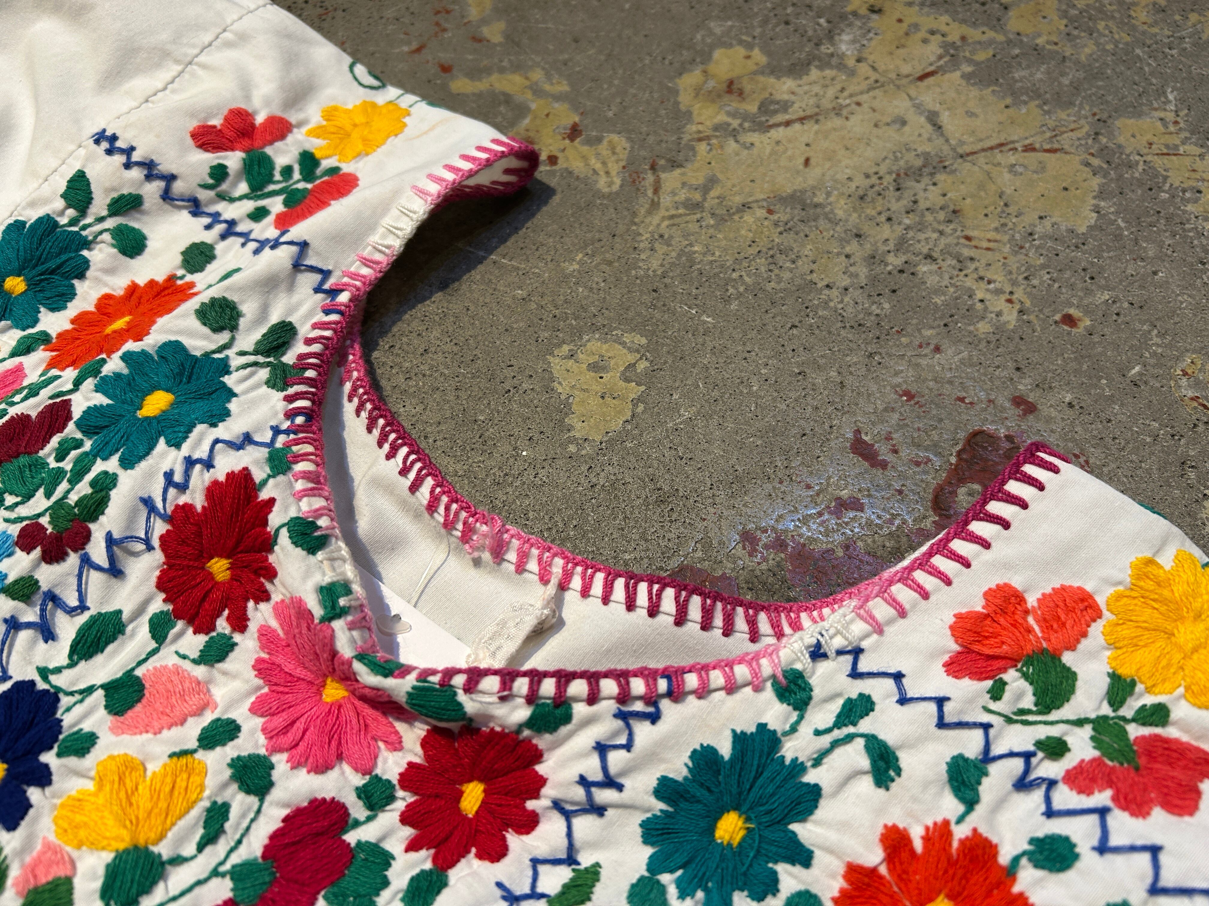 カラフルな刺繍が映え一枚で決まるビンテージドレス。