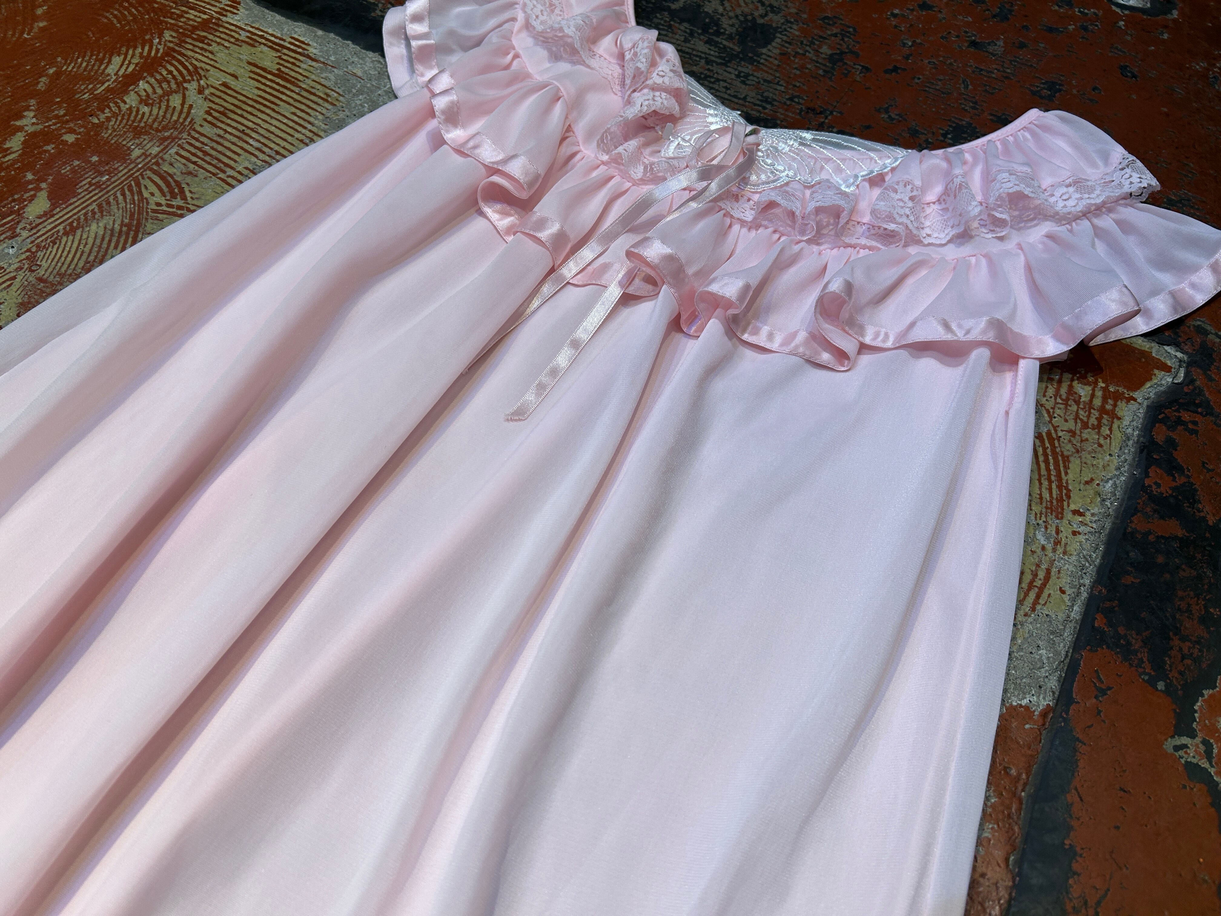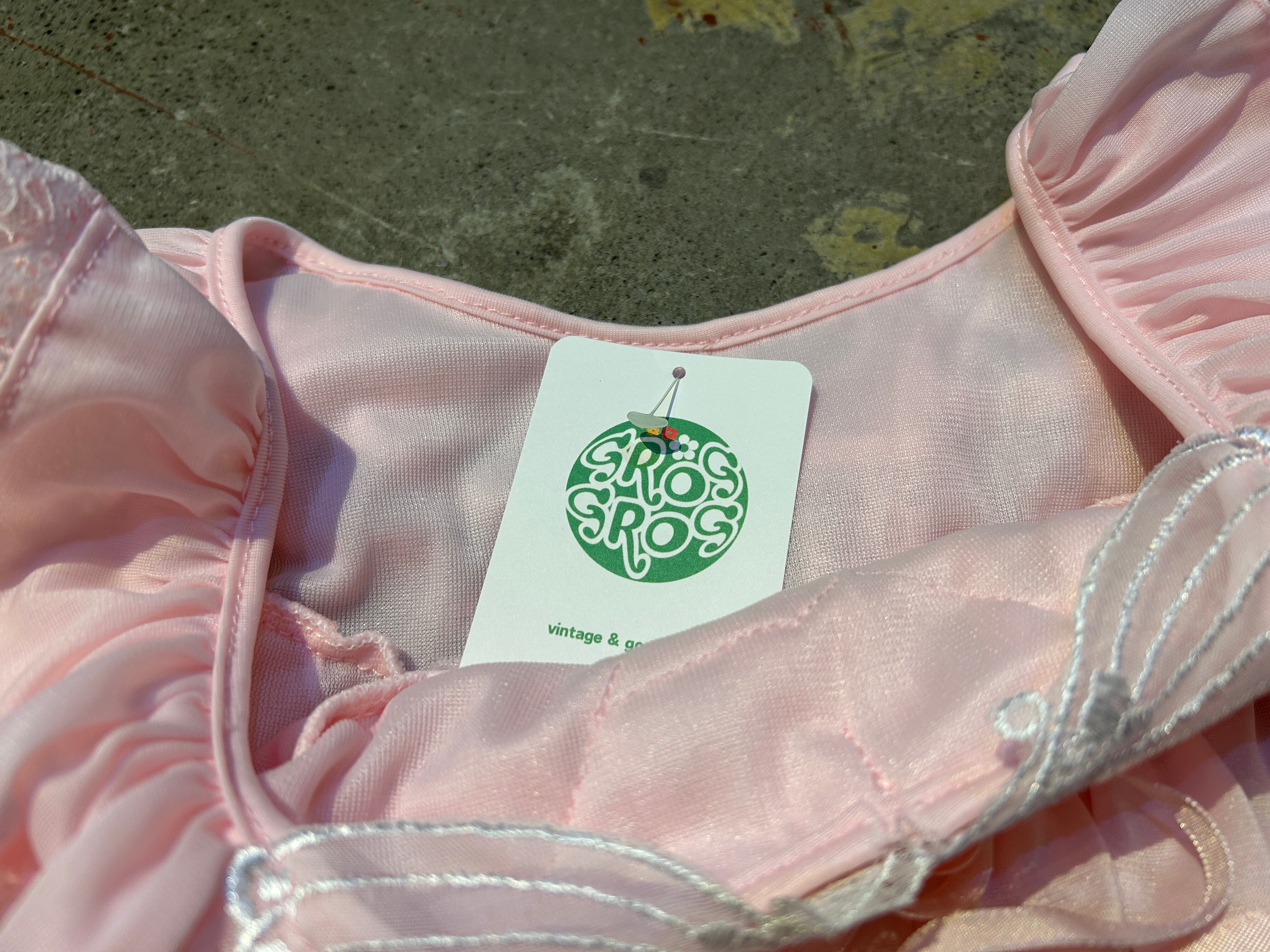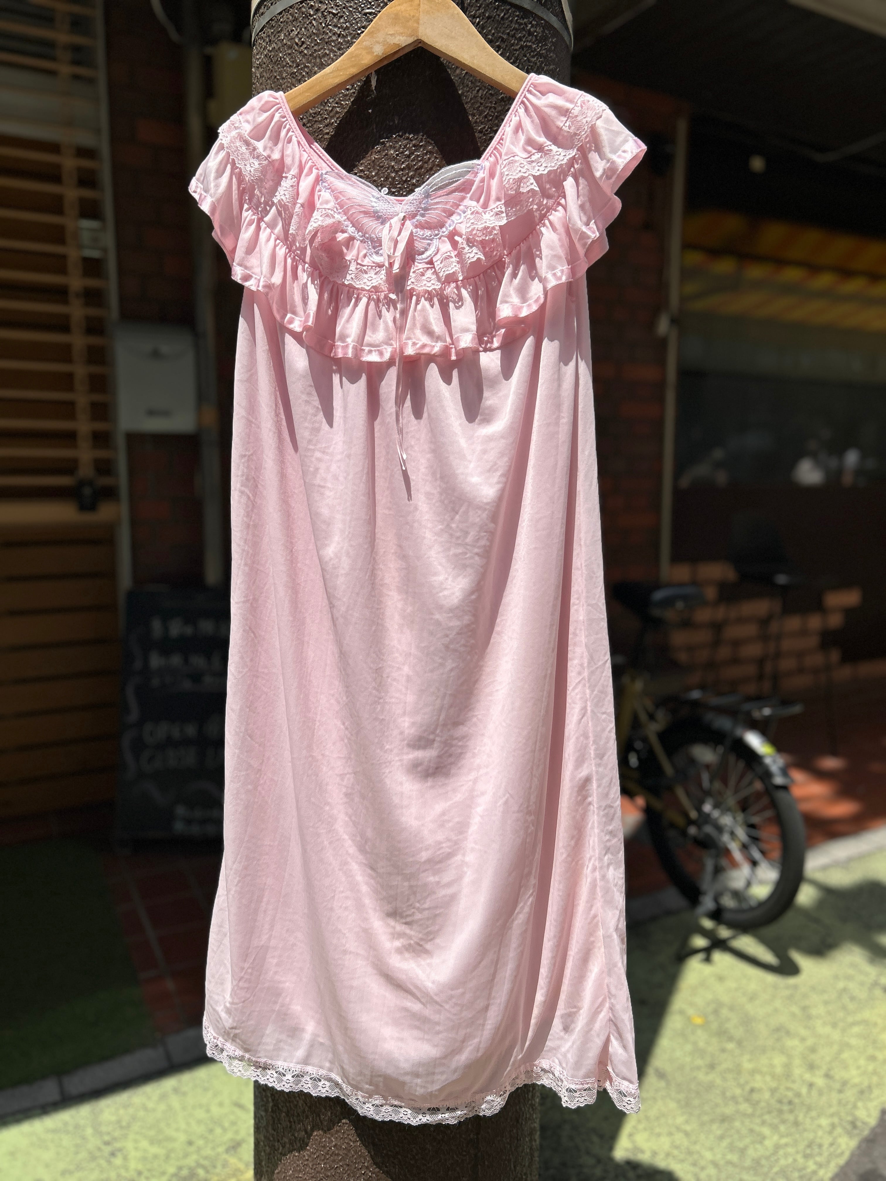 size:表記不明 肩幅38cm、身幅46cm、袖丈7cm(フリル部分)、着丈104cm(肩上から採寸)