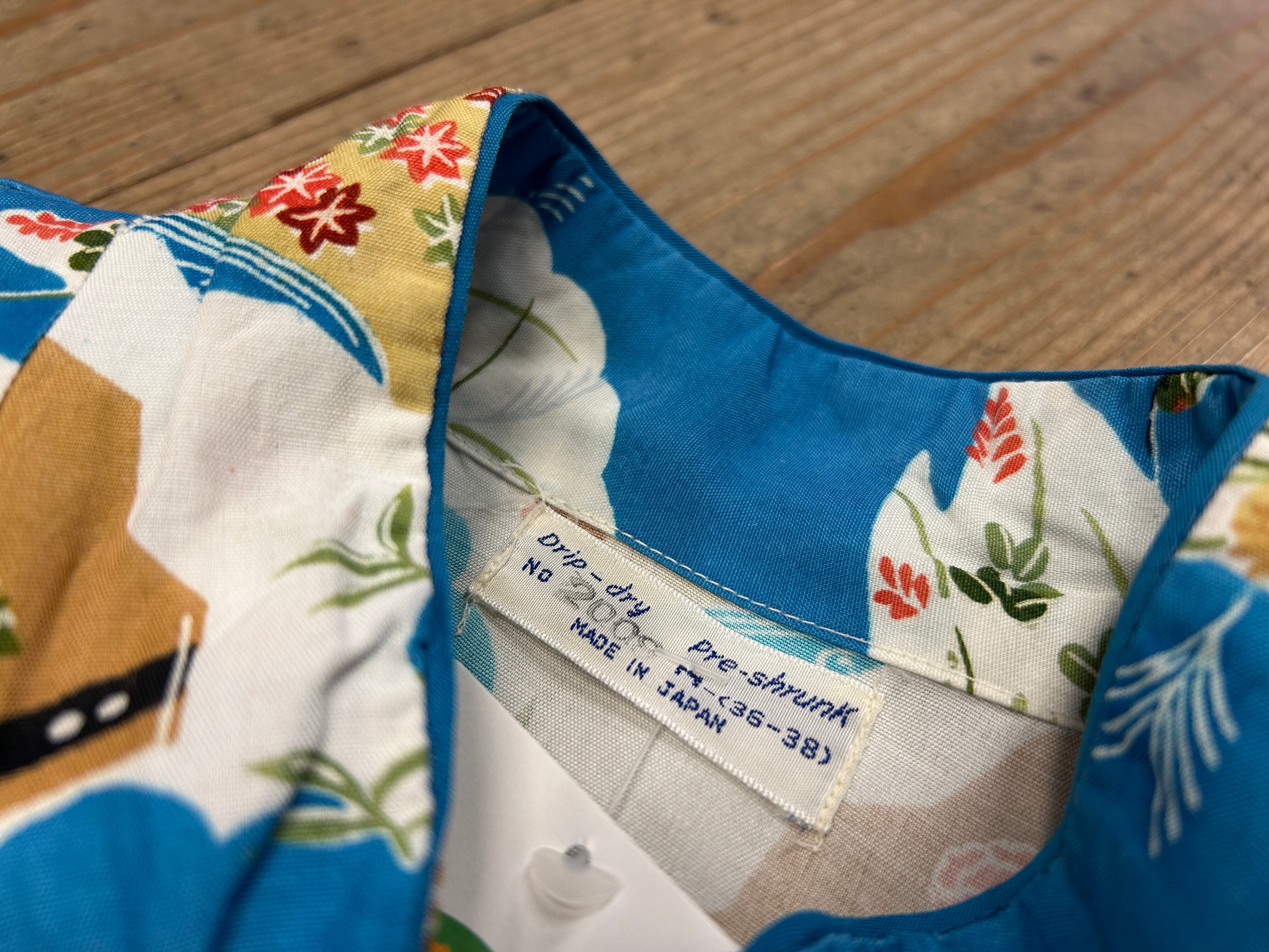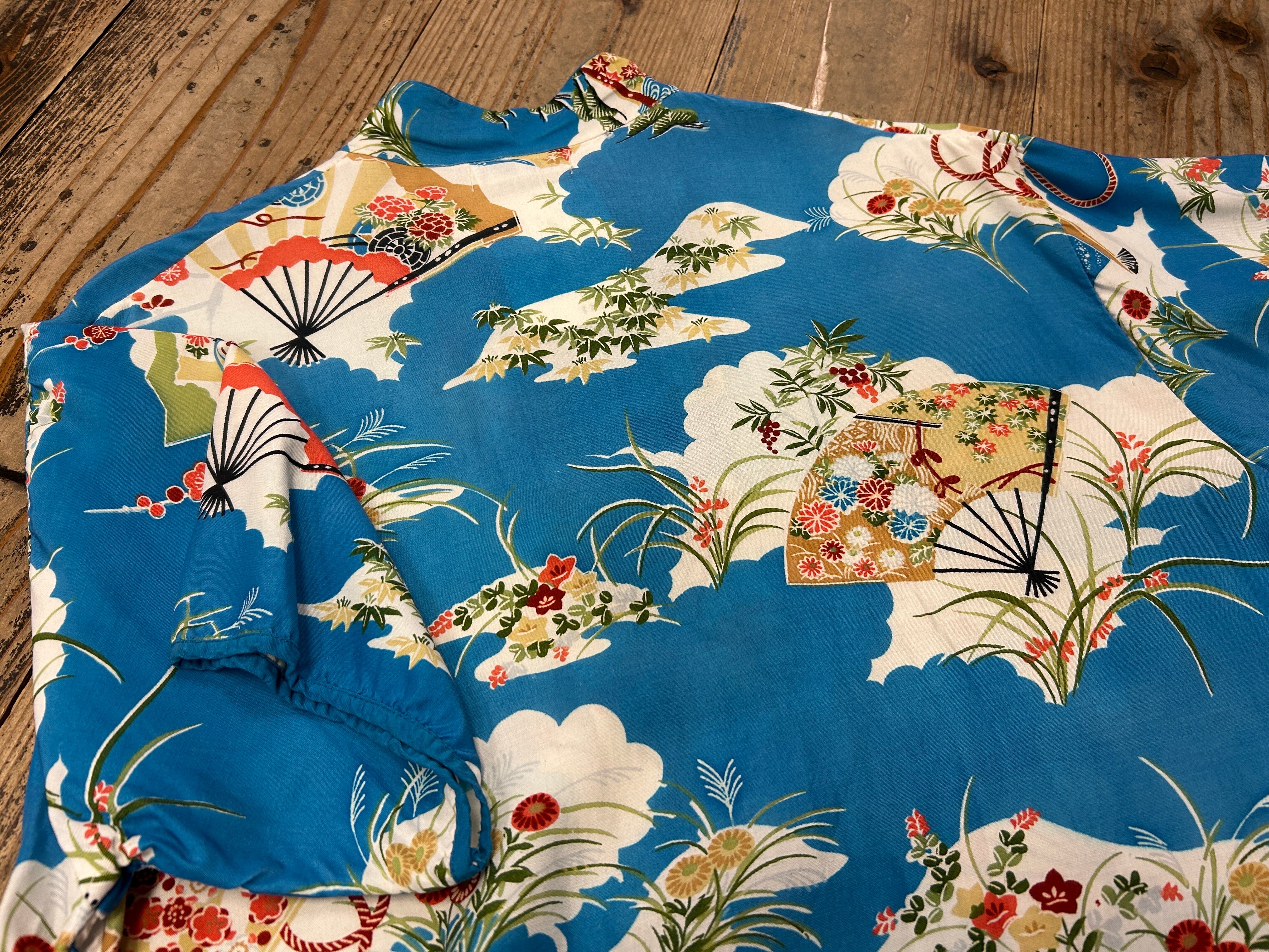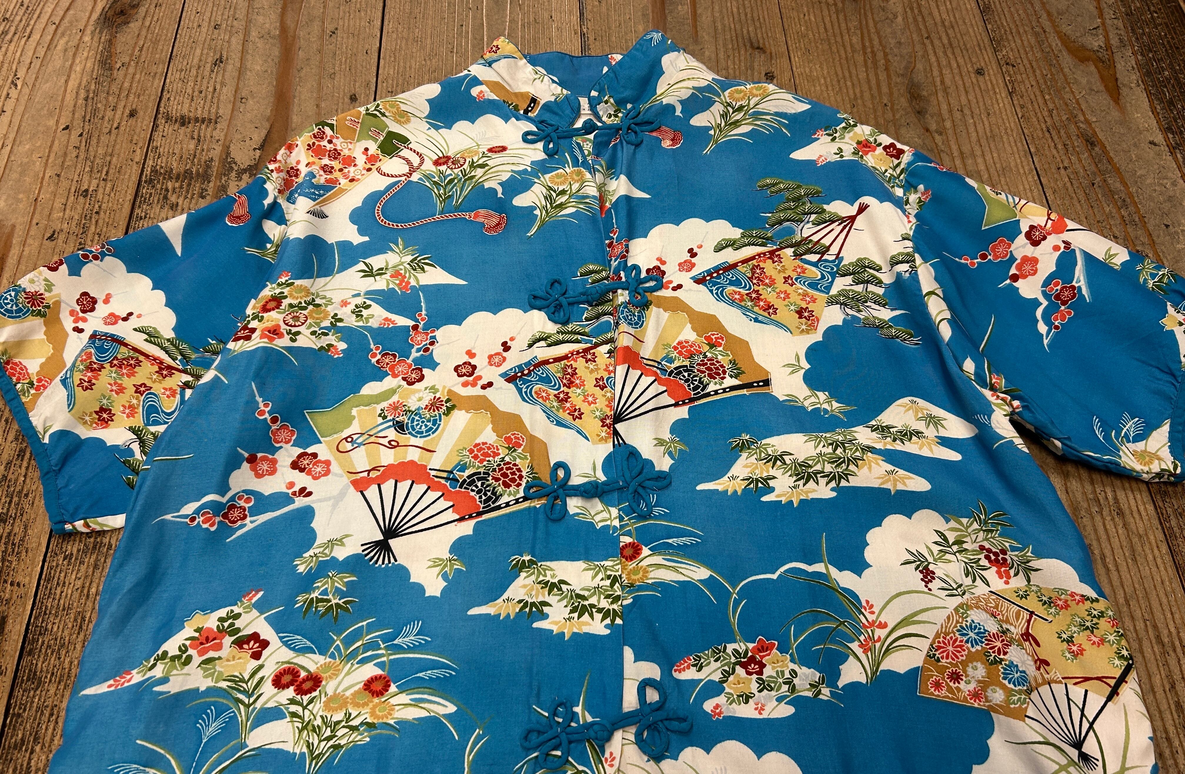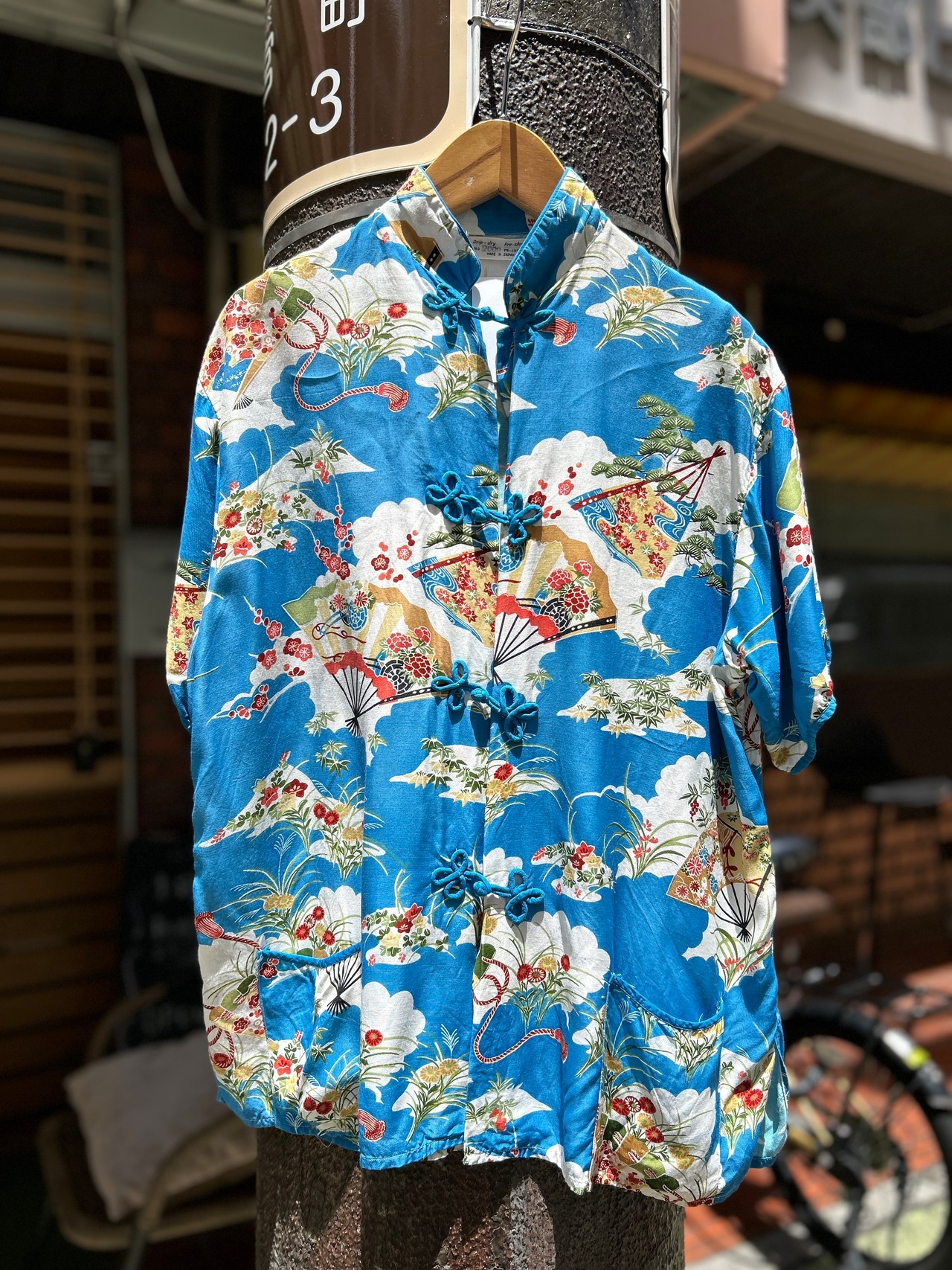 サラサラと滑らかなレーヨンかと思う素材感ですが、プリシュランク加工が施されているので恐らくコットン素材のビンテージチャイナシャツ。