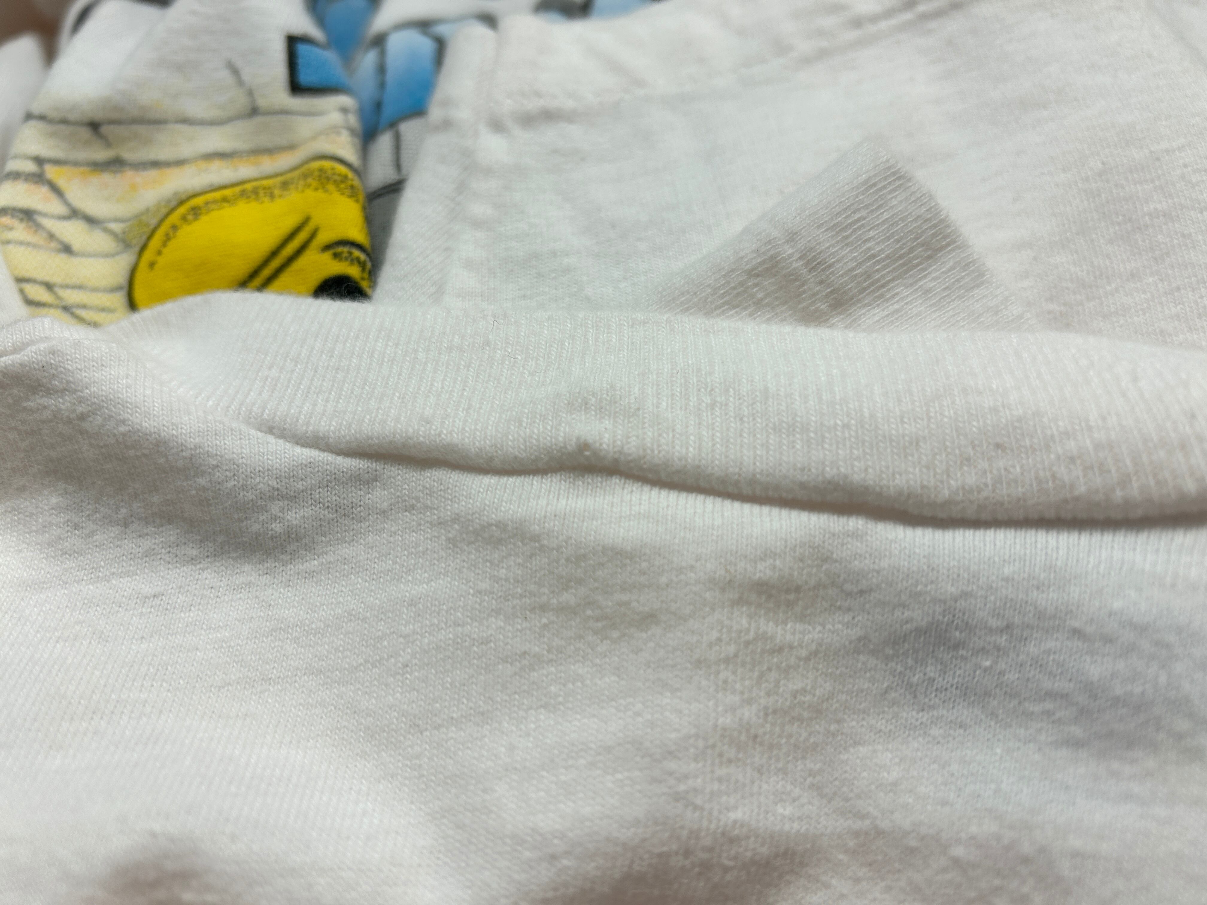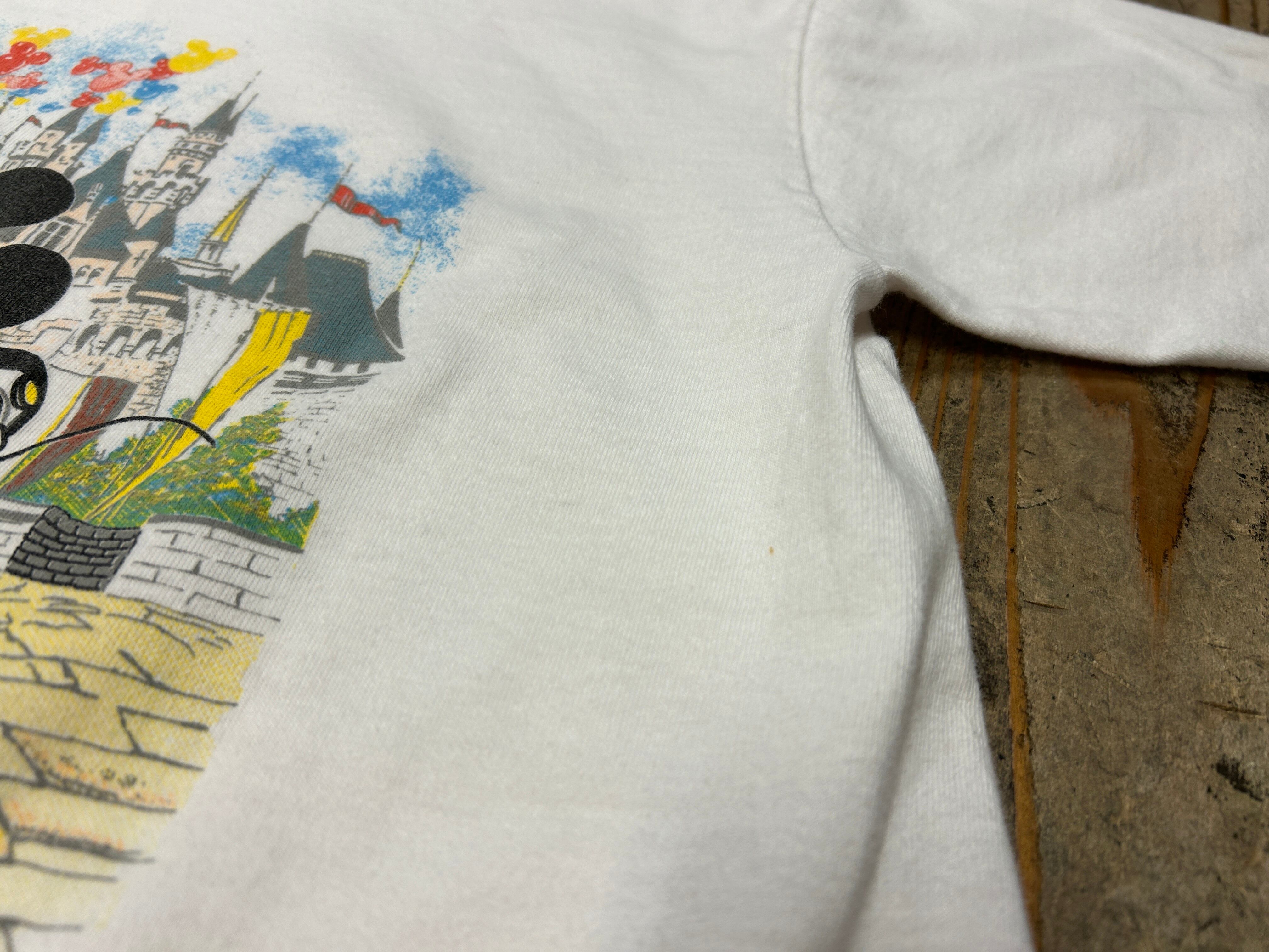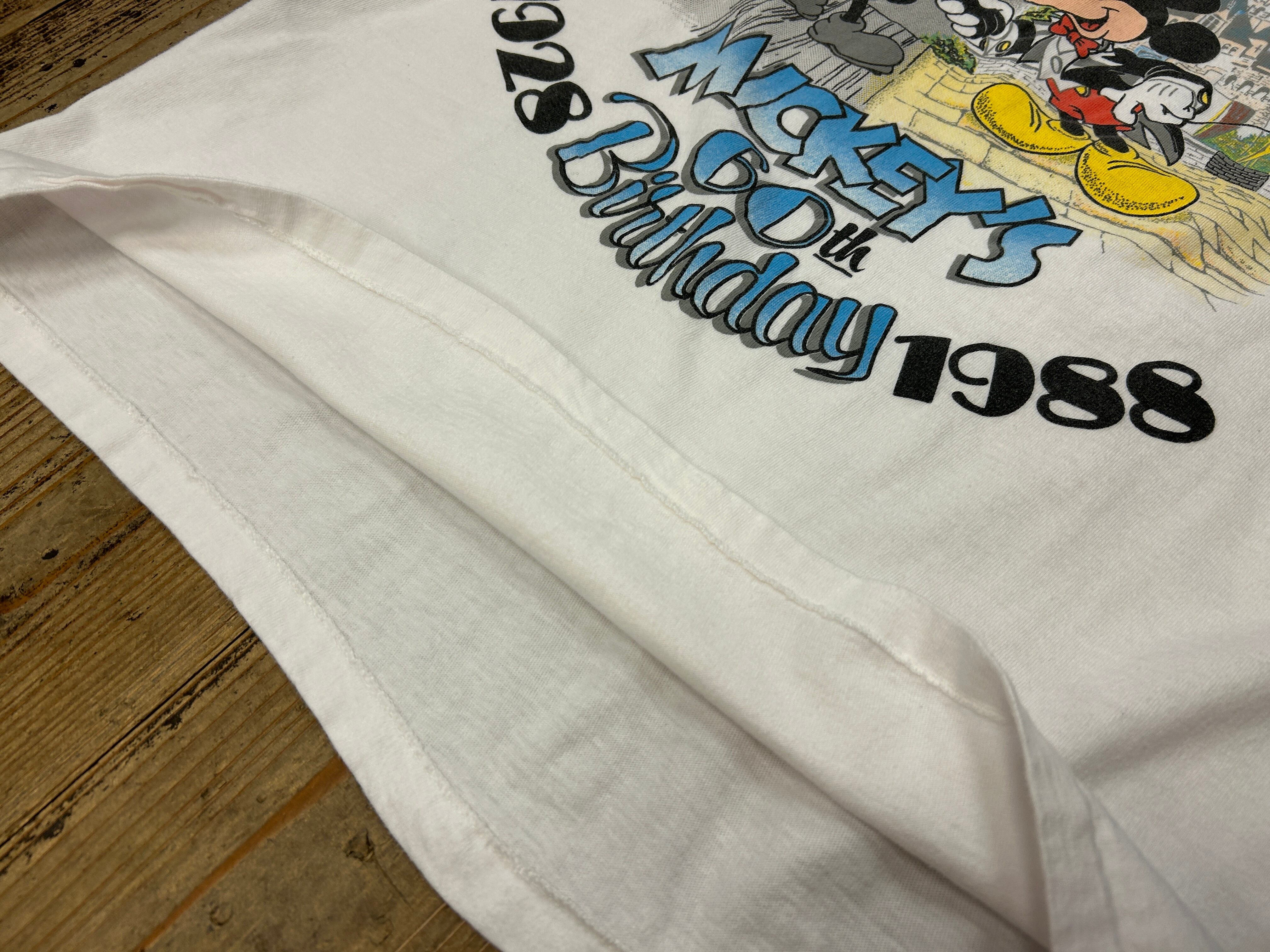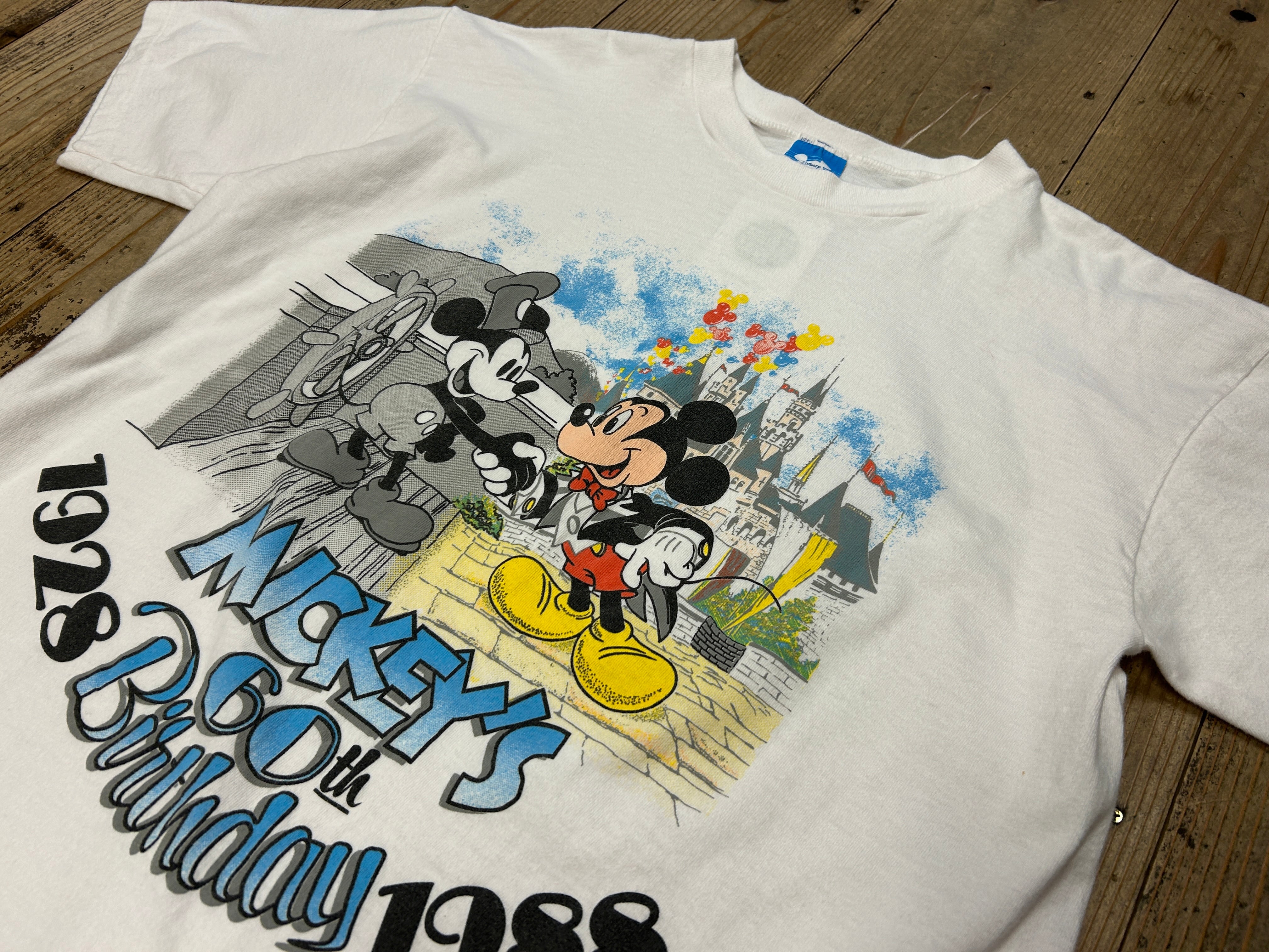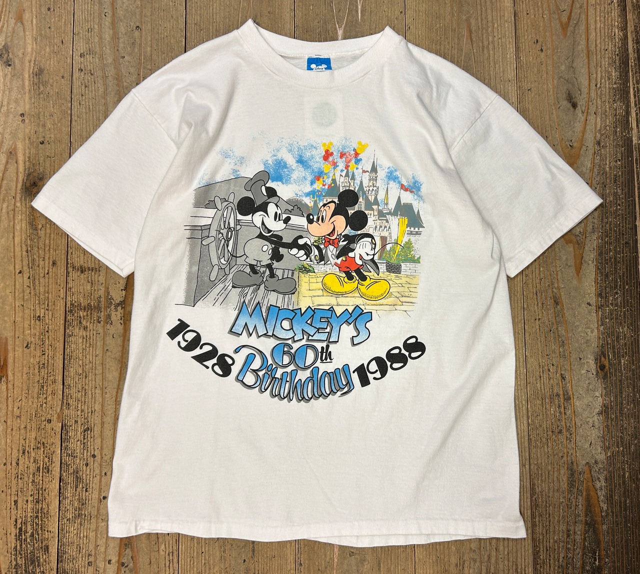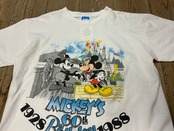 ホワイトボディに80年代のミッキーと20年代のミッキーが握手をしているグッドプリント。