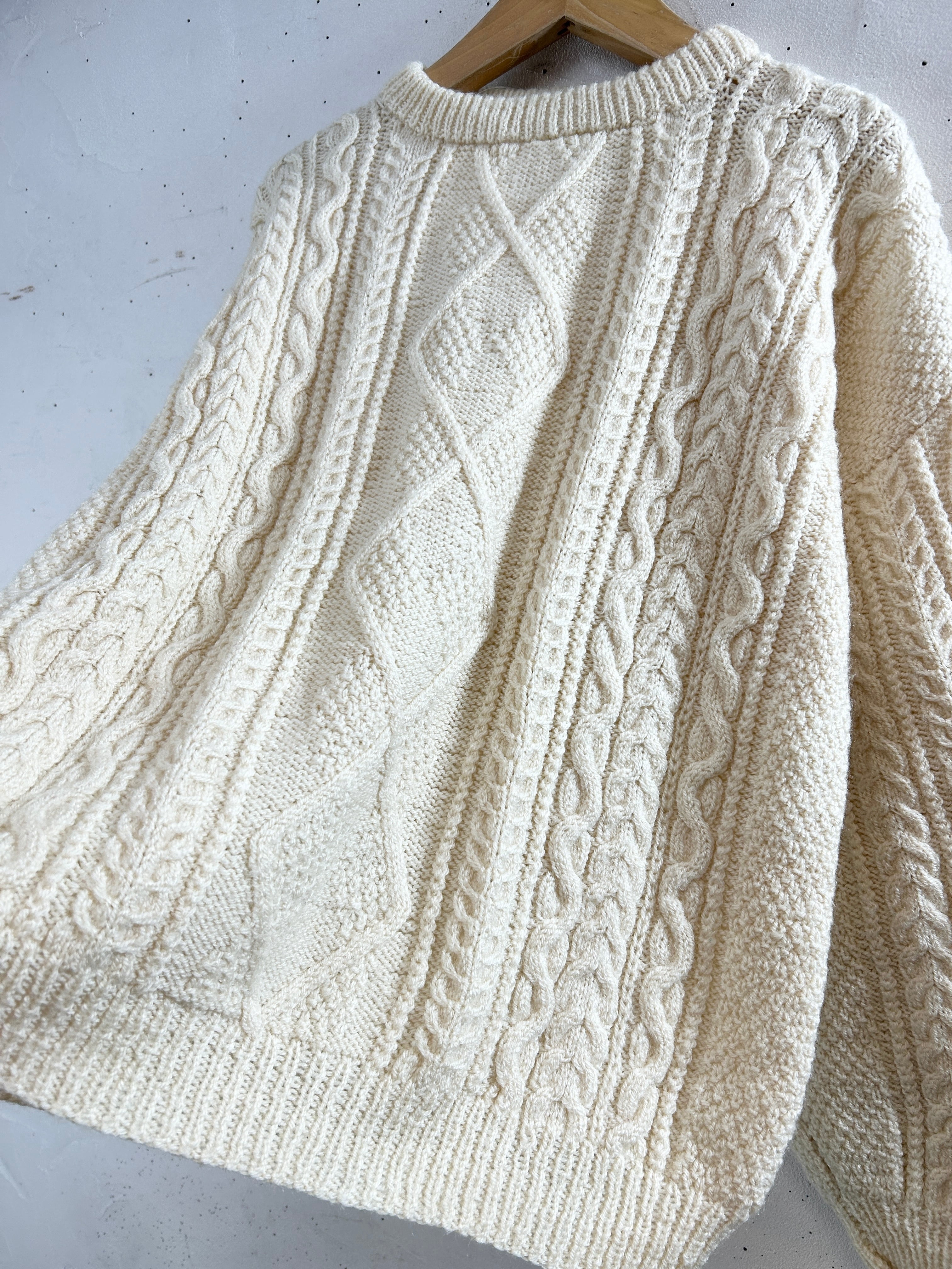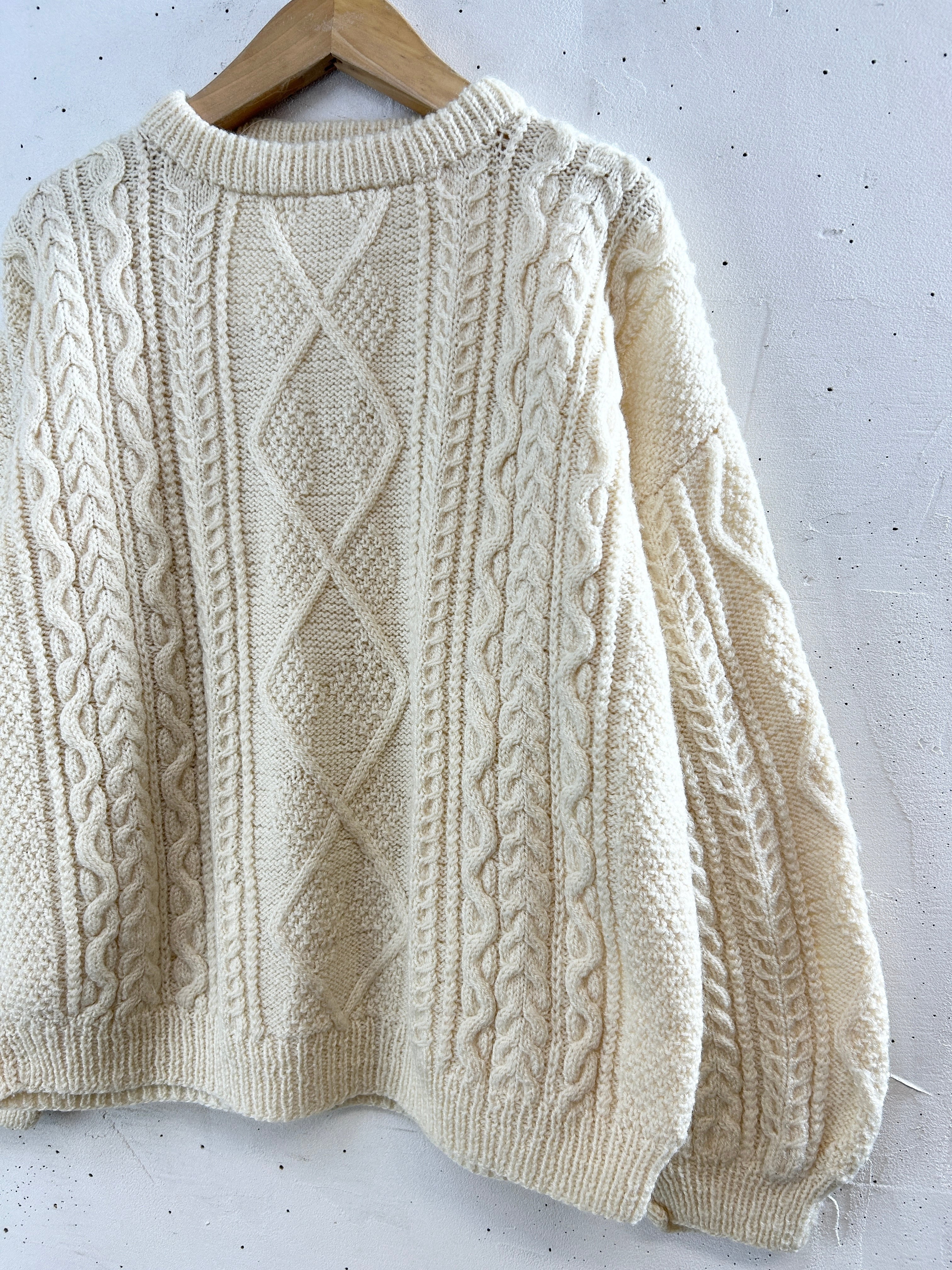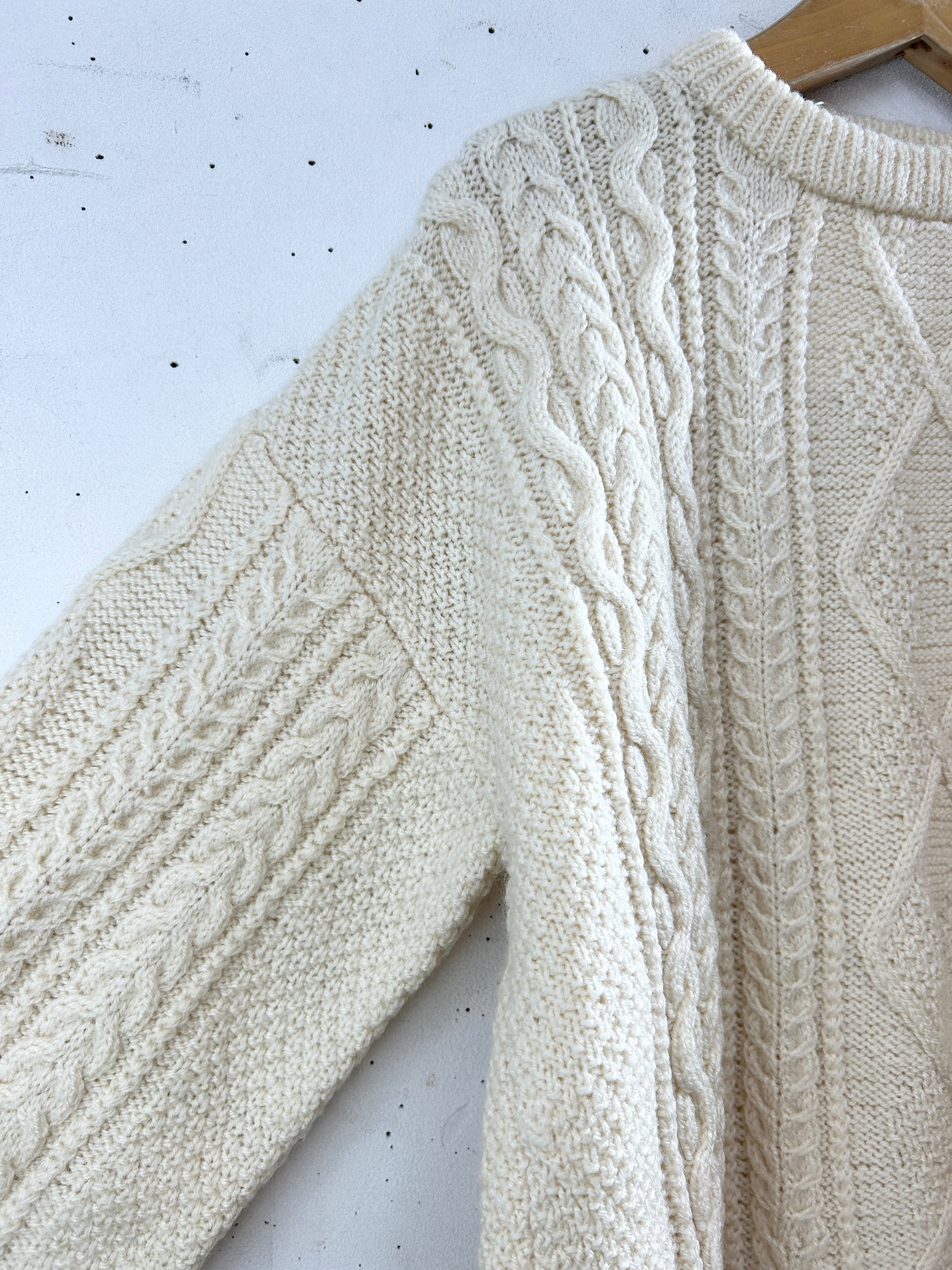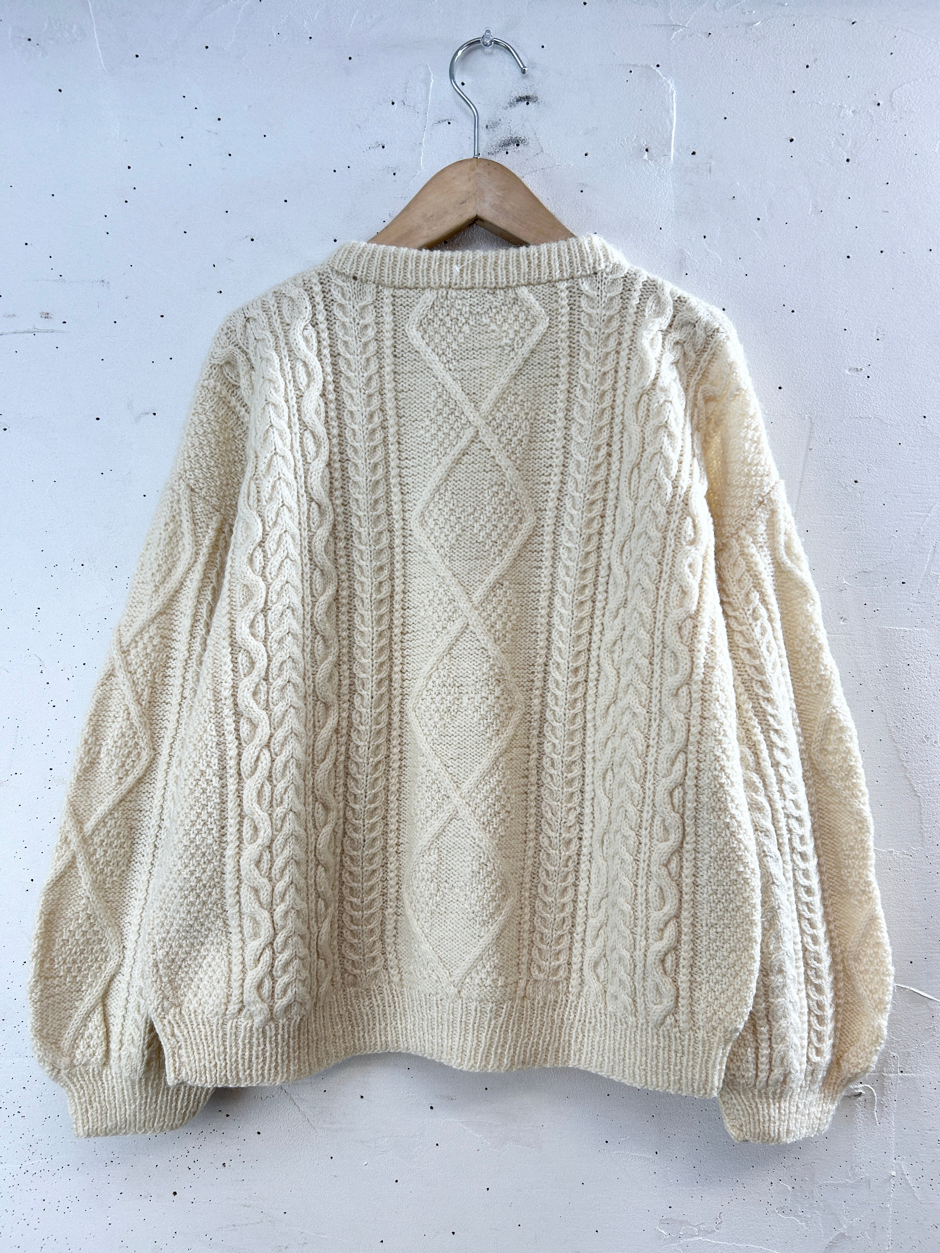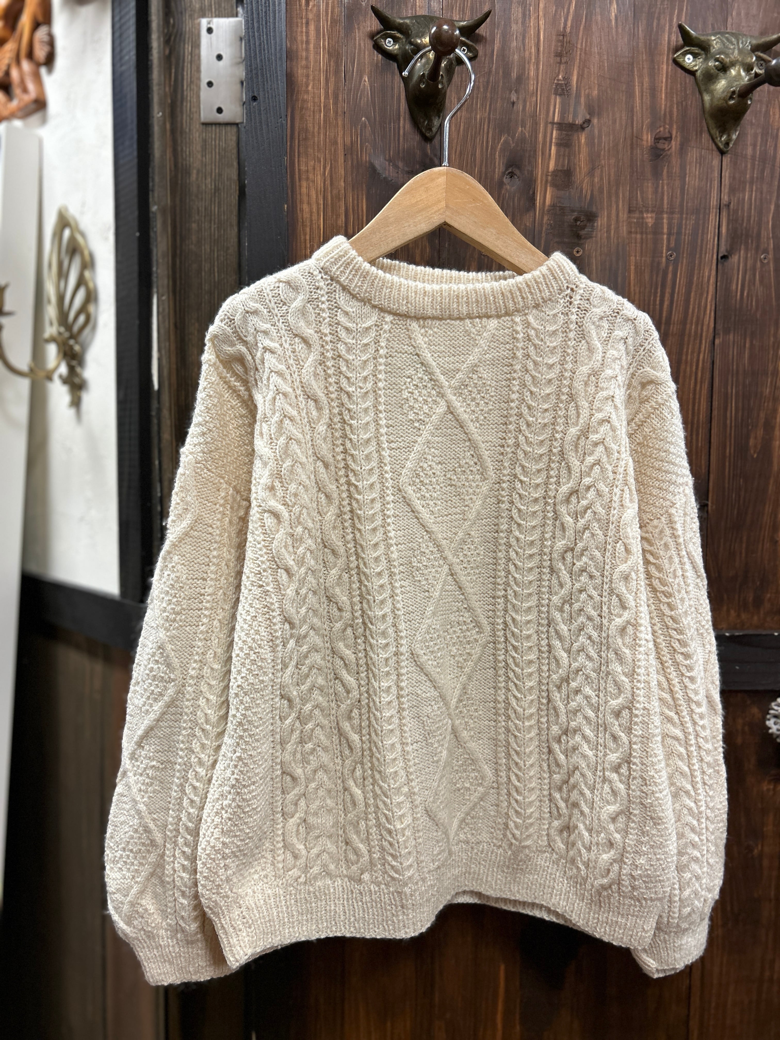 オフホワイト、アランケーブルデザインで気兼ねなく普段のコーディネートにお使い頂けます。