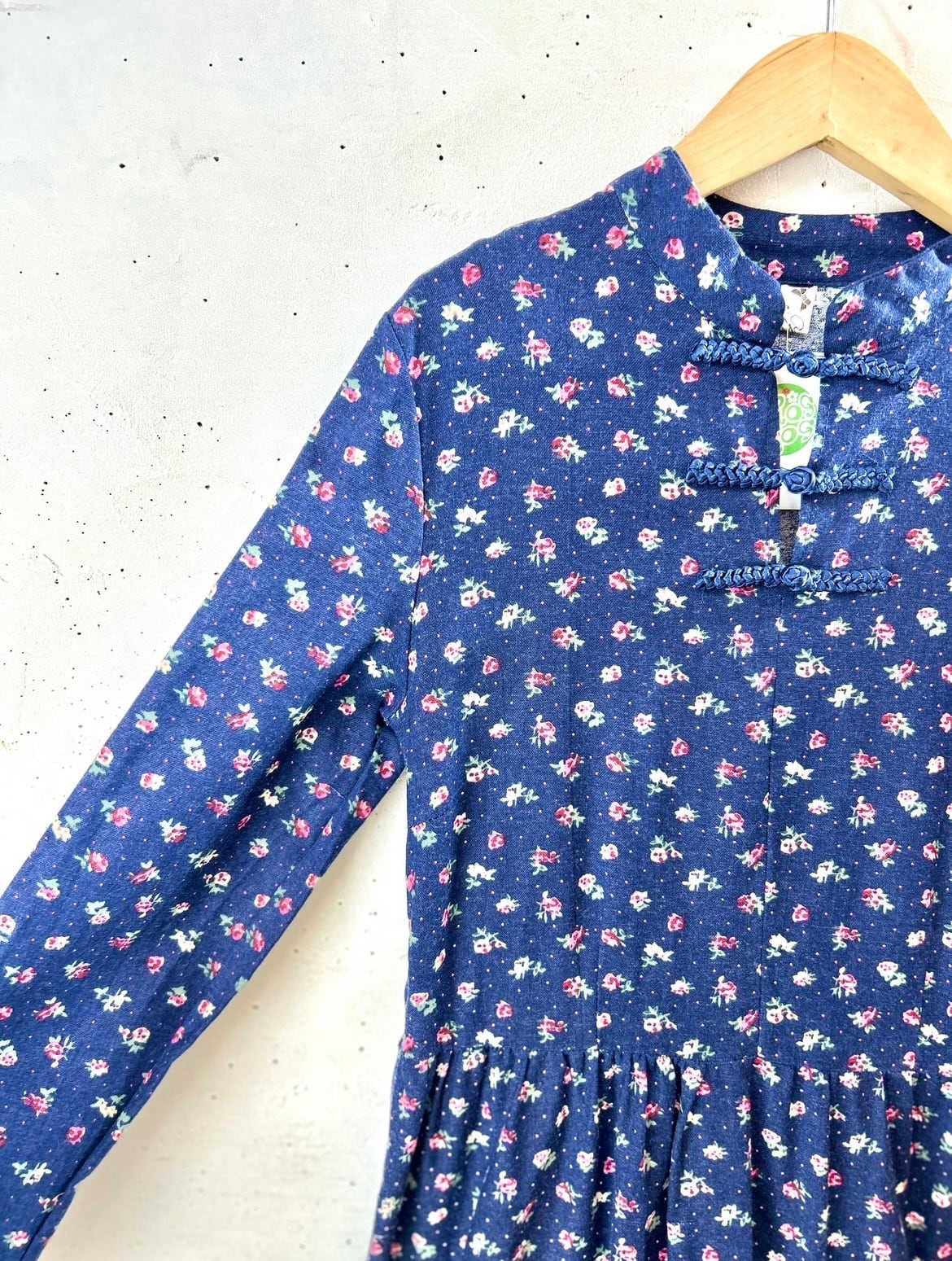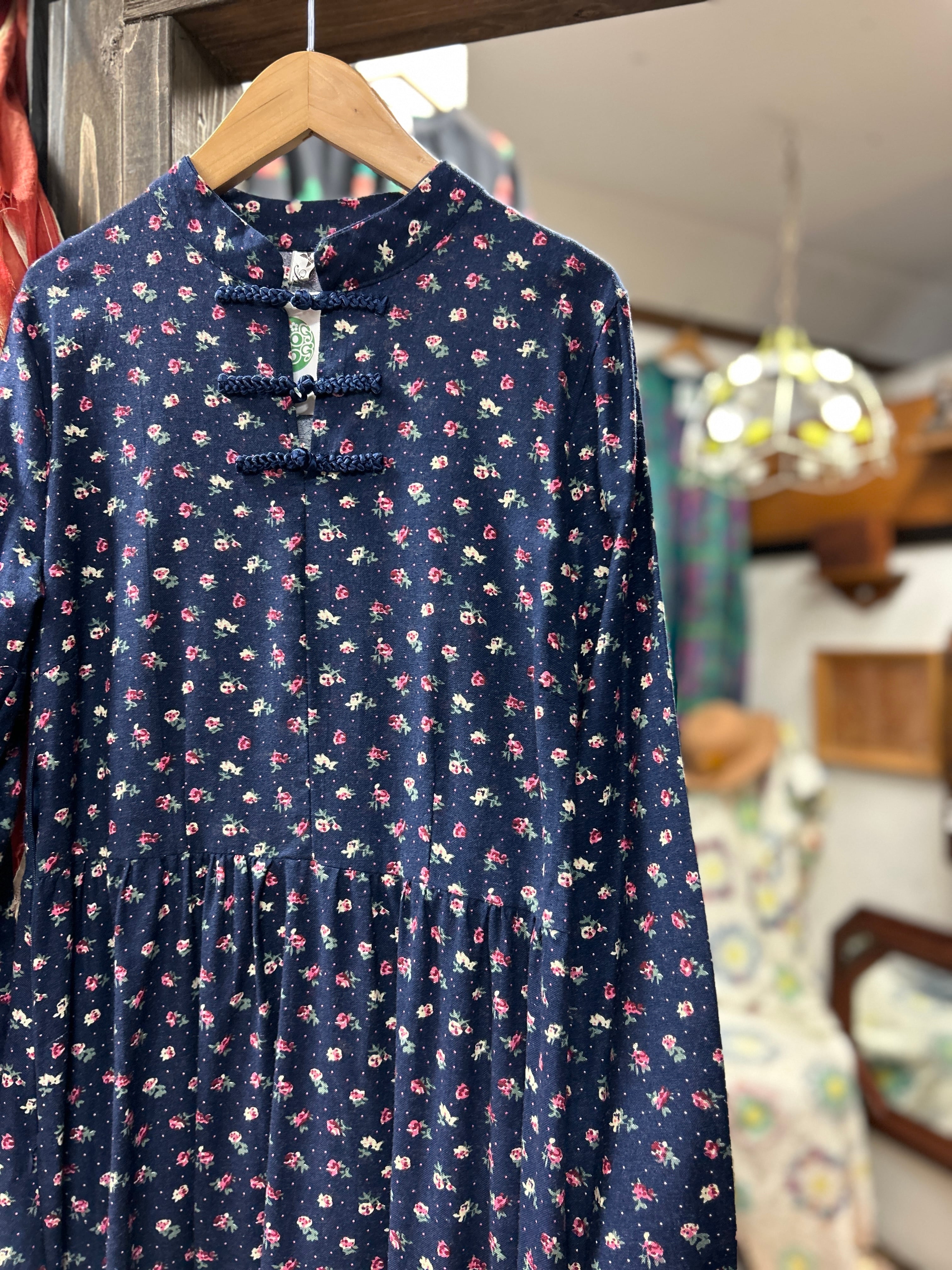 ネイビーカラーベースの小花柄が上品で可愛らしい1着。