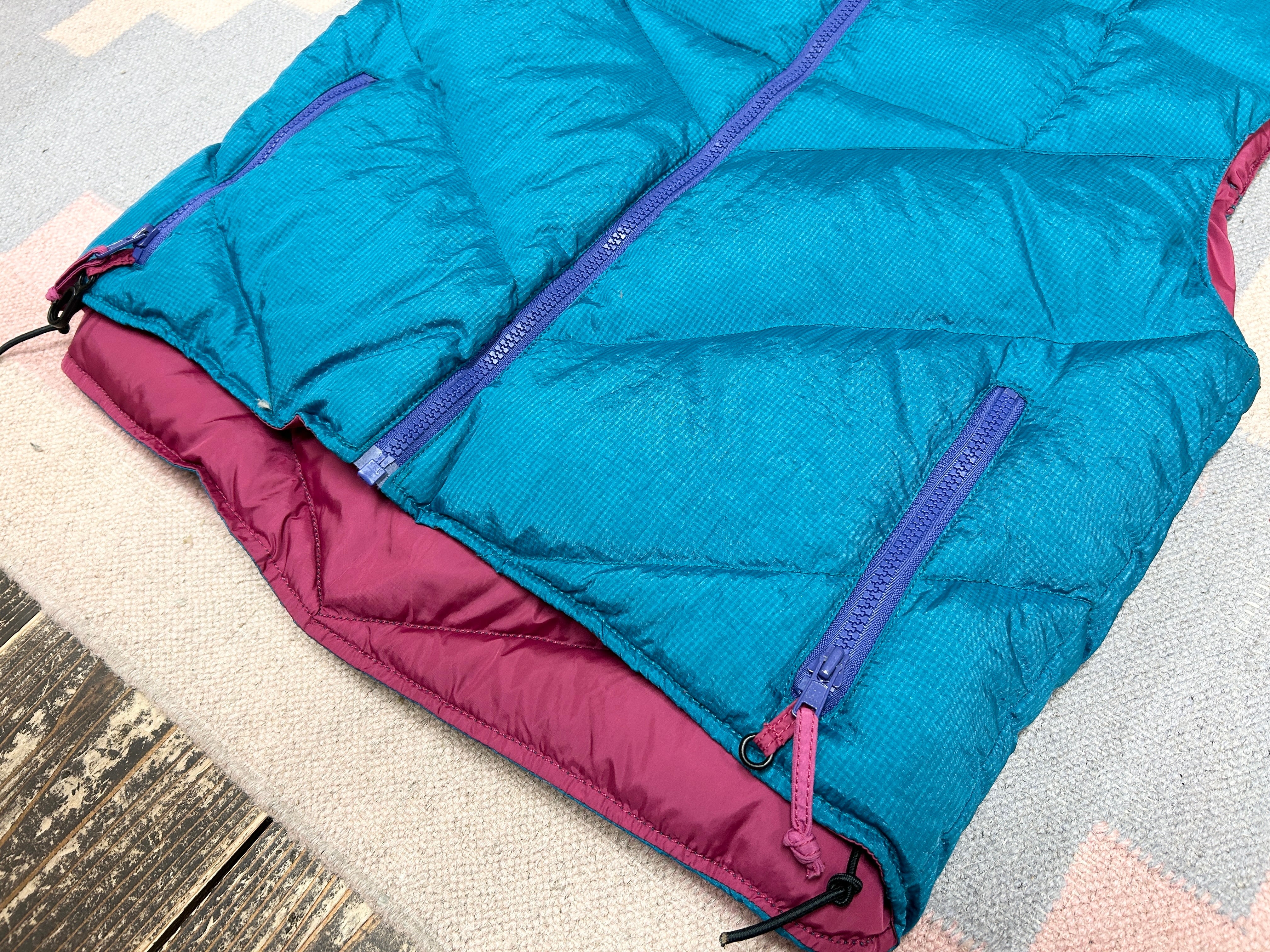 高めの首元、形も配色も抜群の良いダウンベスト。