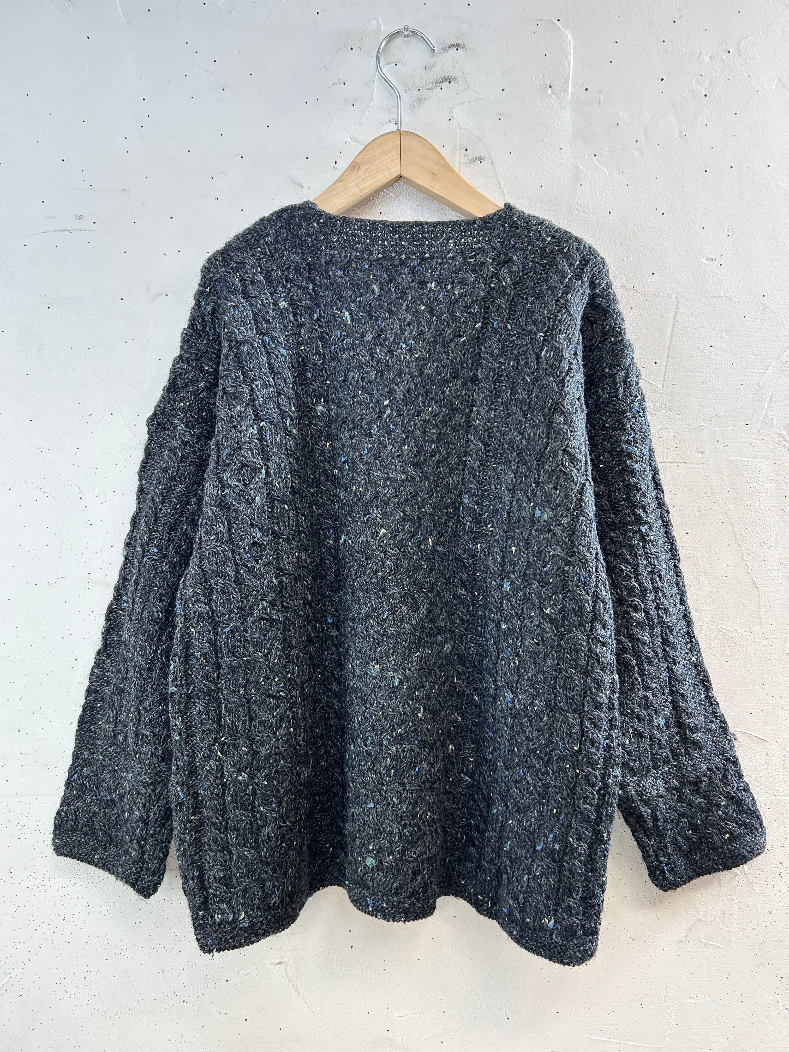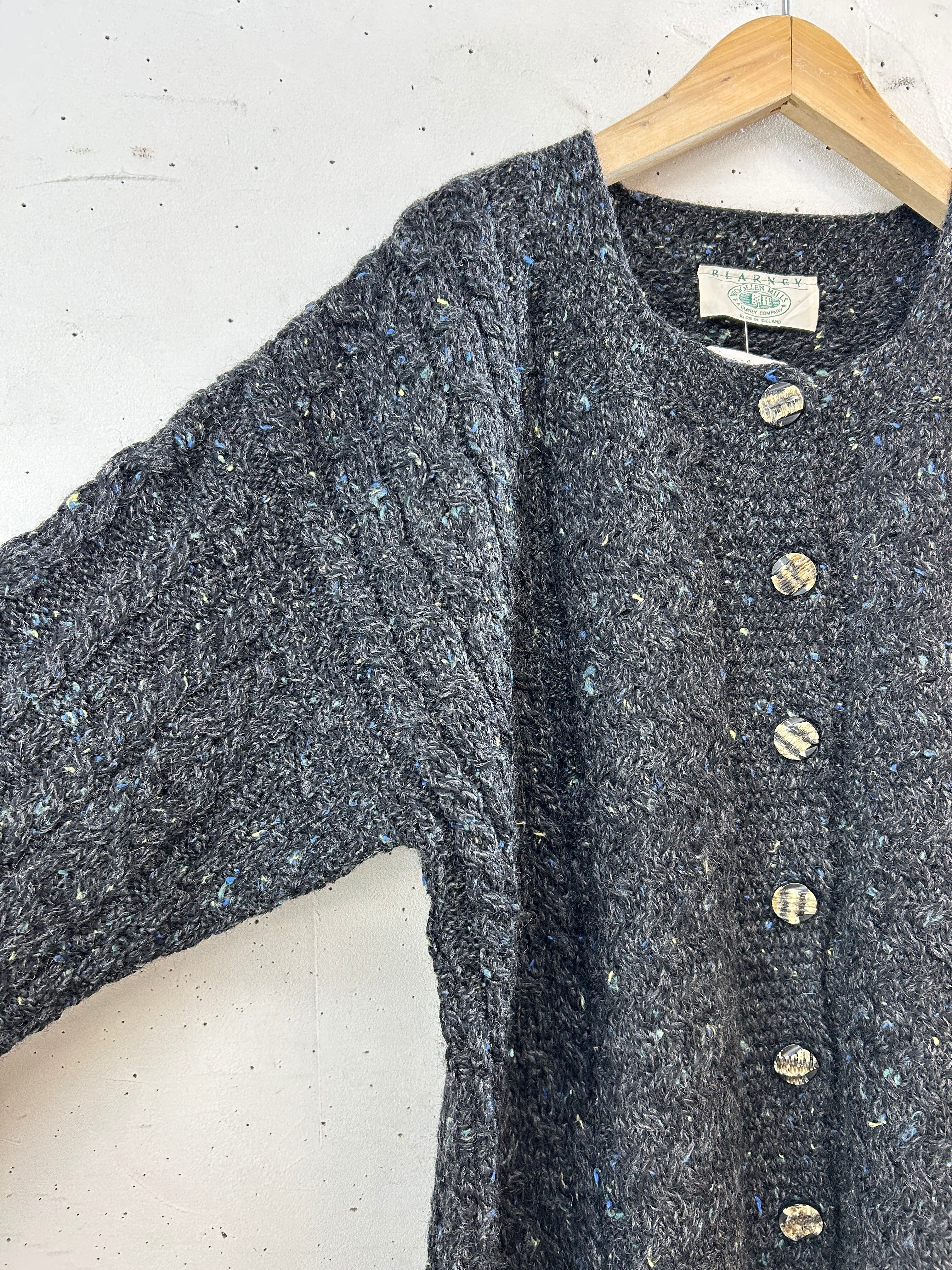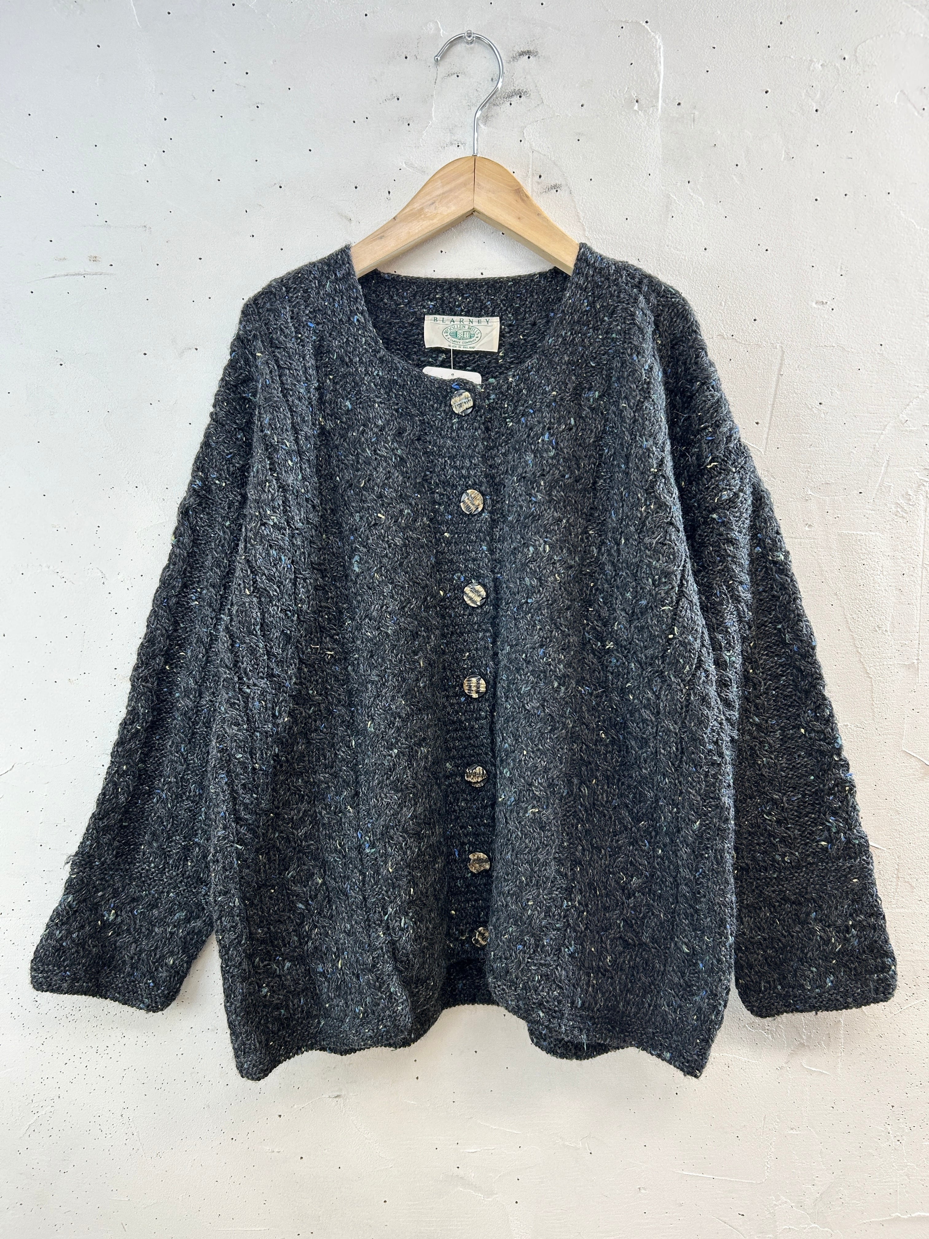シンプルな印象ですが、ミックスカラーのボディやボタンや凝った編み目がとても可愛い1着。