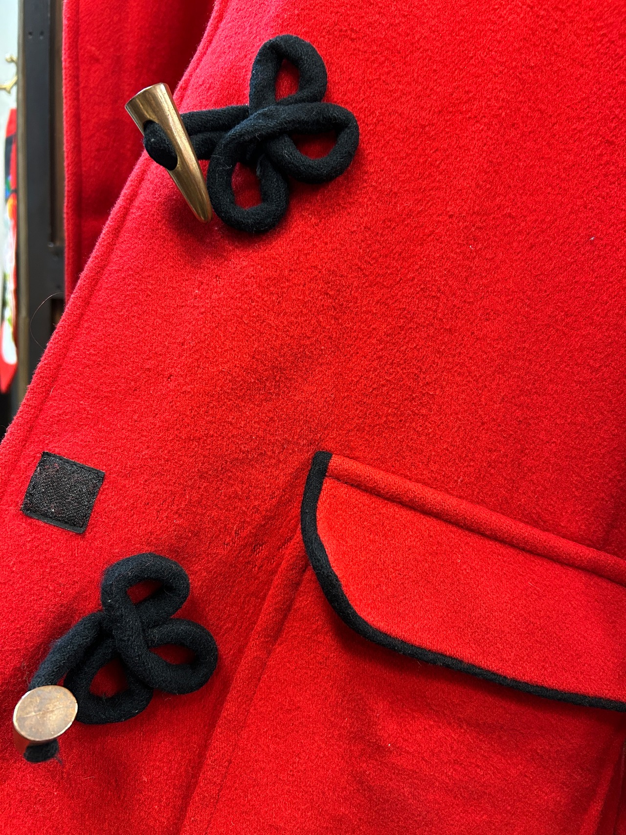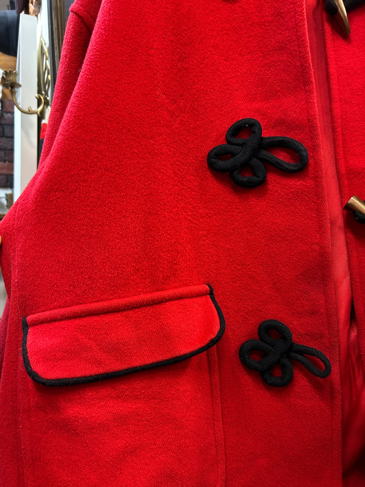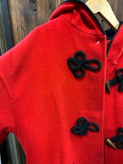真っ赤なボディにブラックのチャイナボタンがアクセントのアイテム。