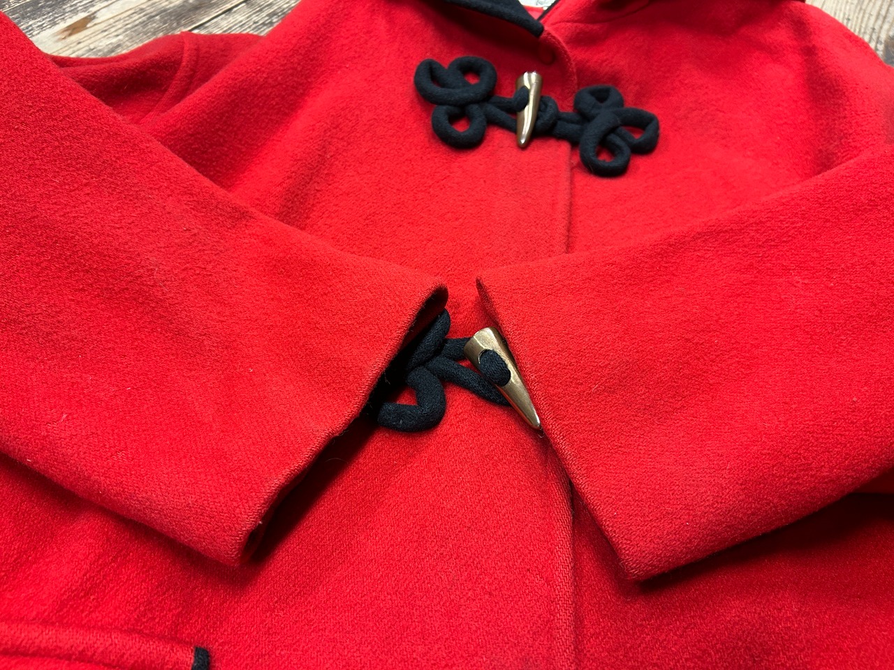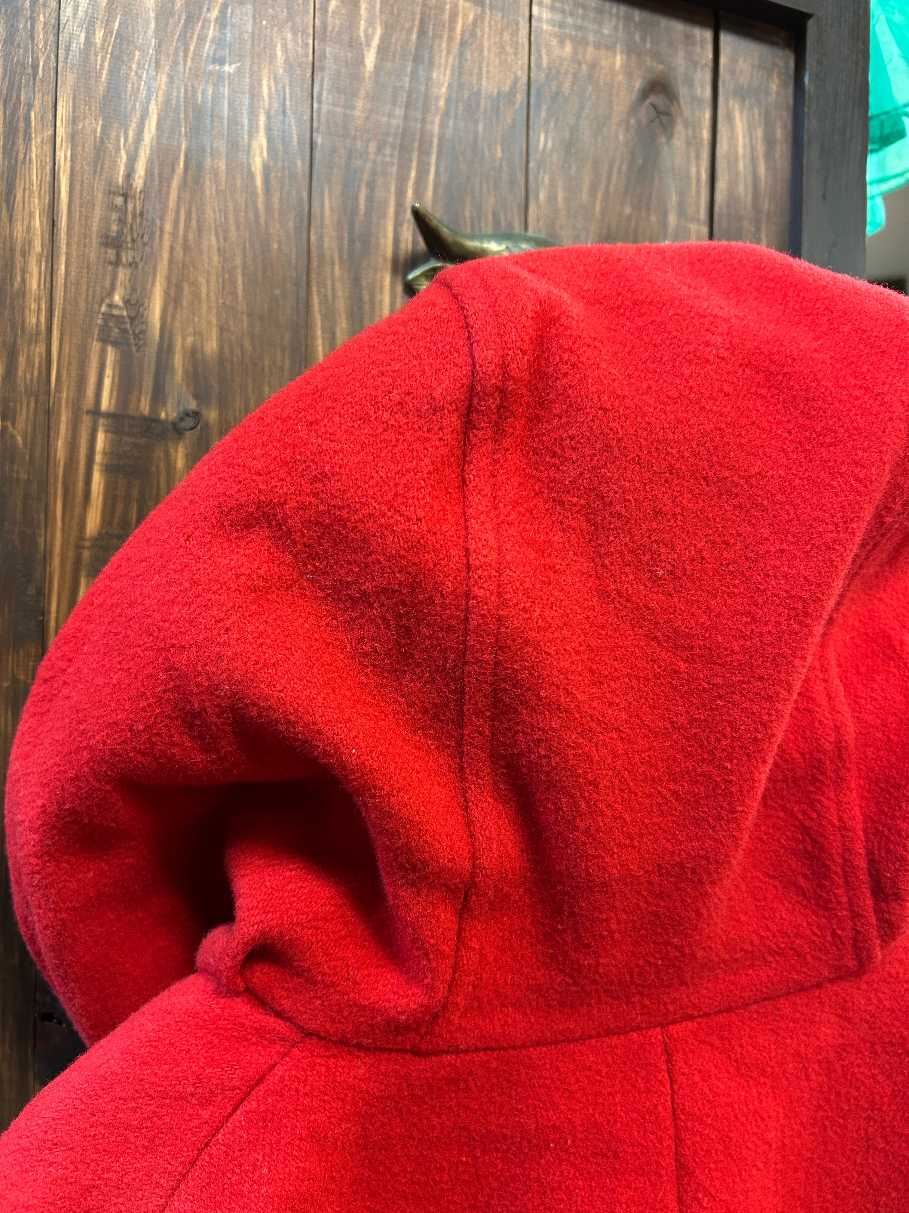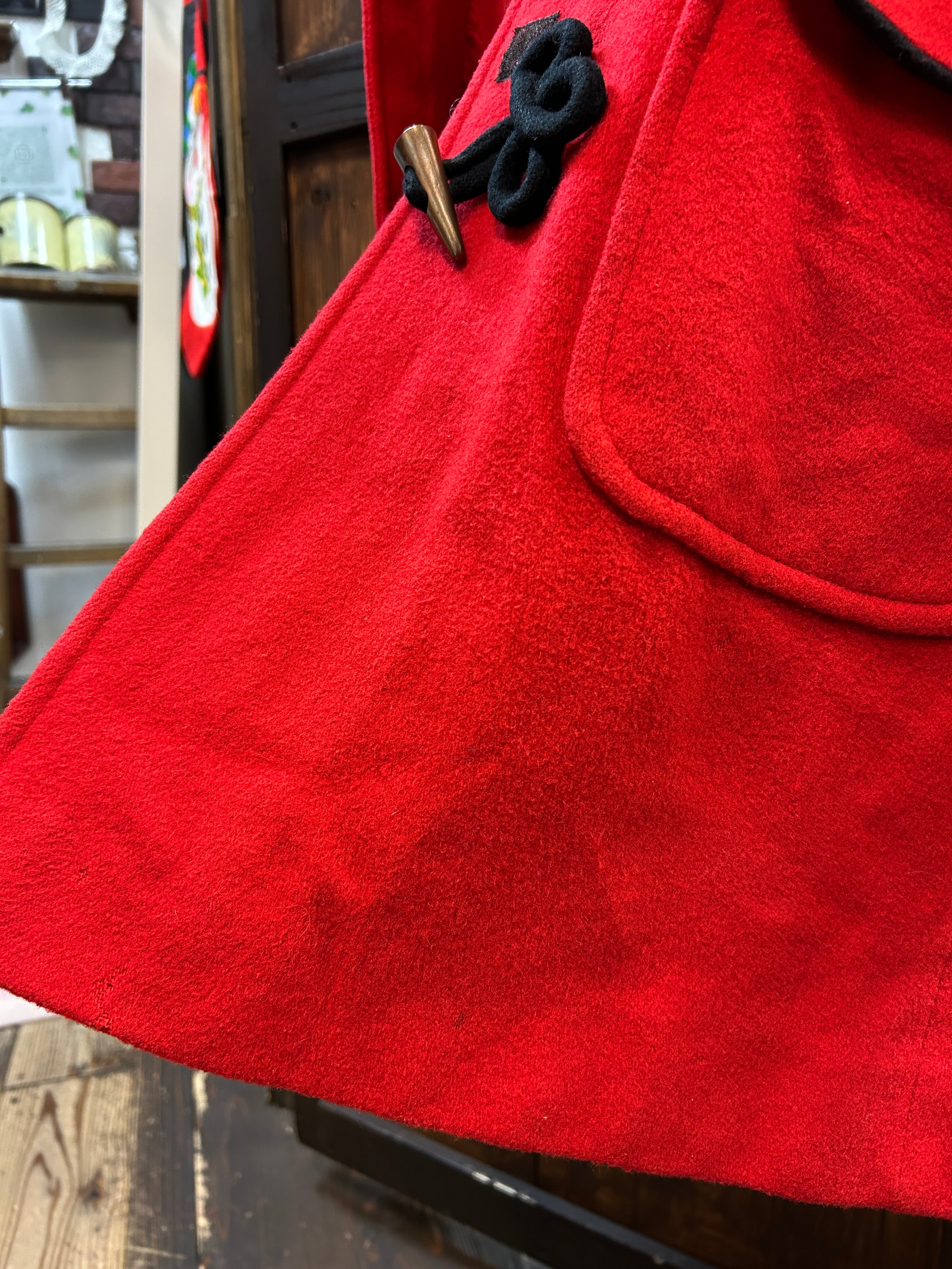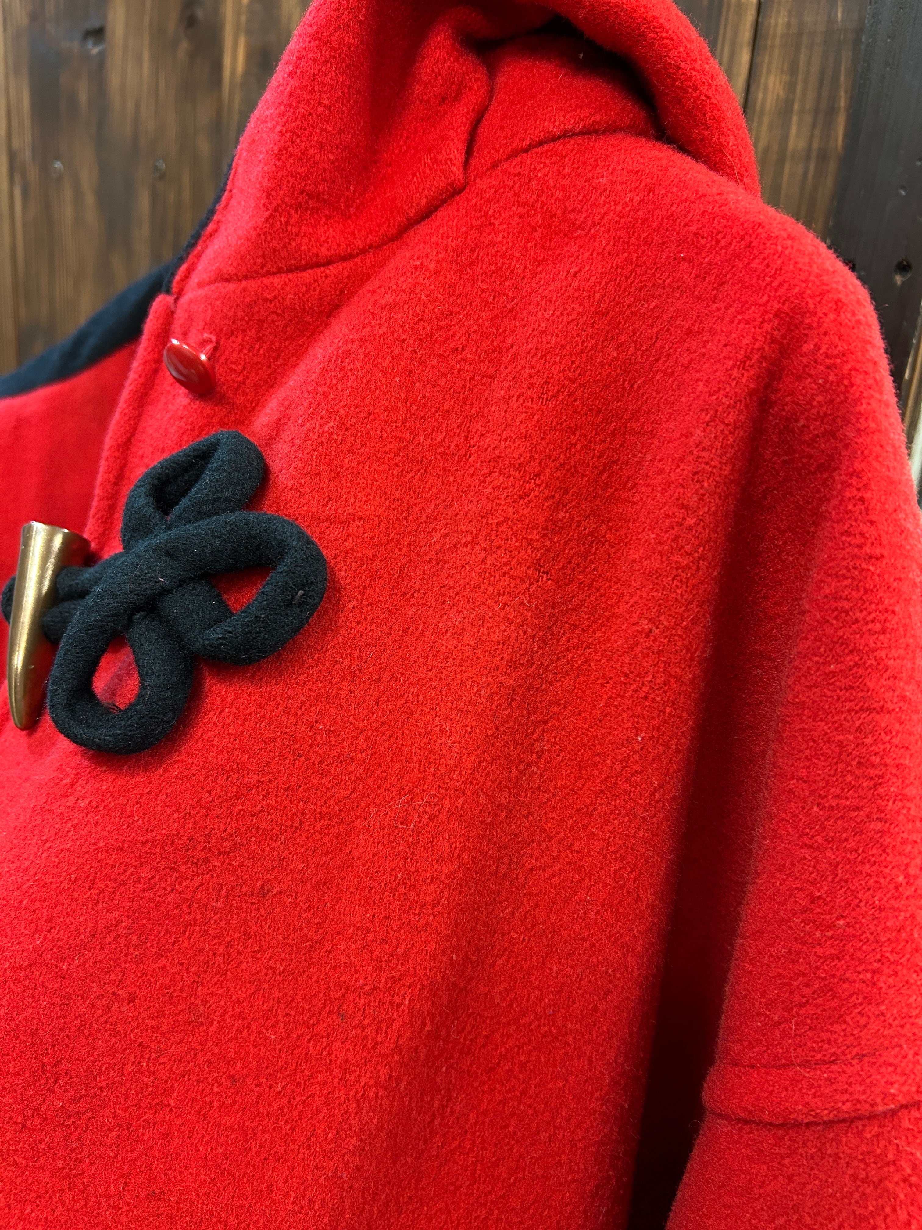 フードも可愛らしく、赤黒のツートンが素敵です。