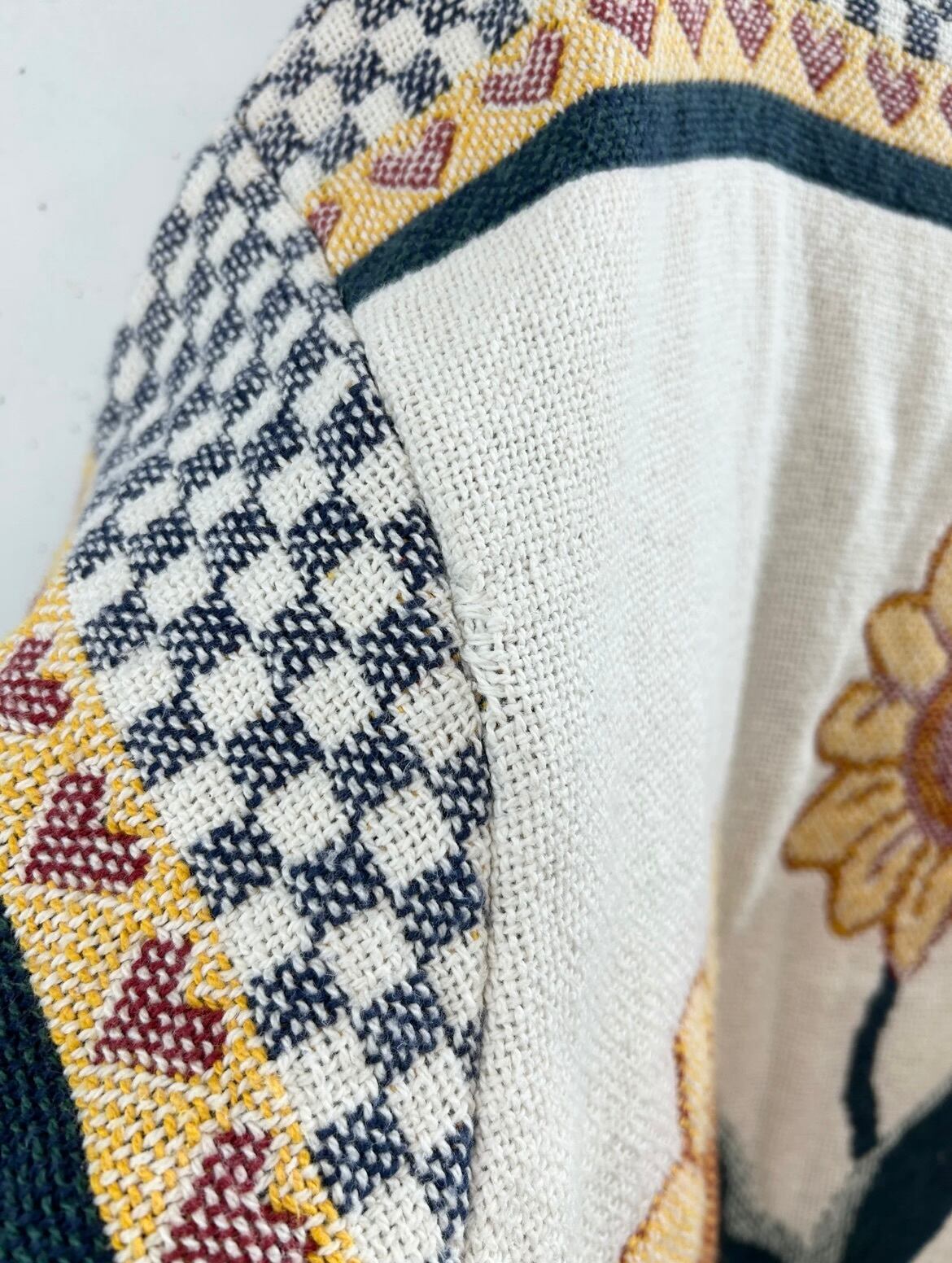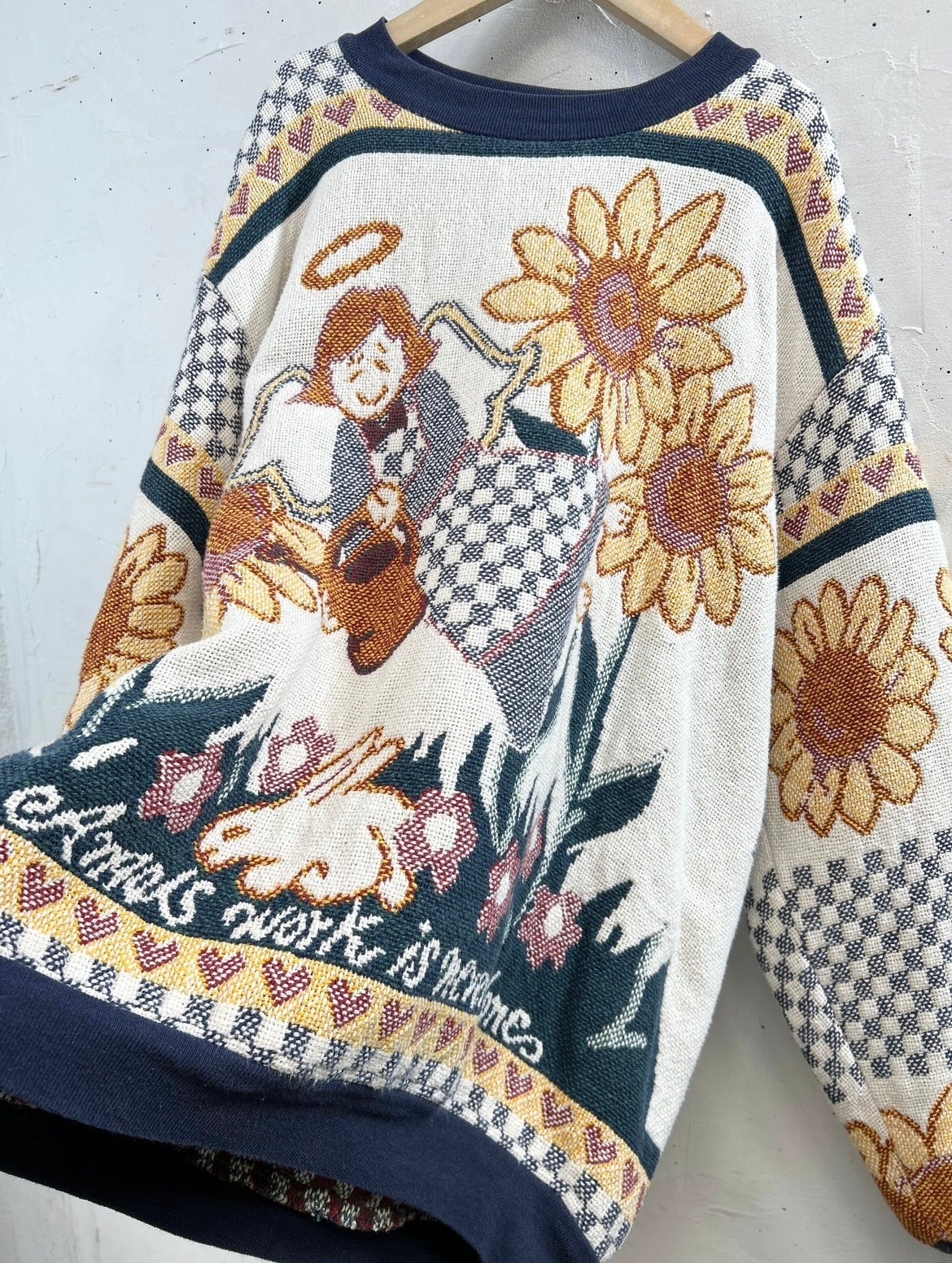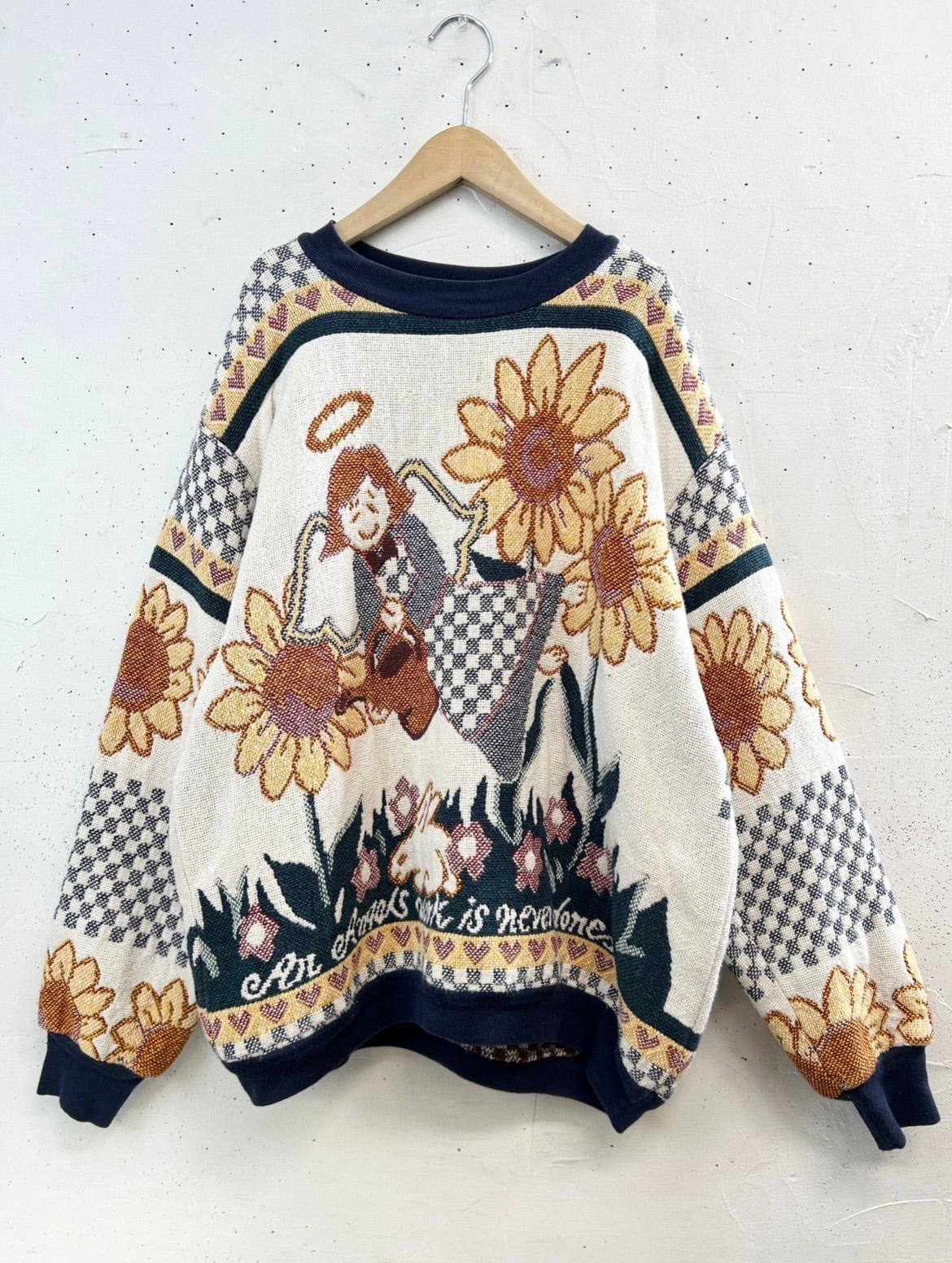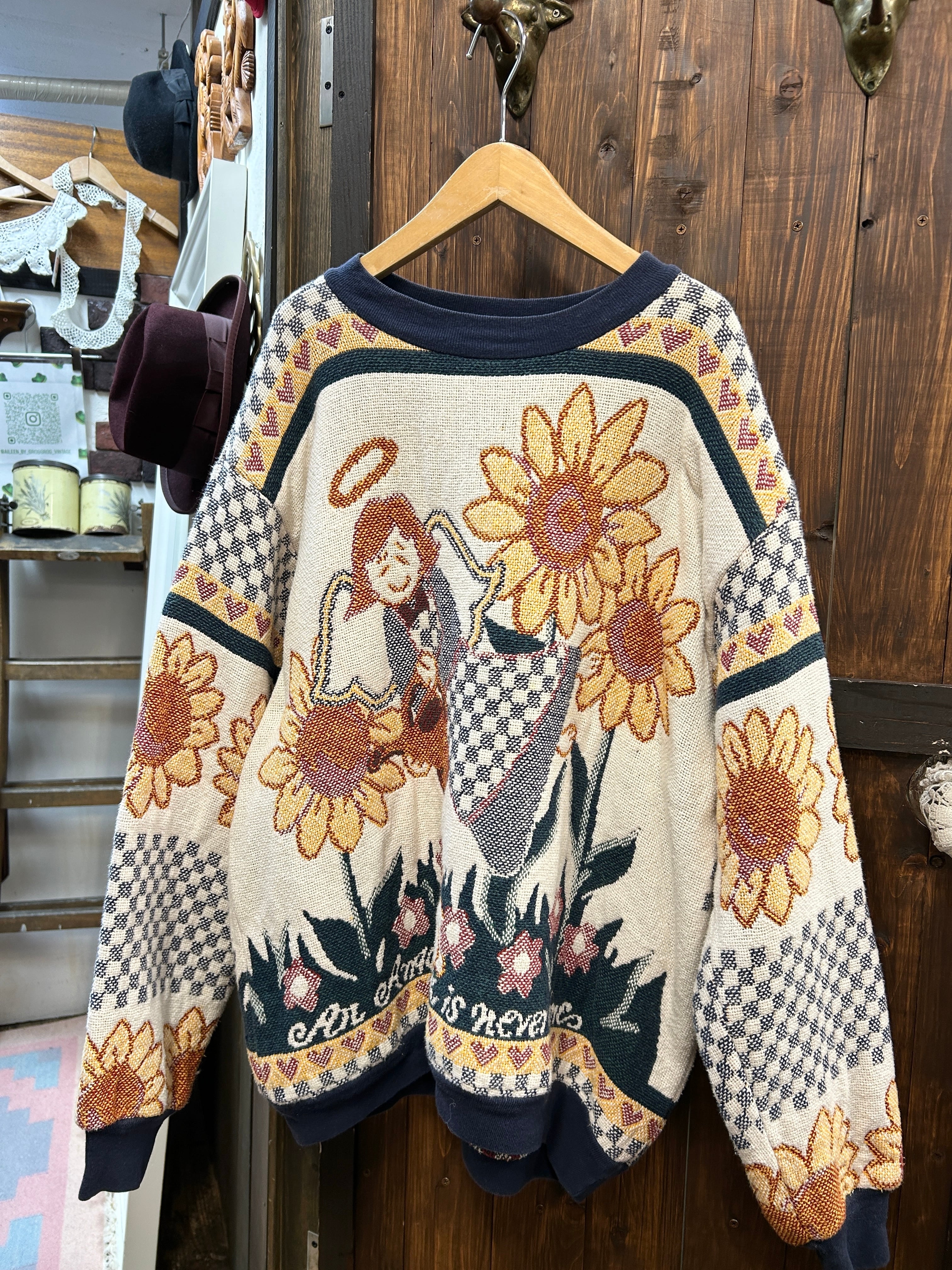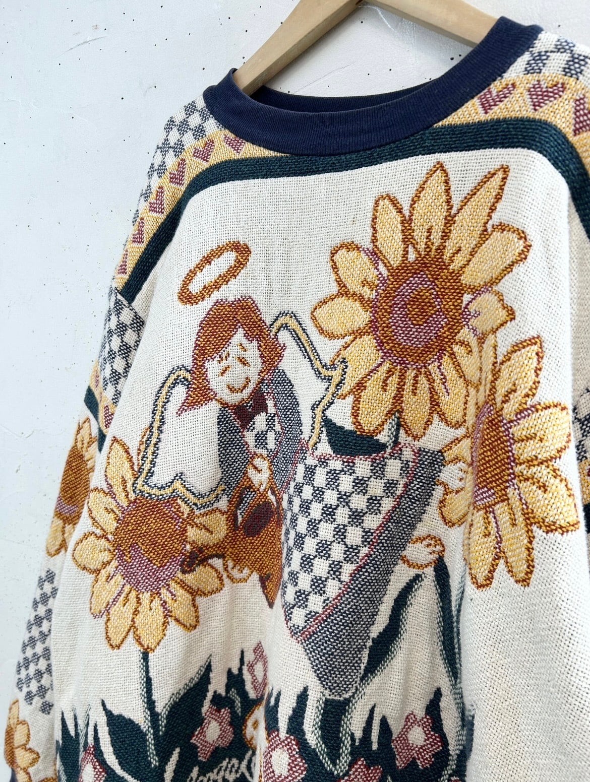こちらはアイテムは、天使がひまわりに水をあげている素敵なモチーフの1着。
