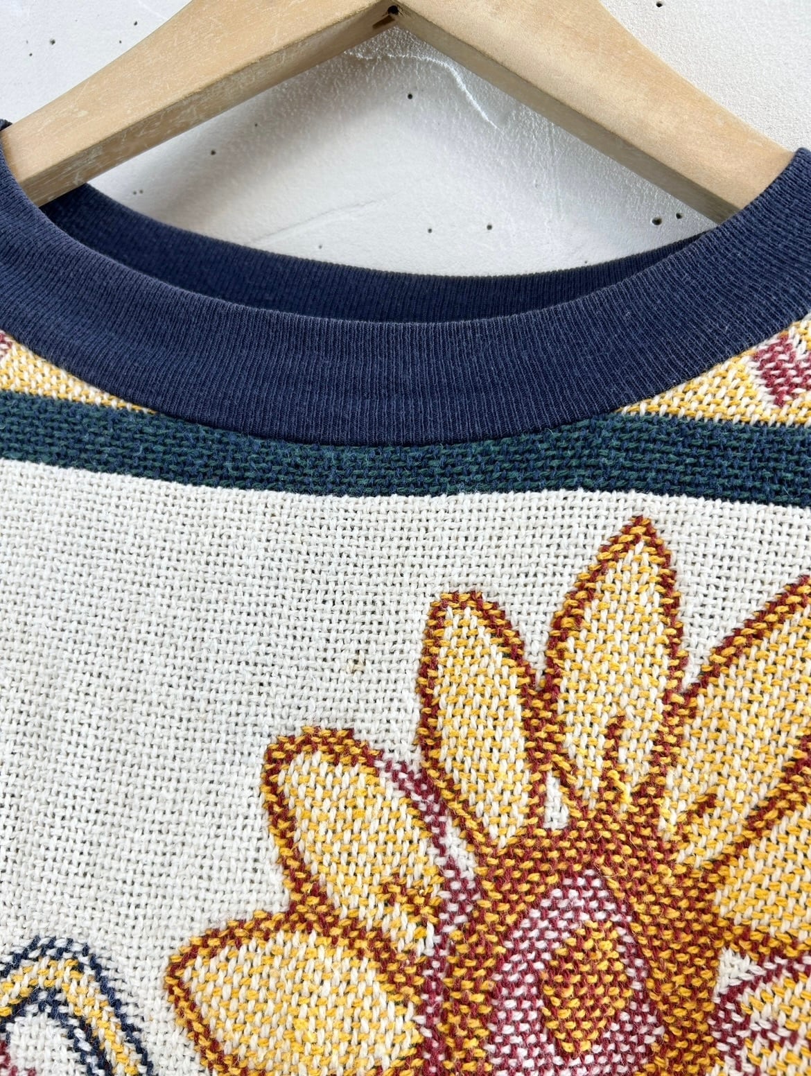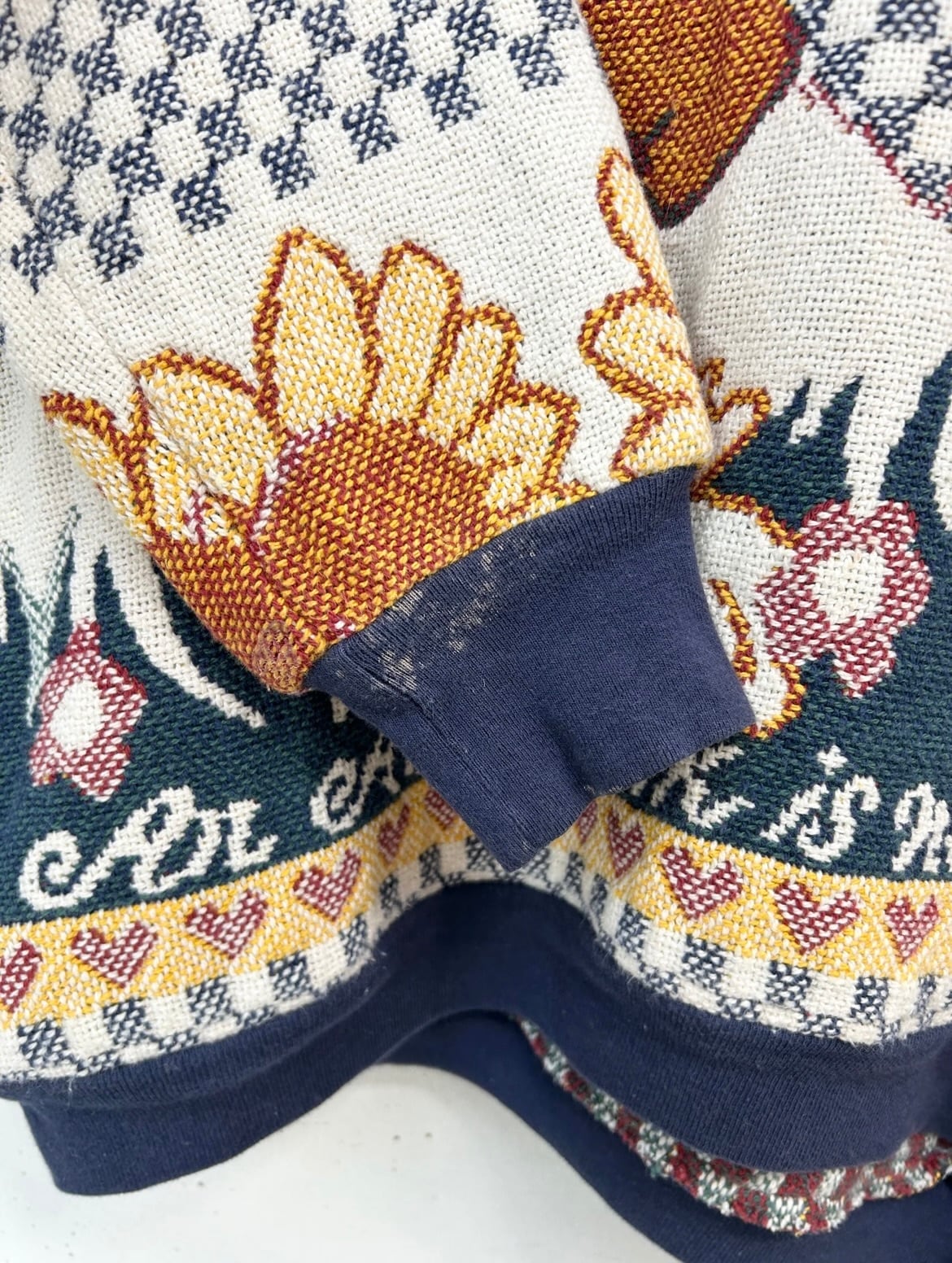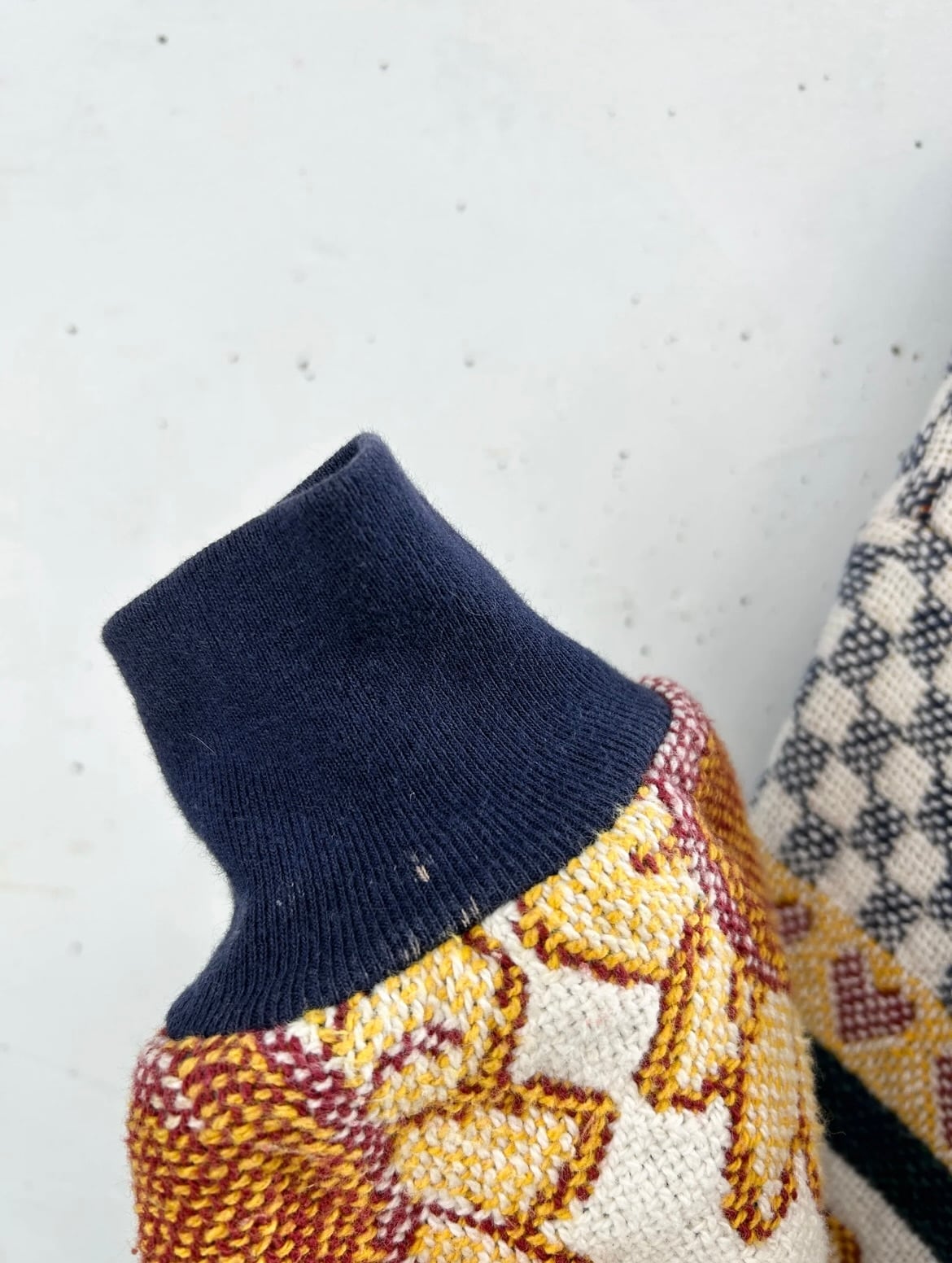 コンディション:フロント薄らシミ、袖や裾リブにブリーチあと、背中アームホール付近若干リペア跡がございますがどれも大きく目立ちません。その他特筆する程目立つようなダメージもなく、ビンテージにご理解頂いている方でしたら気にせずご着用頂ける程度かと思われます。