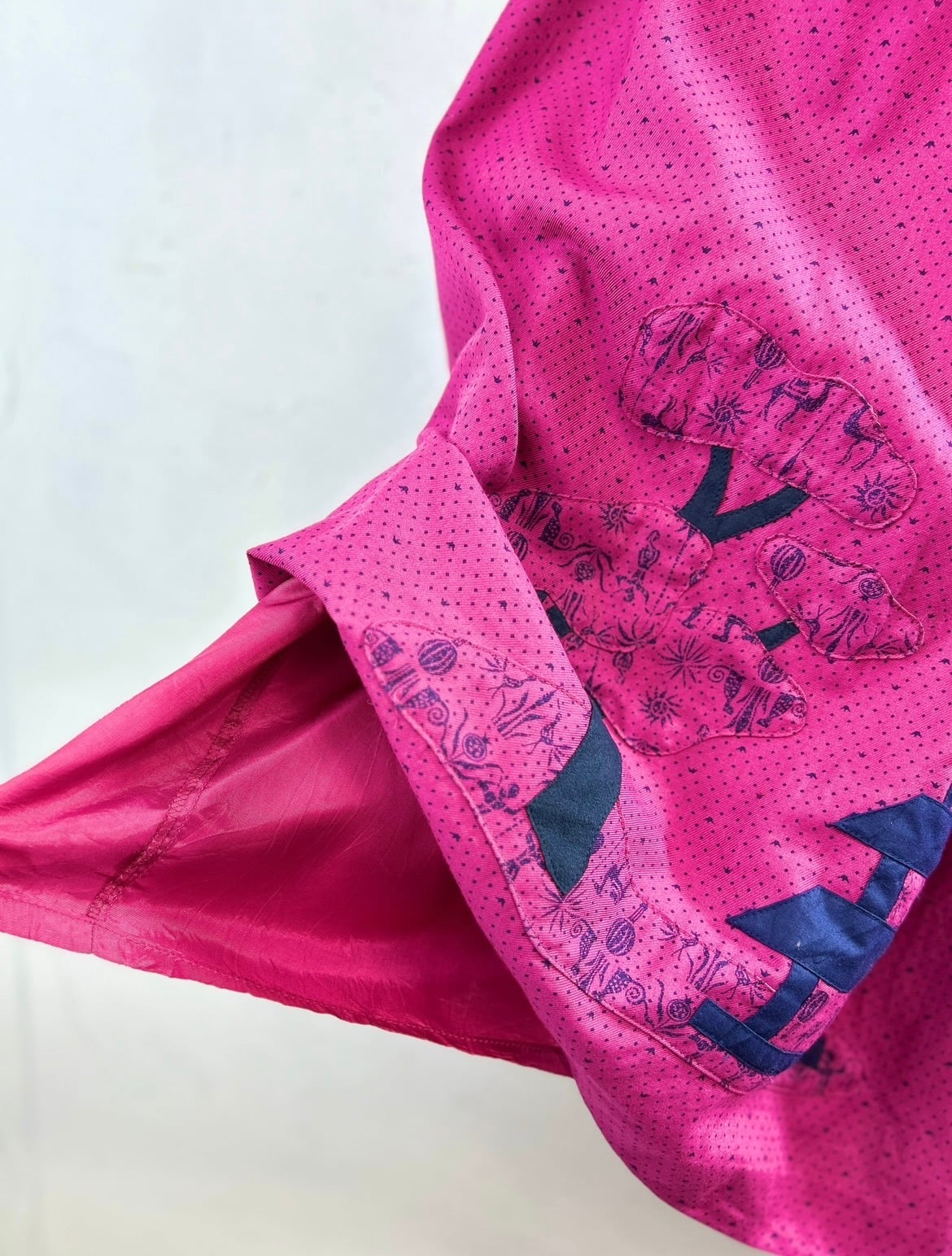 ピンクカラーに細かな折り鶴のプリントが雰囲気のある1着。