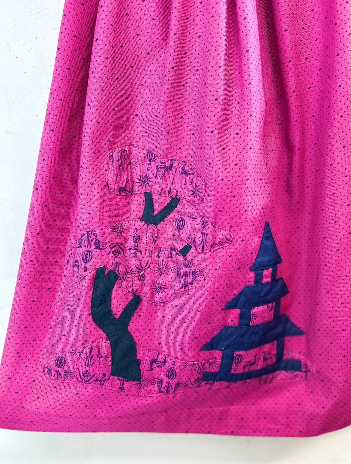 裾に施されたジャポニズムなアップリケとウエストのデザインも独創的で、上品で高品質な印象が素敵です。