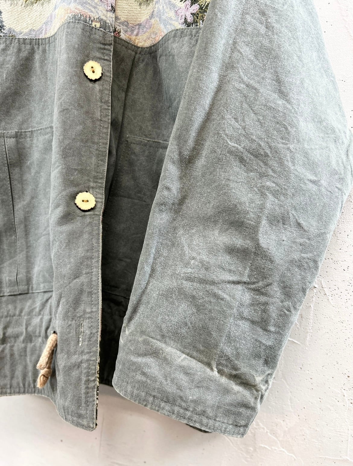 コンディション:デニム面両袖口折り返し跡や傷、ポケット部分極薄ら汚れ、デニム生地特有の色落ちやアタリがございますがどれも風合いとしてお楽しみいただけます。その他特筆するほど目立つダメージもなく、ビンテージにご理解頂いている方でしたら気にせずご着用頂ける程度かと思われます。