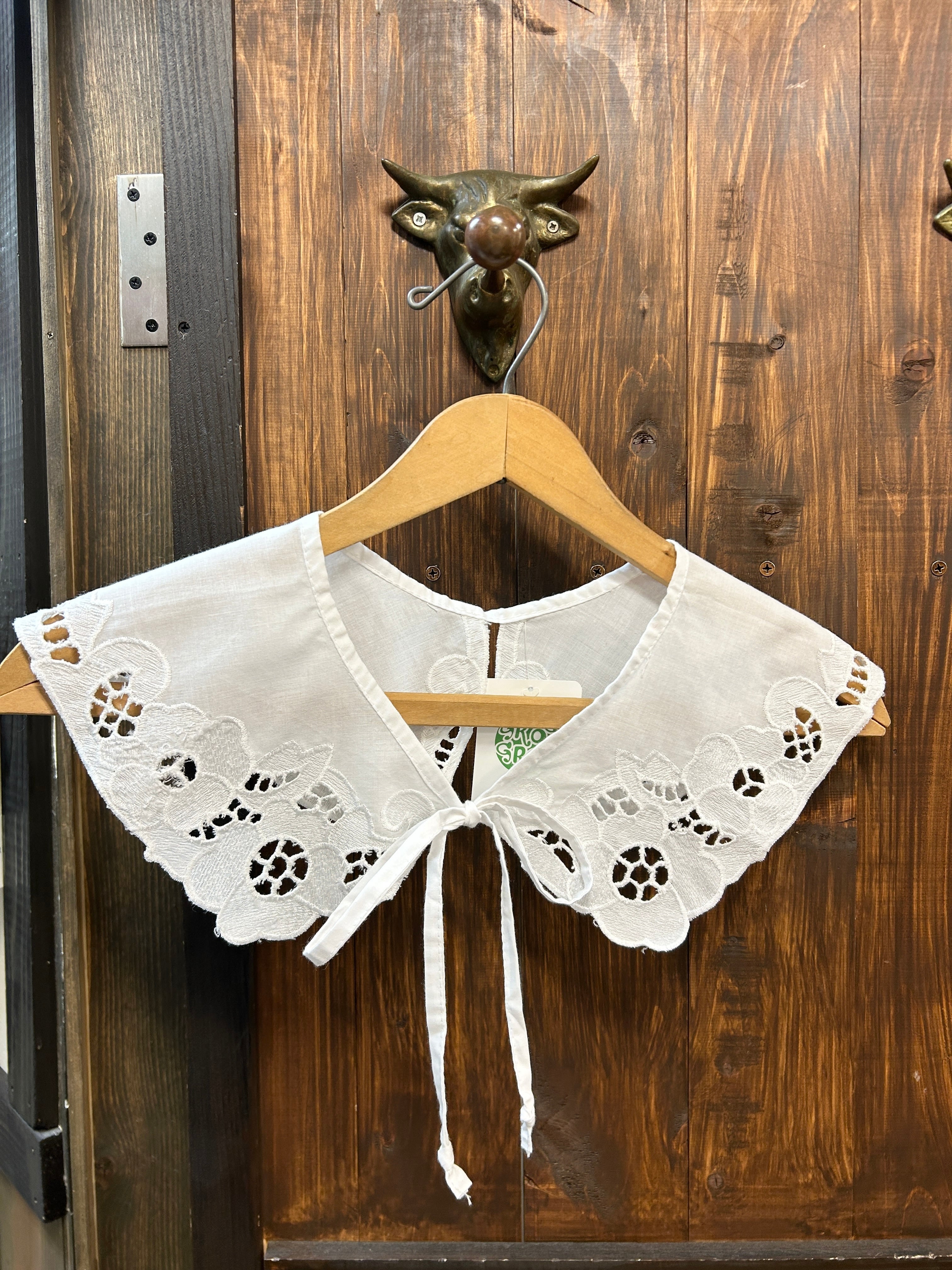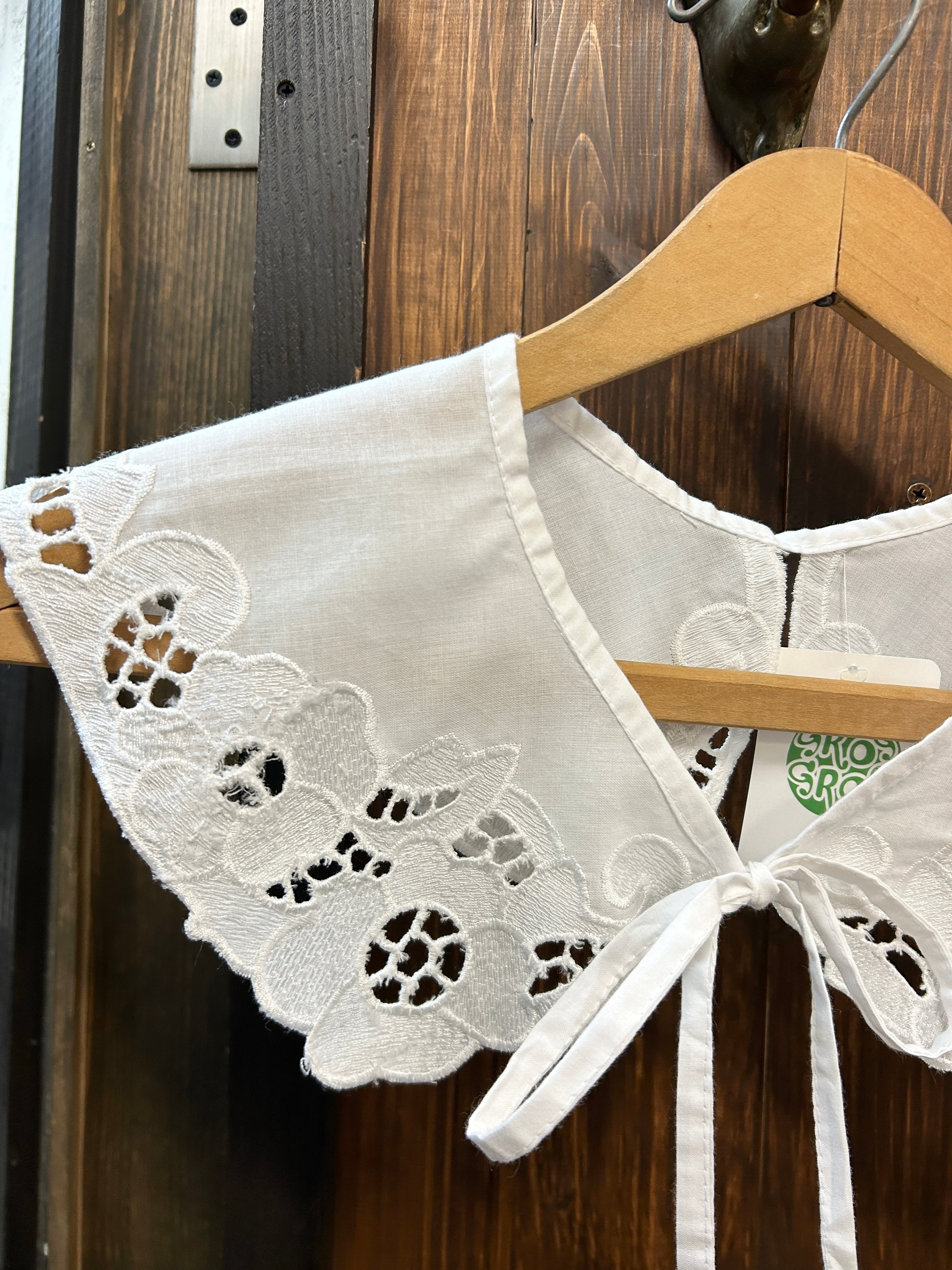 ホワイトボディ、お花の透かし編み刺繍が素敵なレース付け襟。