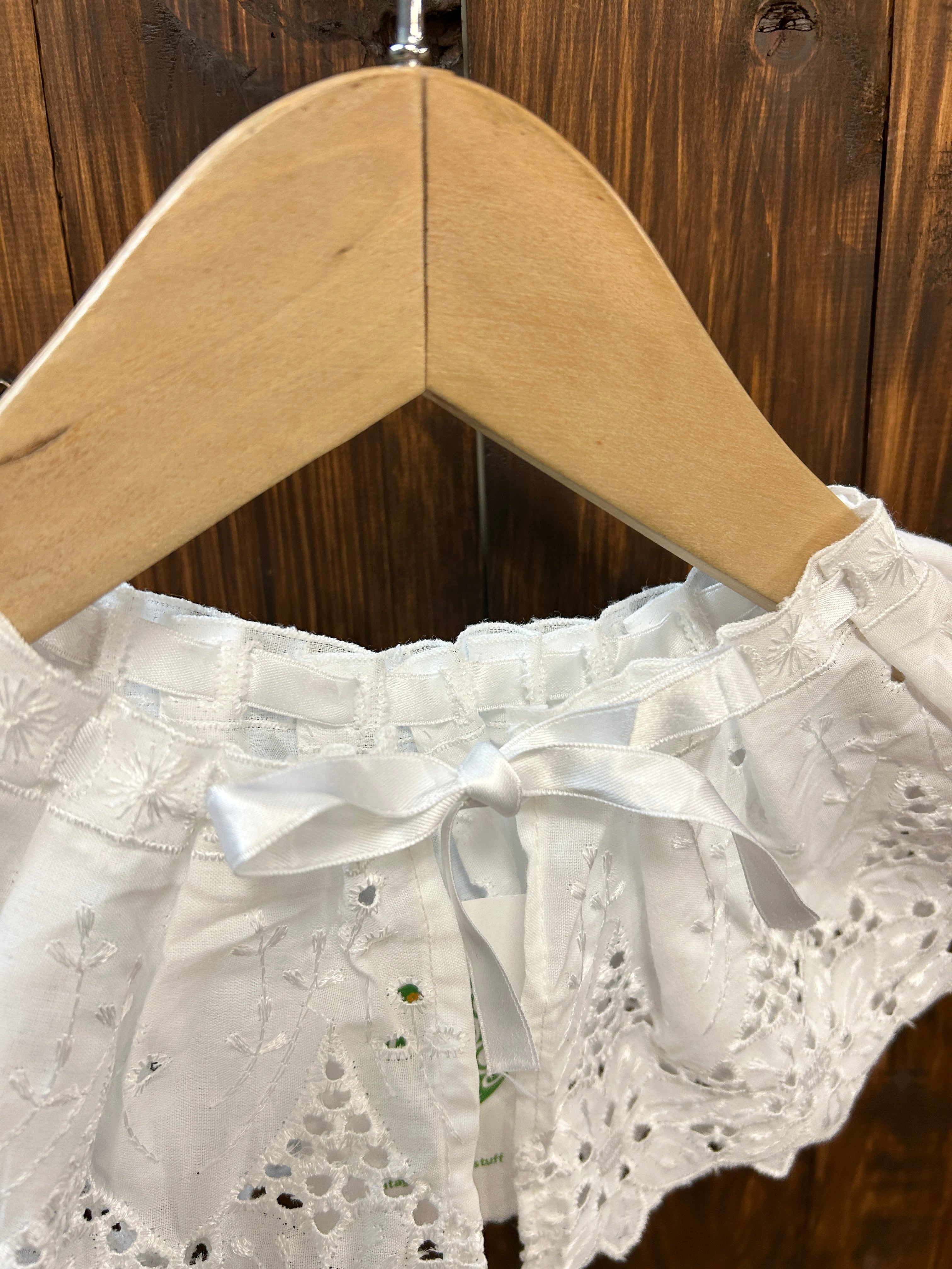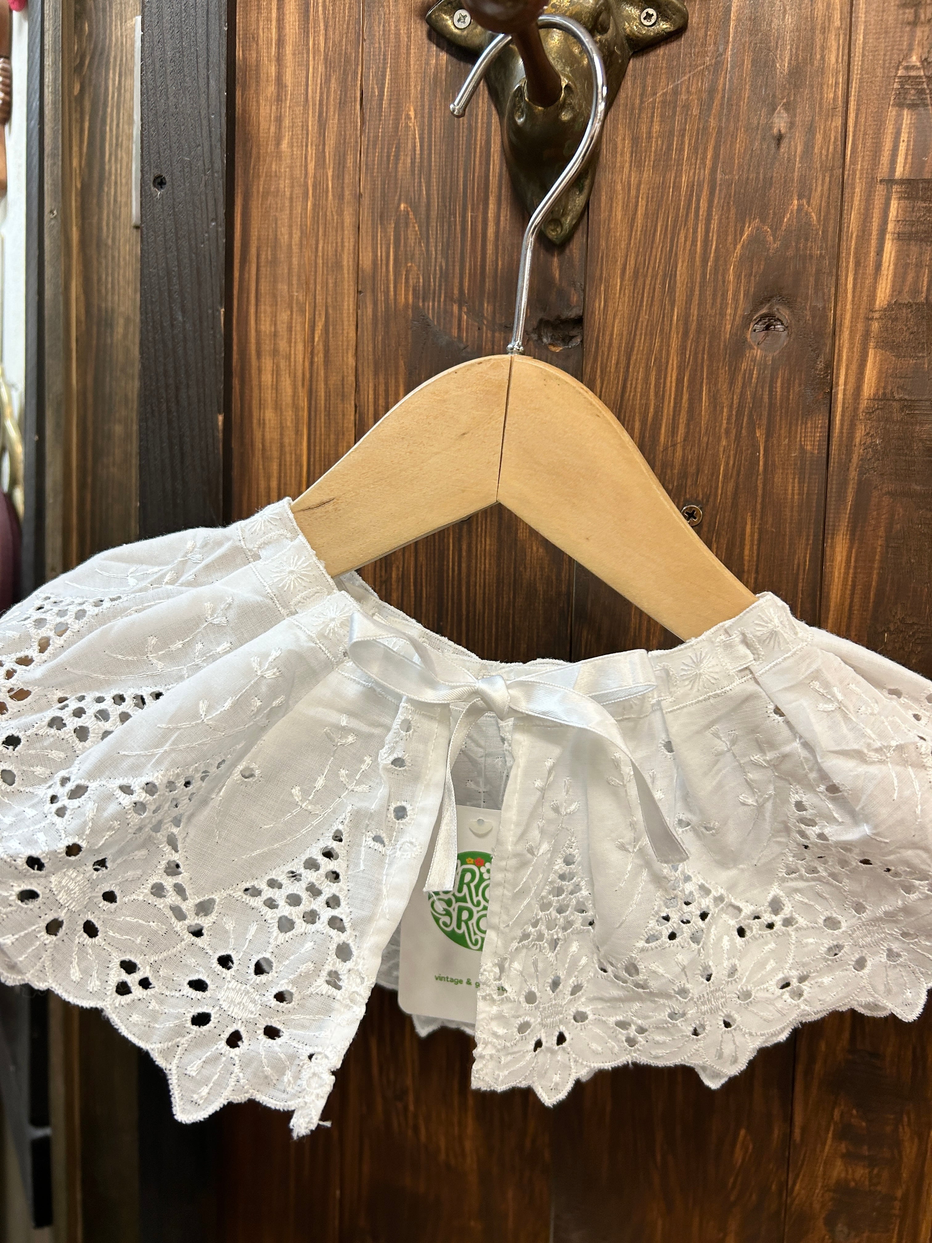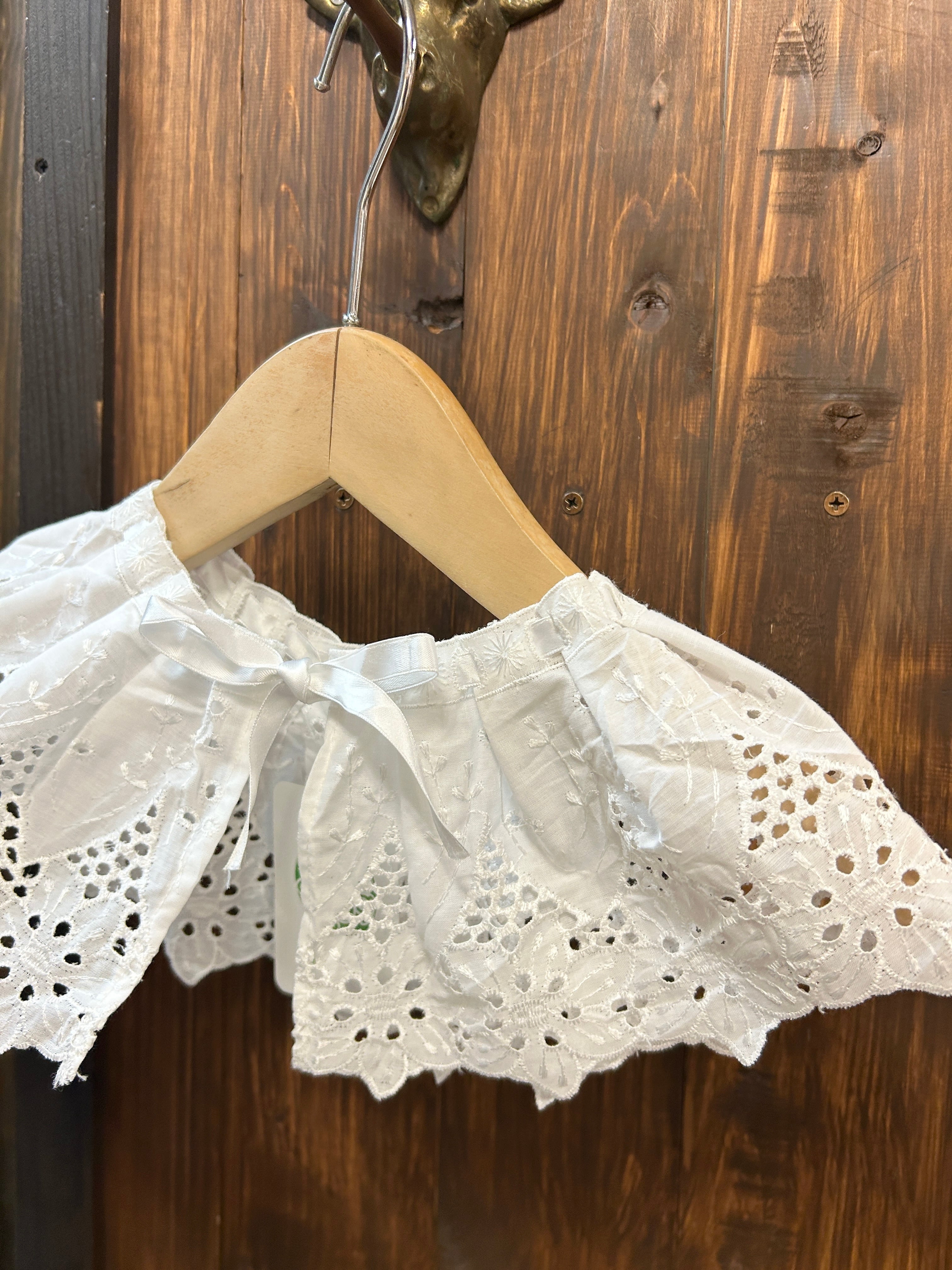 フラワー刺繍レース、首周りにサテンテープが入る形の可愛いアイテム。