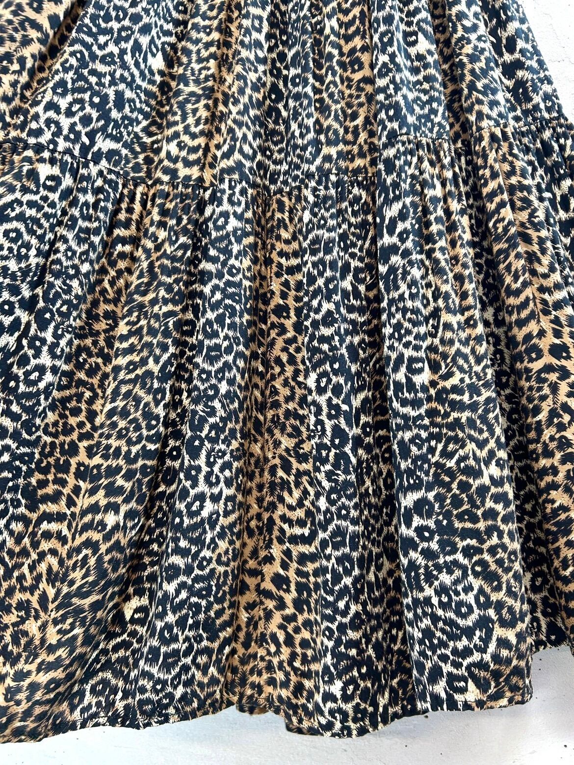何かとコーディネートのポイントに使いやすいレオパード。レーヨン素材なので落ち感もよく綺麗なシルエットで着用頂けます。