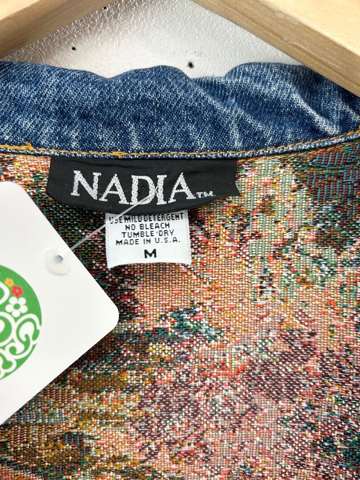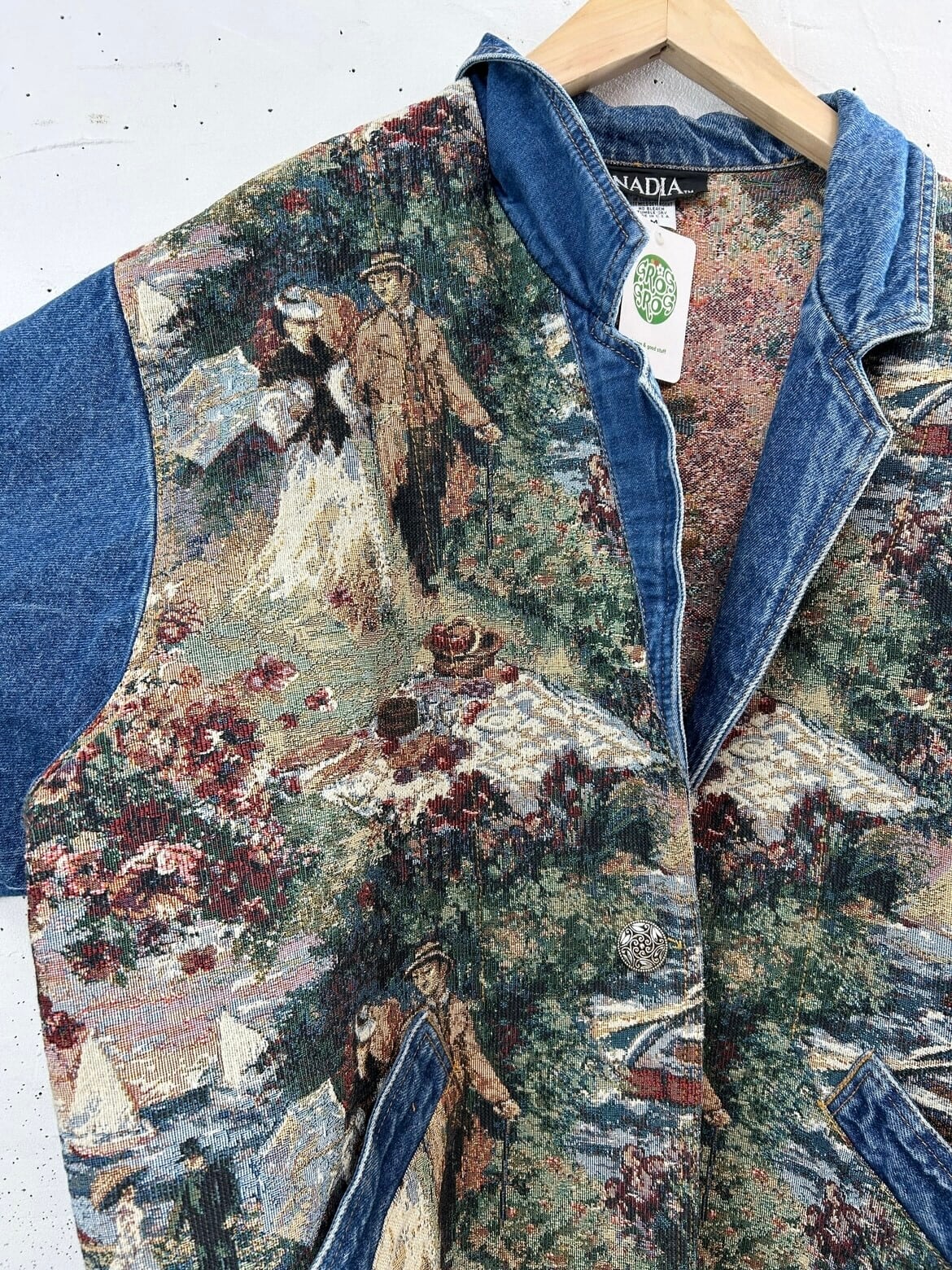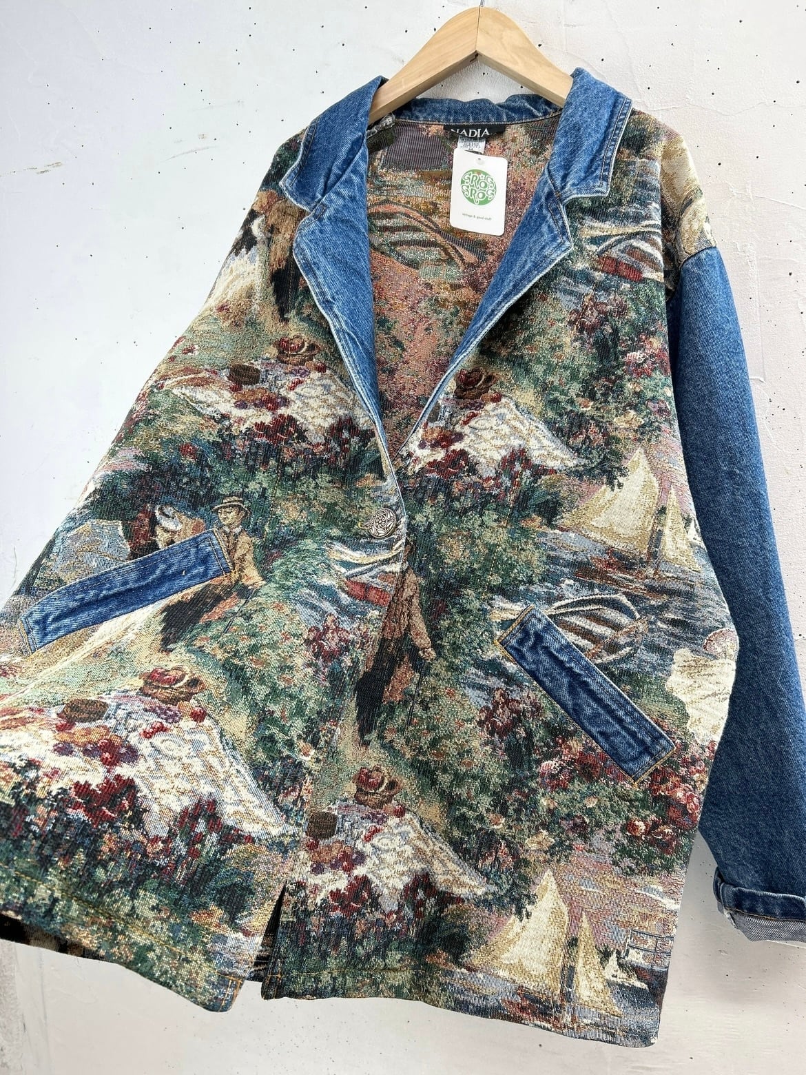 デニム生地とゴブランの切り替えがデザイン性の高い1着。