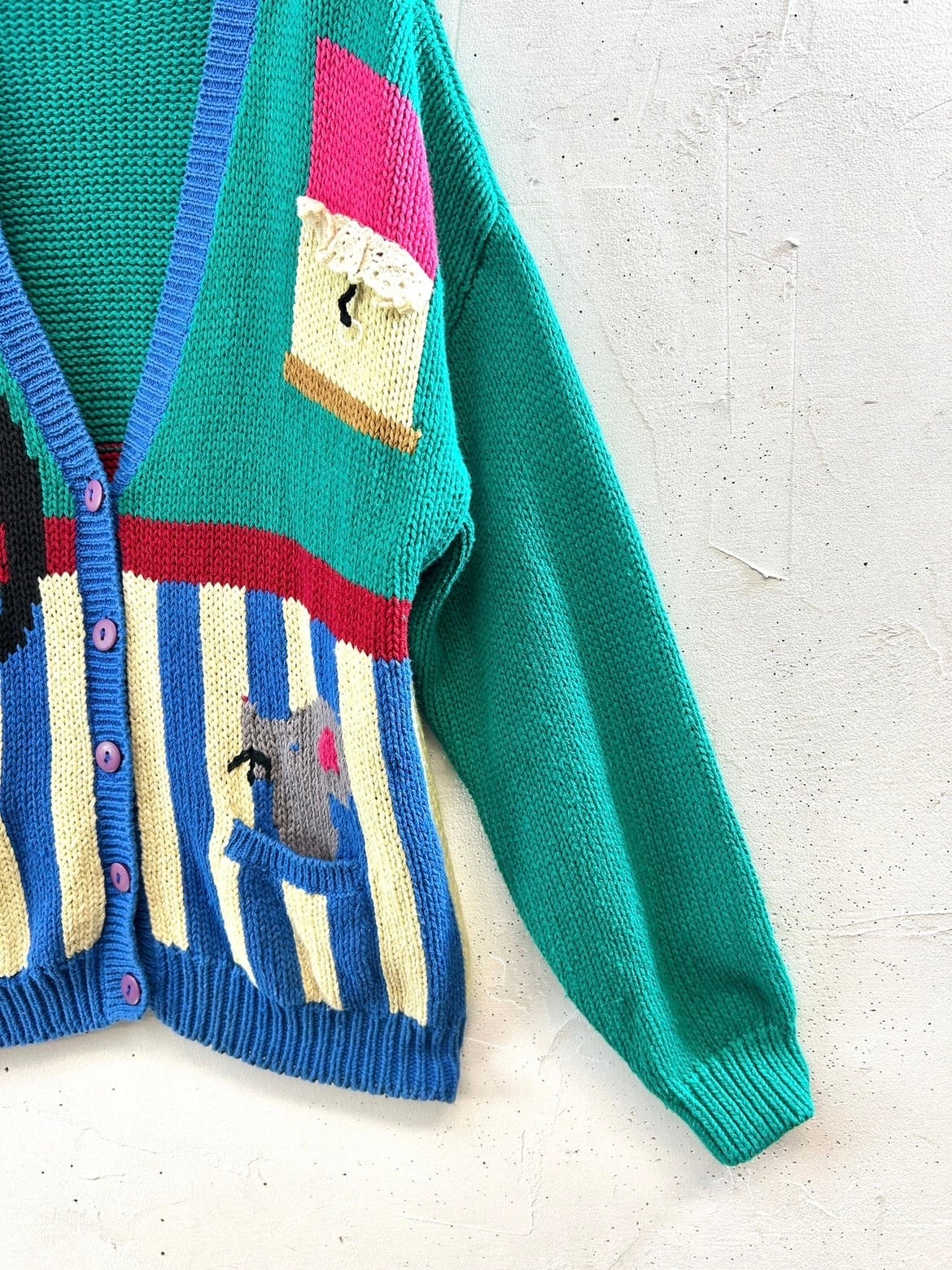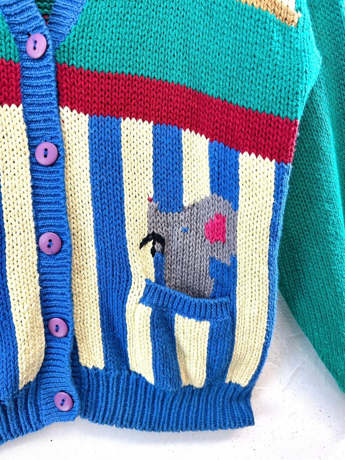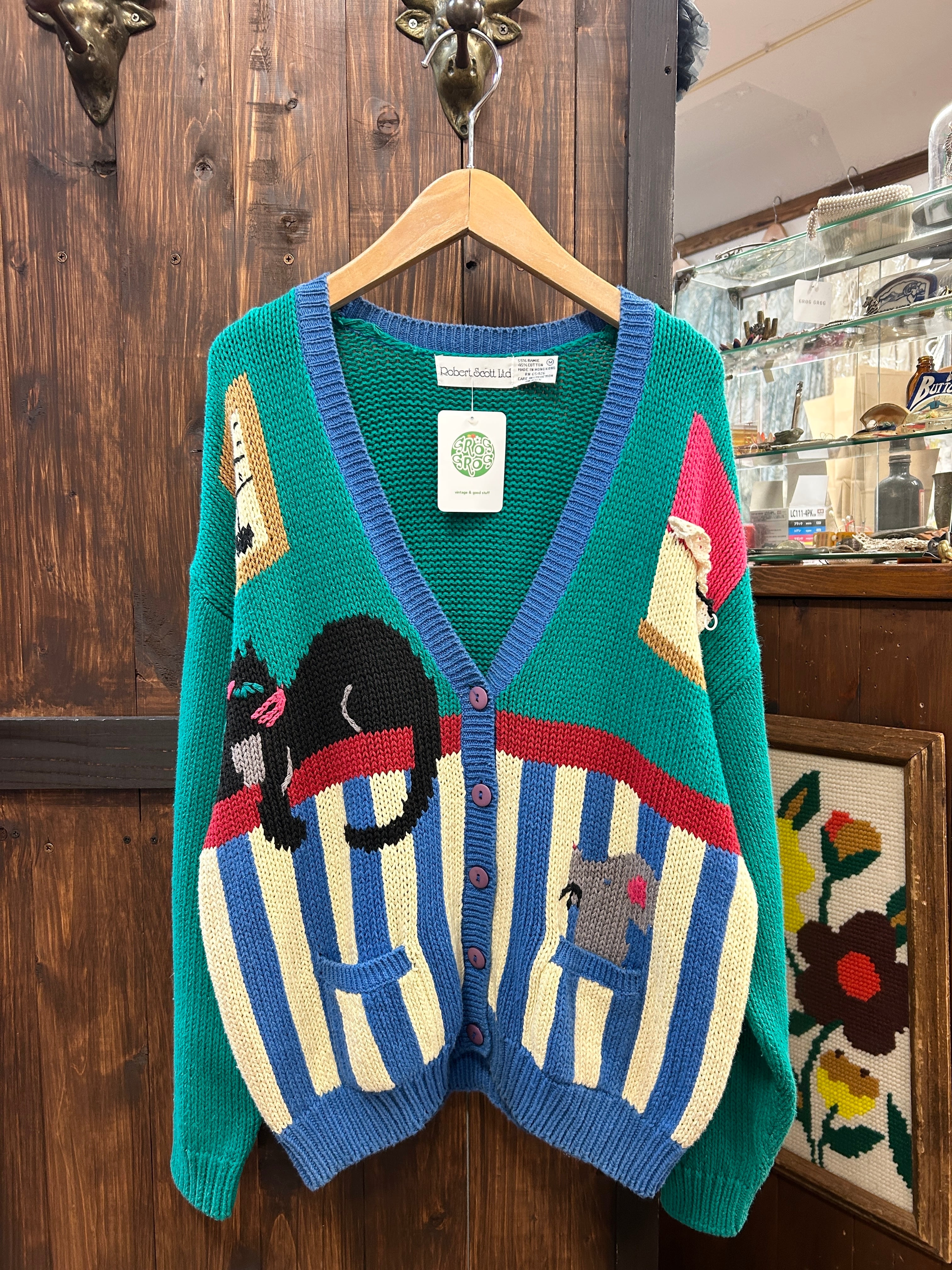 人気のニットカーディガンの中でも特に人気の高い動物柄に、レースなどのデザインもファニーでビンテージらしさのあるアイテムです。