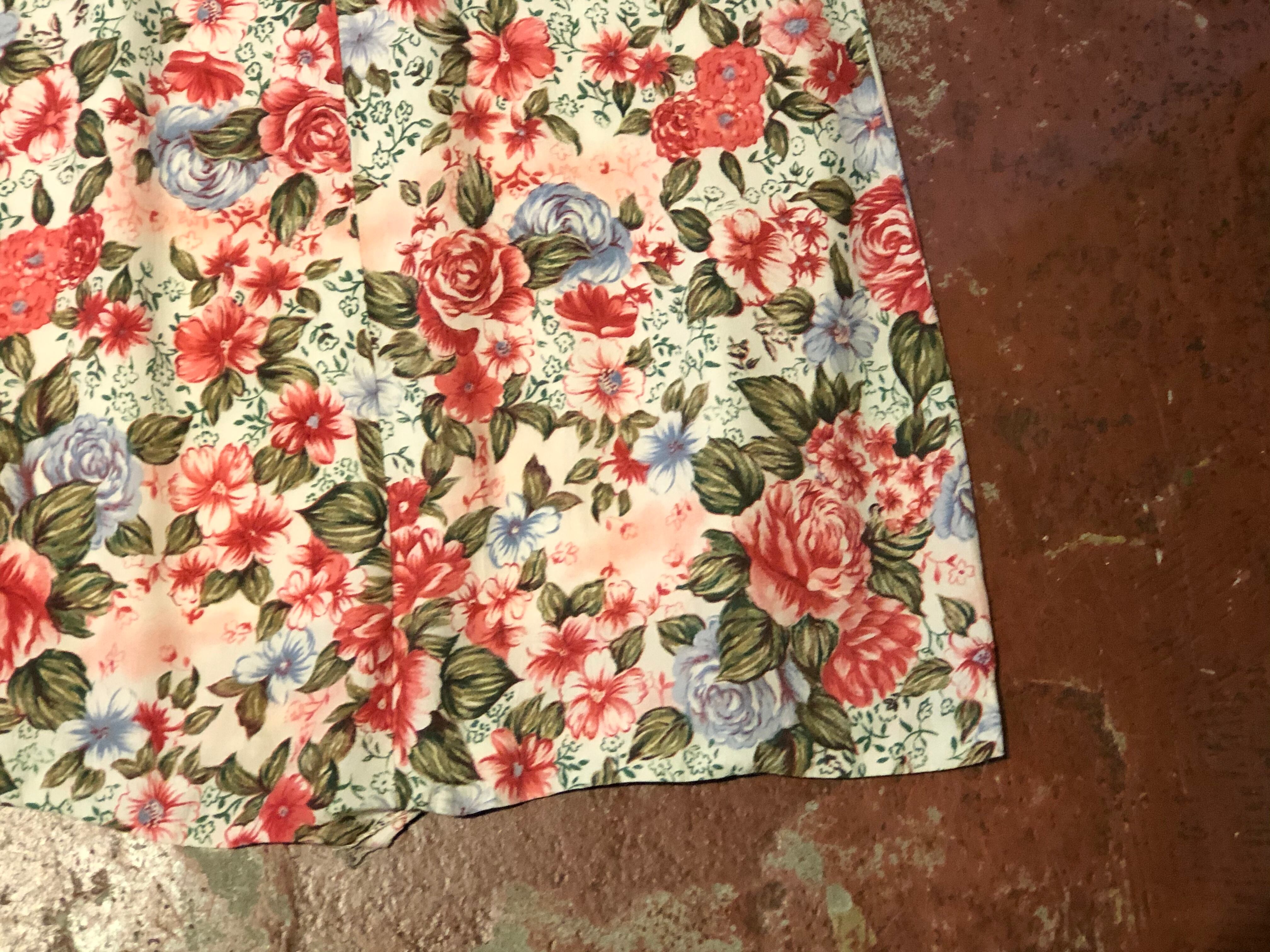 ホワイトボディに華やかなフラワーパターンの可愛い1着。