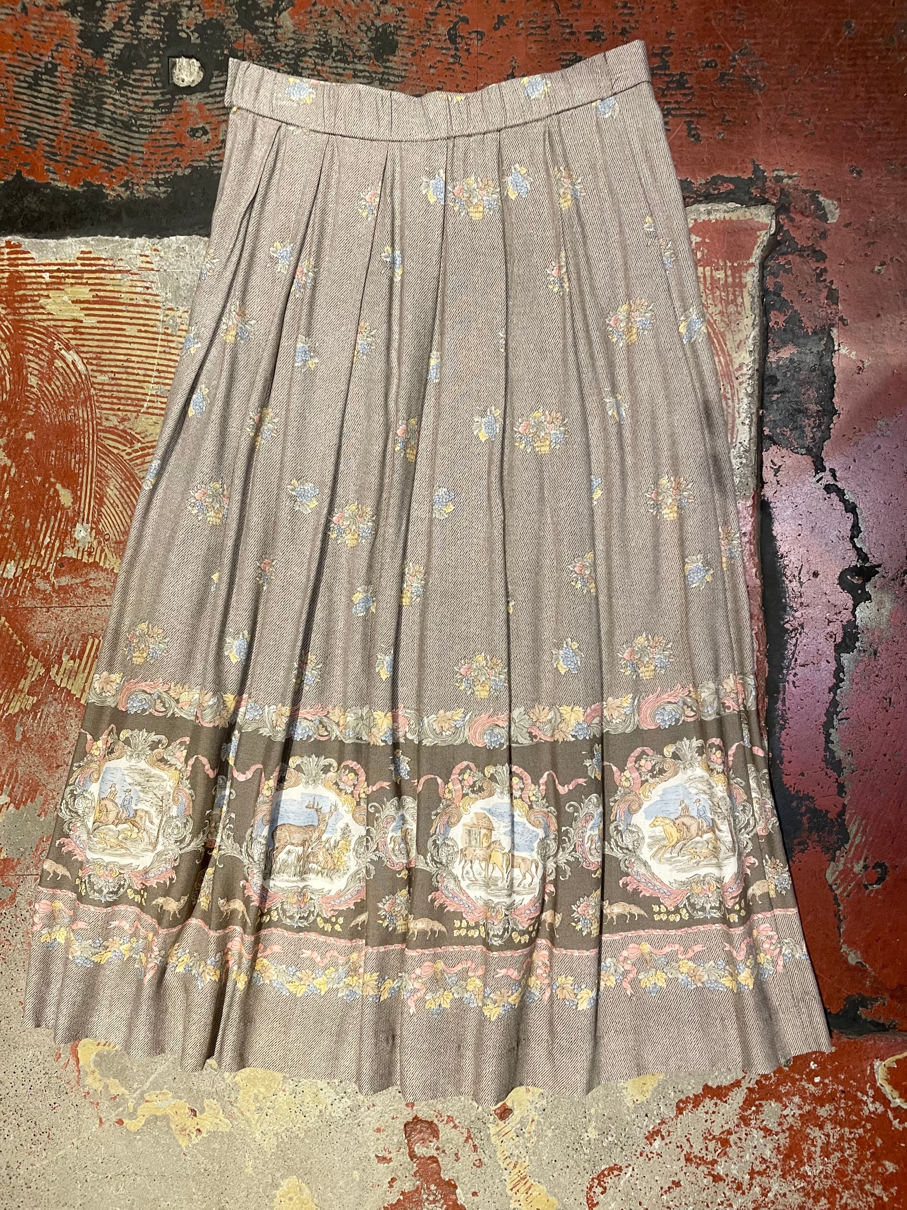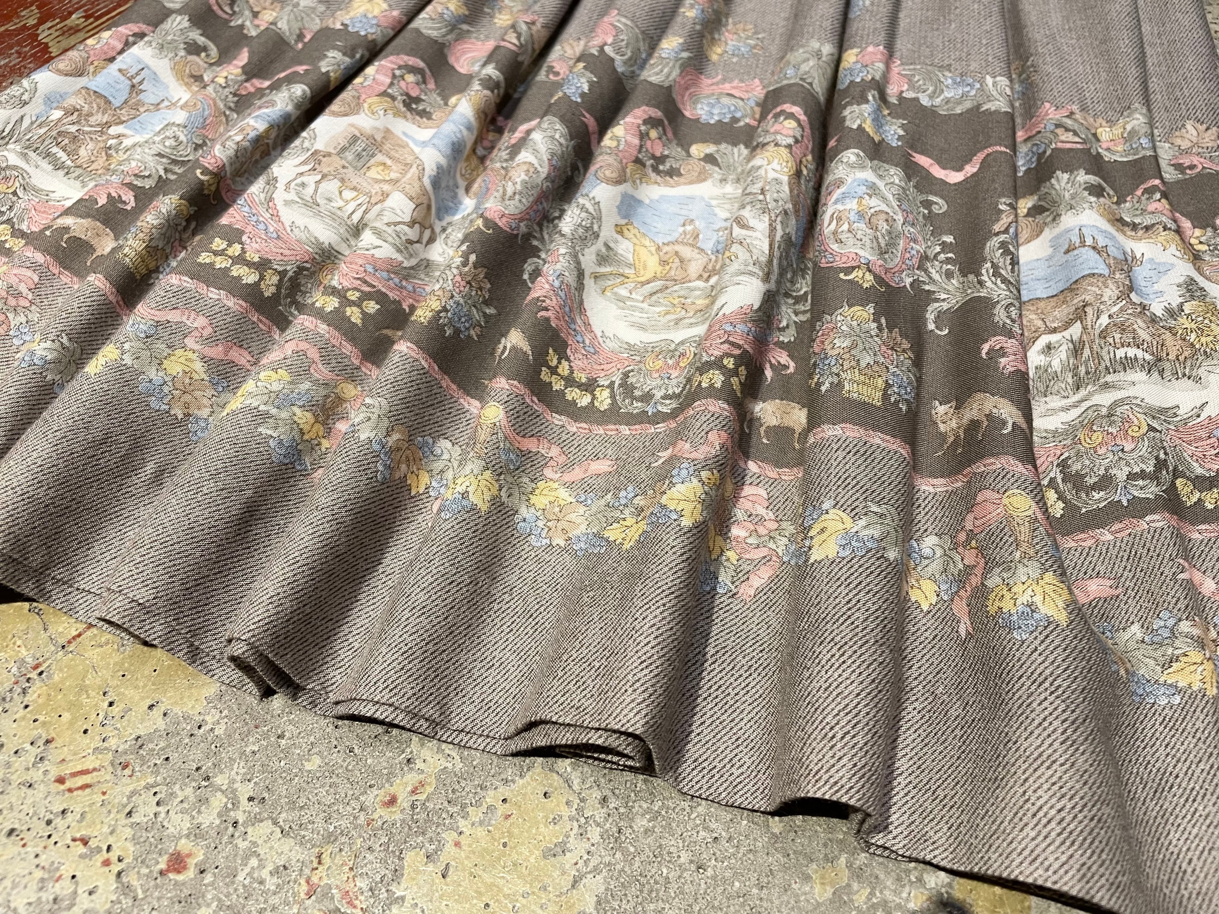 柔らかいベージュボディに、華やかなフラワーパターンと裾にはシカやウマ等が描かれた可愛らしい一着。