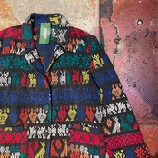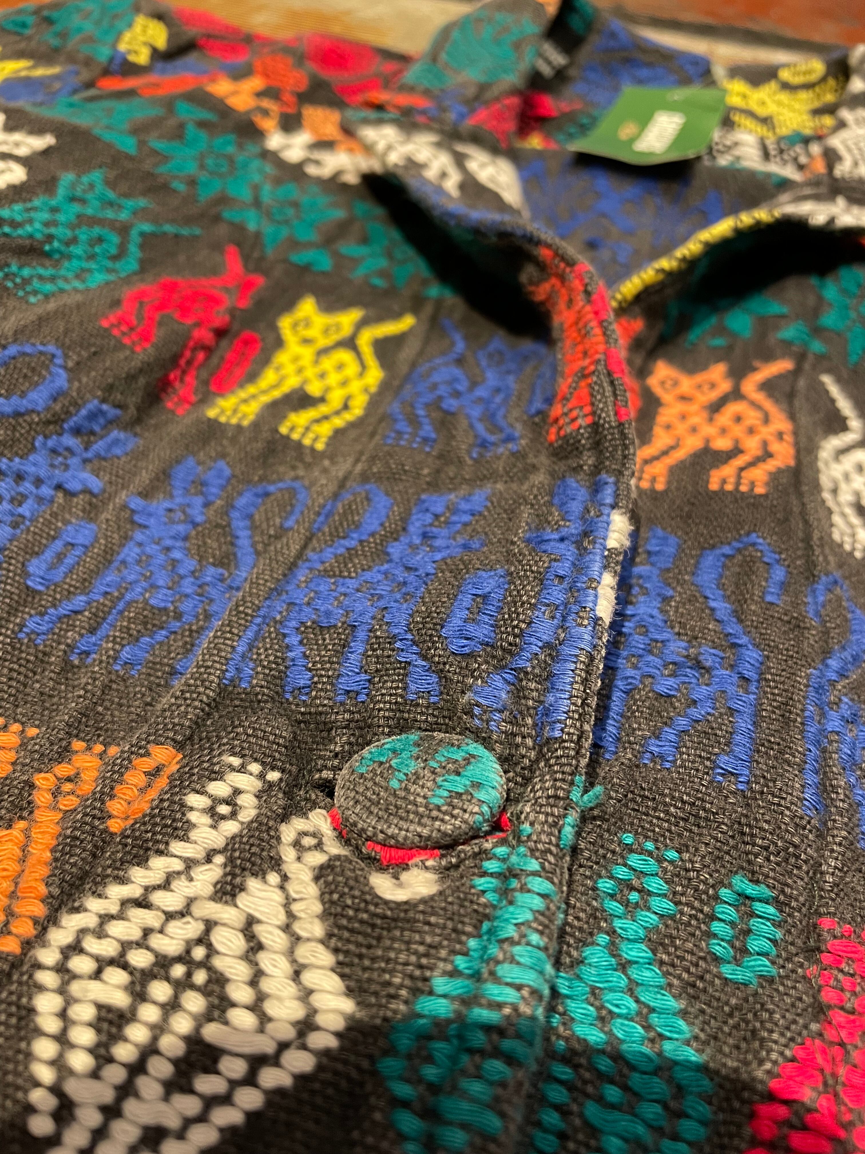 ガテマラらしいしっかりとした生地感に同柄くるみボタンで魅力的なアイテムです。