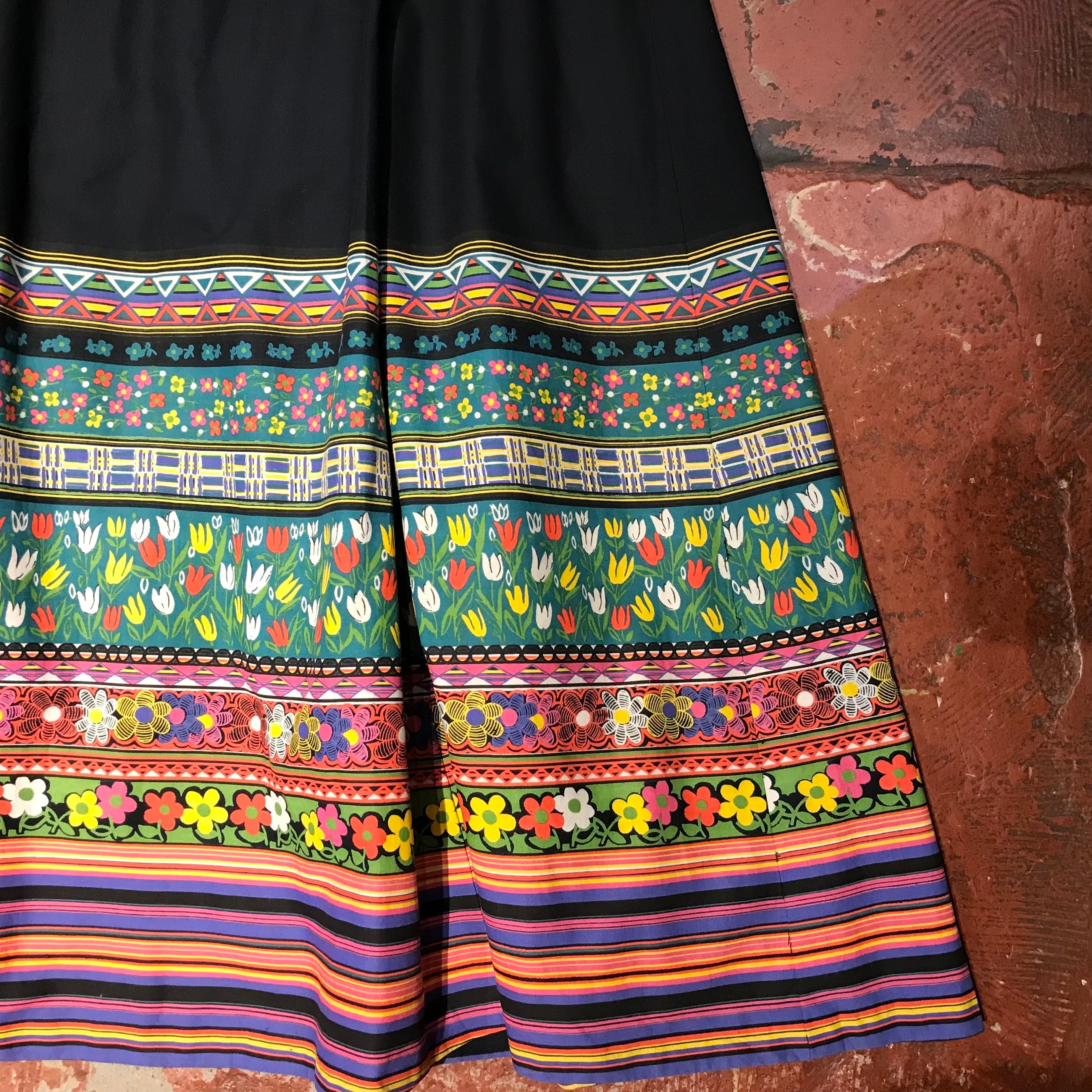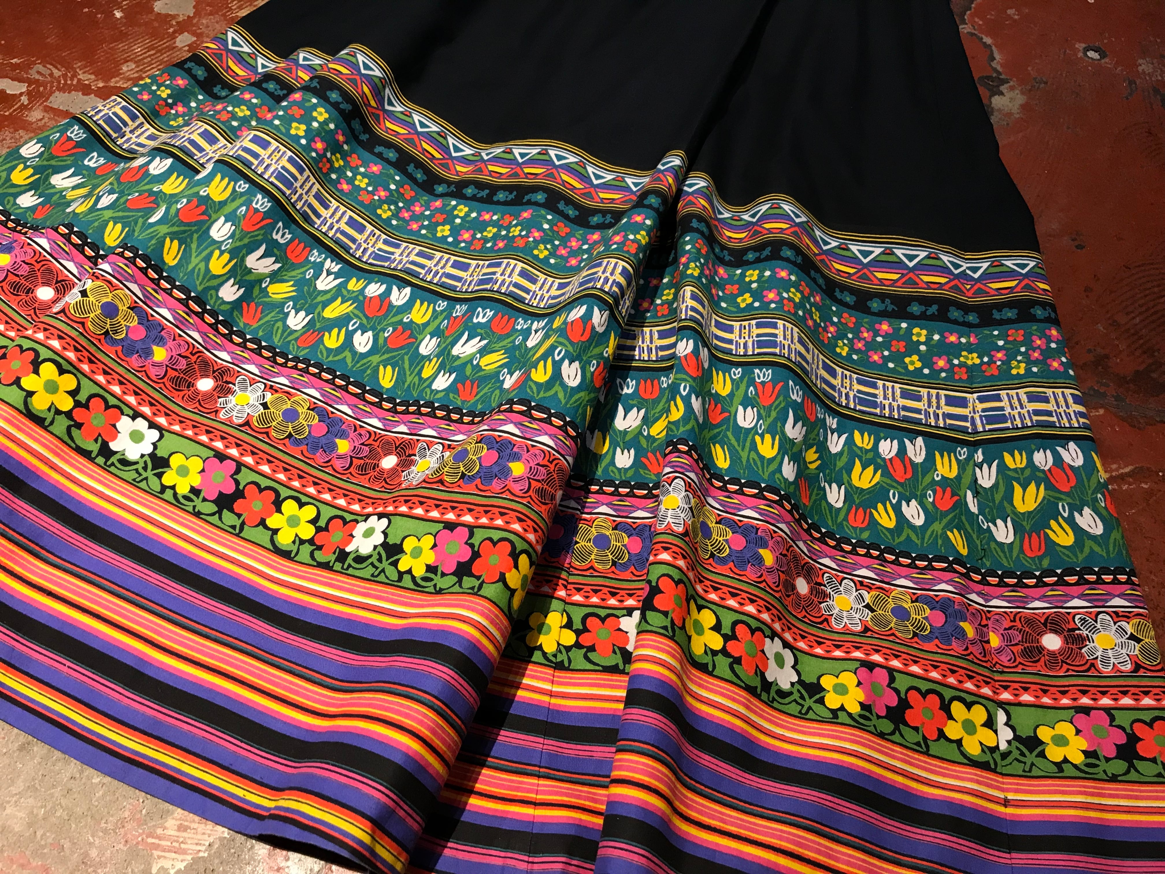 黒ボディ、裾にカラフルに入ったお花プリントが可愛らしくバランスも良いアイテム。