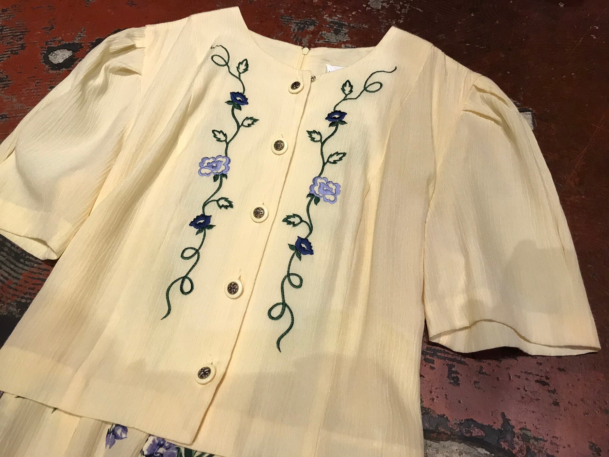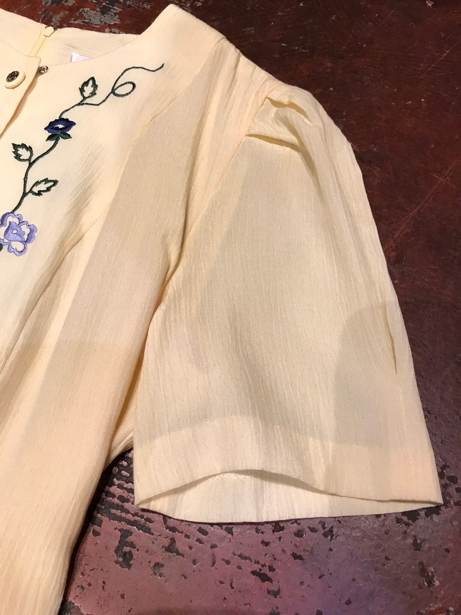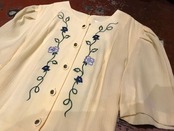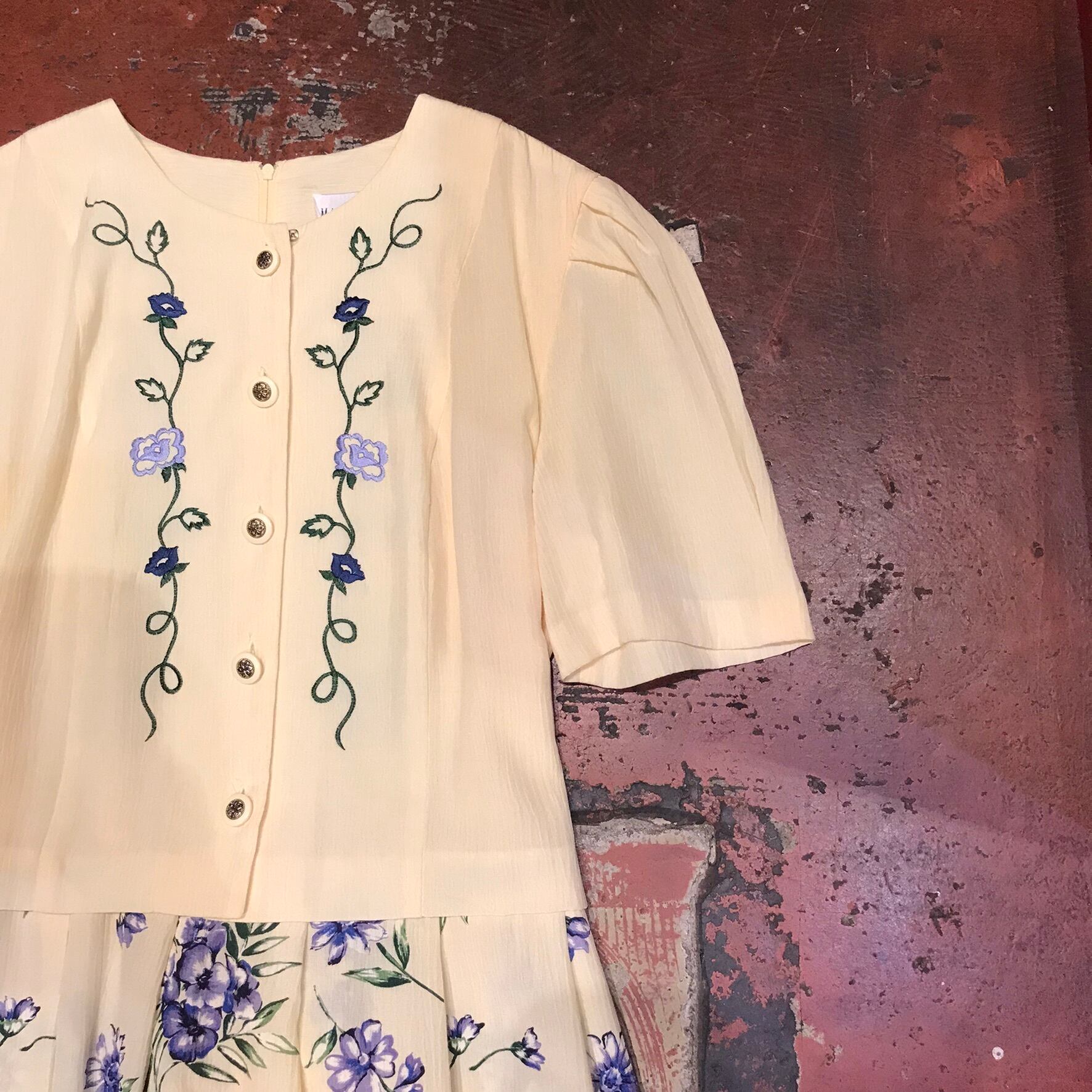 優しいクリームイエローボディに、トップスを着ているようなデザインの重ね着風な1着。