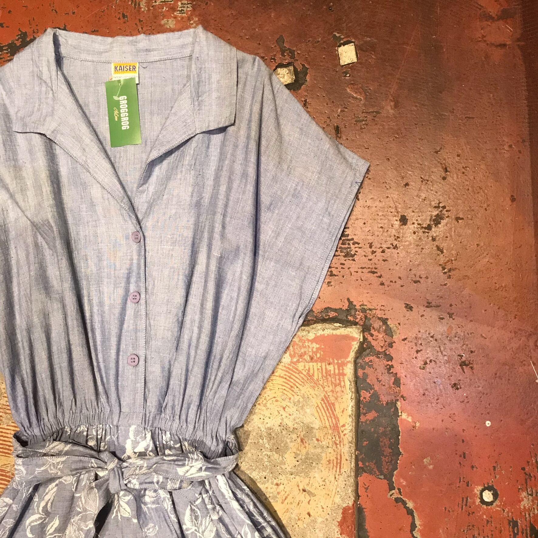 涼しげなシャンブレーボディに、スカート部分にはフラワープリントが施された可愛らしいとても綺麗なアイテム。